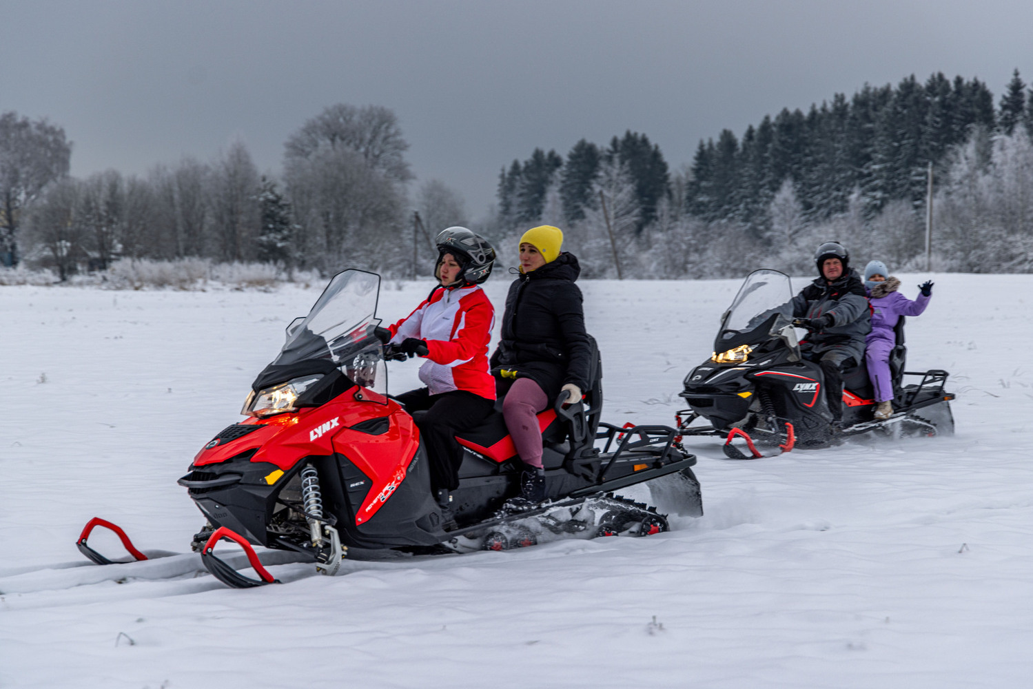 - Катание втроем запрещены - снегоходы двухместные