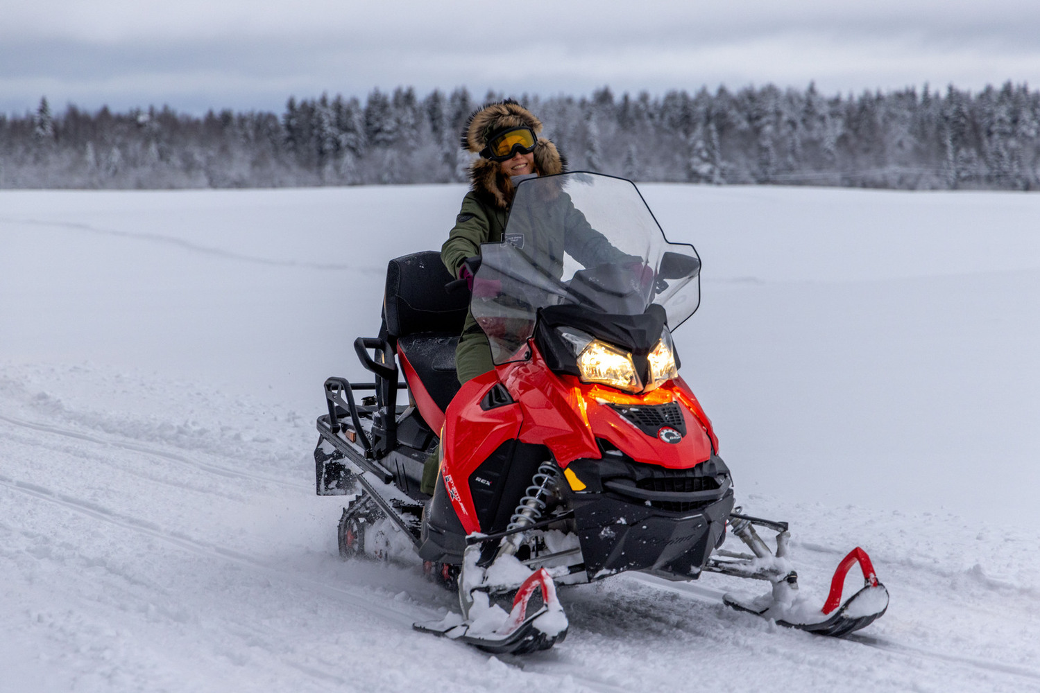 Представьте себе, как Вы на снегоходе пробираетесь по лесным узким дорожкам между деревьями или ускоряясь, прорезаете снежную тишину, оставляя за собой след. Ваши руки крепко держат руль, сердце бьется в ритме дикого приключения, а вокруг – величественные сосны и ели в пушистых шапках. В этом путешествии нет границ – только вы, Lynx и бескрайняя зимняя природа, раскрывающая свои тайны на каждом повороте.