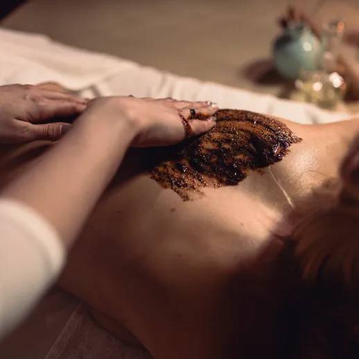 Кофейный сахарный скраб бережно работает с верхними слоями эпидермиса, полностью обновляя и увлажняя его. Кофе обладает моделирующим эффектом – благодаря высокому содержанию кофеина улучшается кровоток, выводятся шлаки, и достигается эффект лифтинга. После скраба наносится кремовое обертывание. Ваша кожа обретет гладкость и упругость, контур тела подтянется и произойдет укрепление тканей.