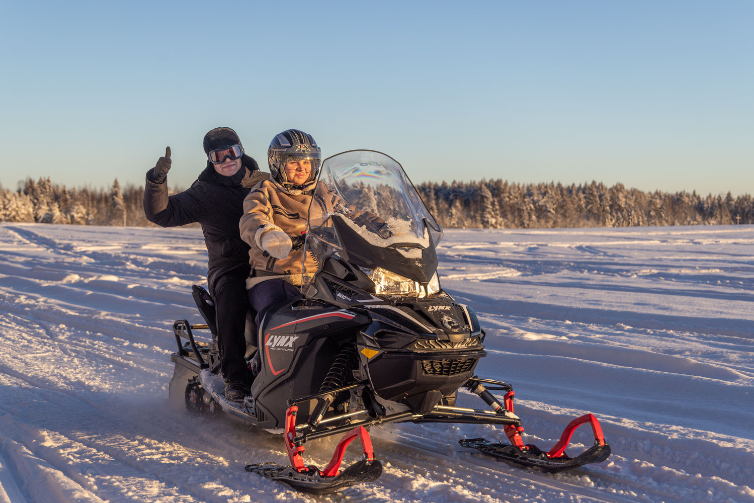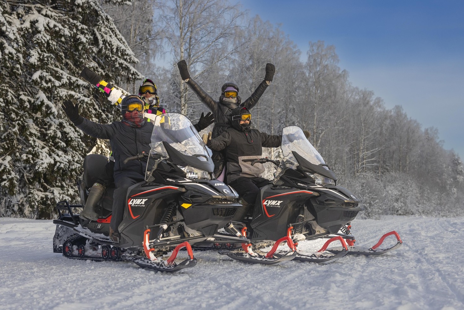 - Катание втроем запрещены - снегоходы двухместные