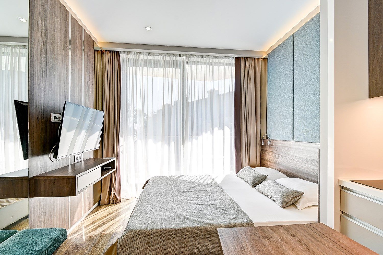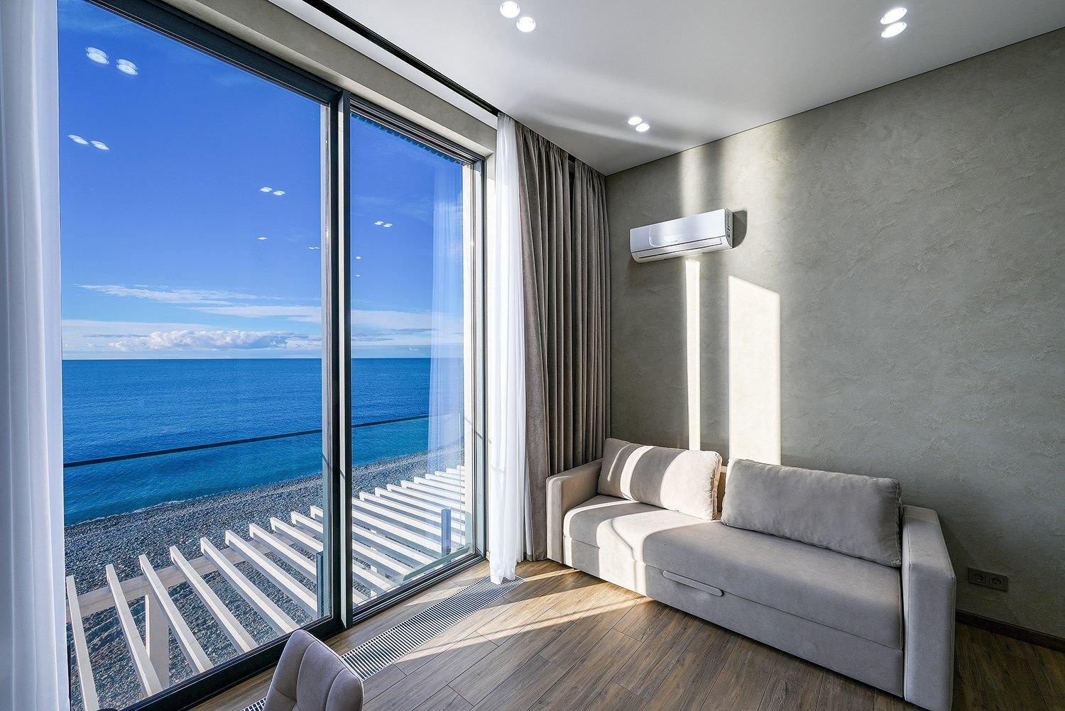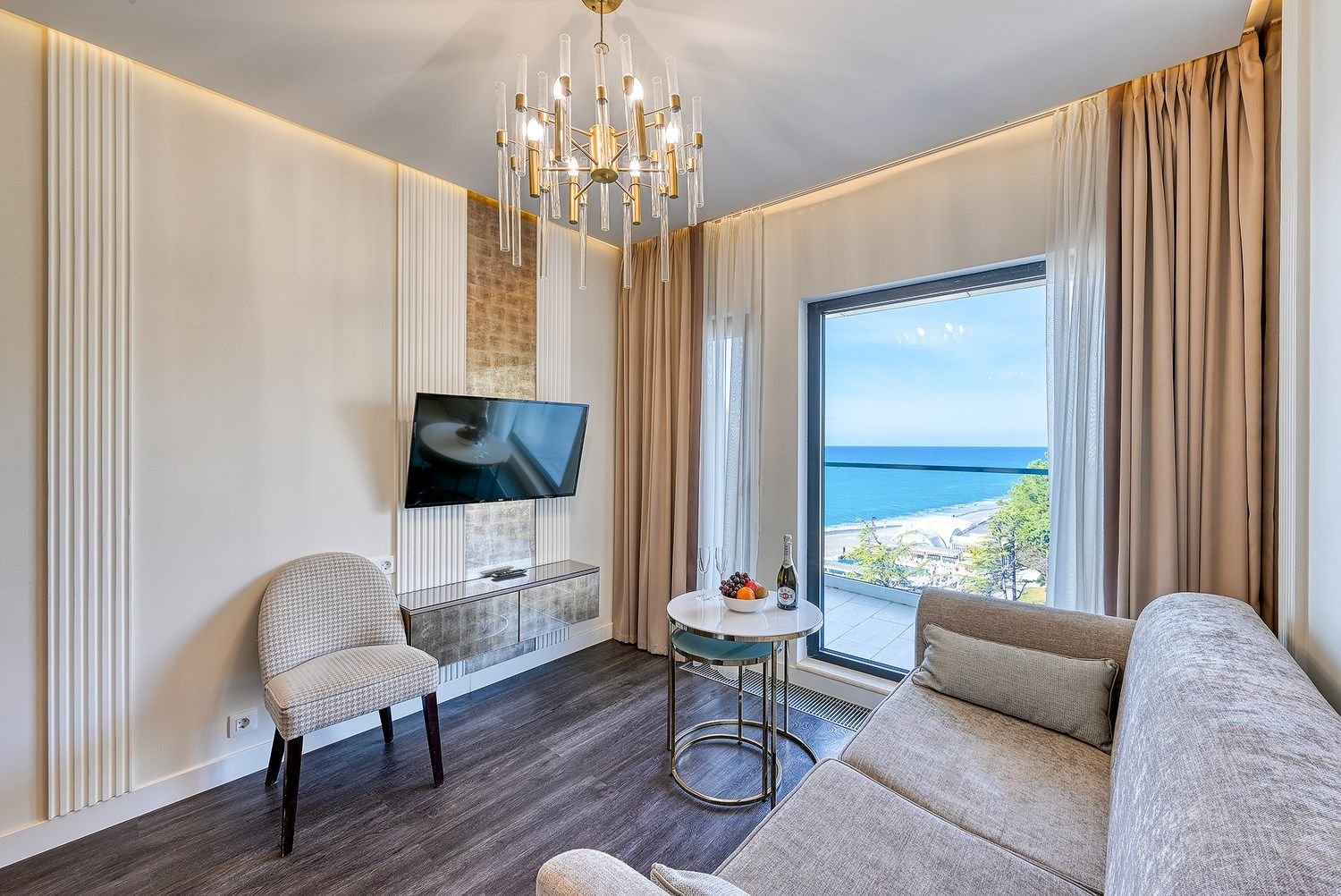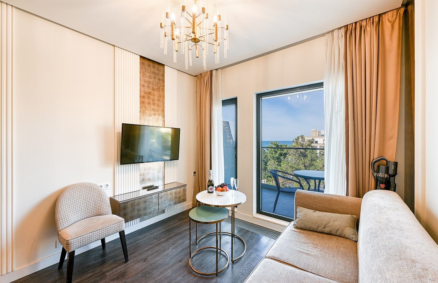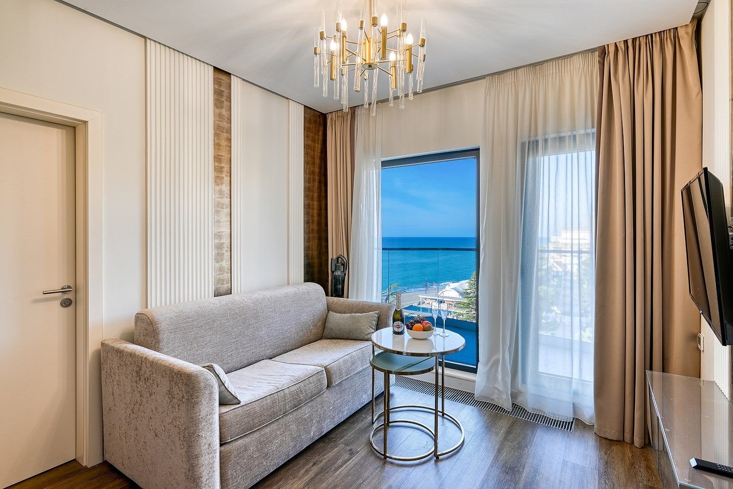 Deluxe с видом на море – это идеальный выбор для тех, кто ценит уют и комфорт. Этот двухкомнатный номер предлагает идеальное сочетание пространства и функциональности. В вашем распоряжении будет гостиная комната с раскладным диваном и уютная спальня.