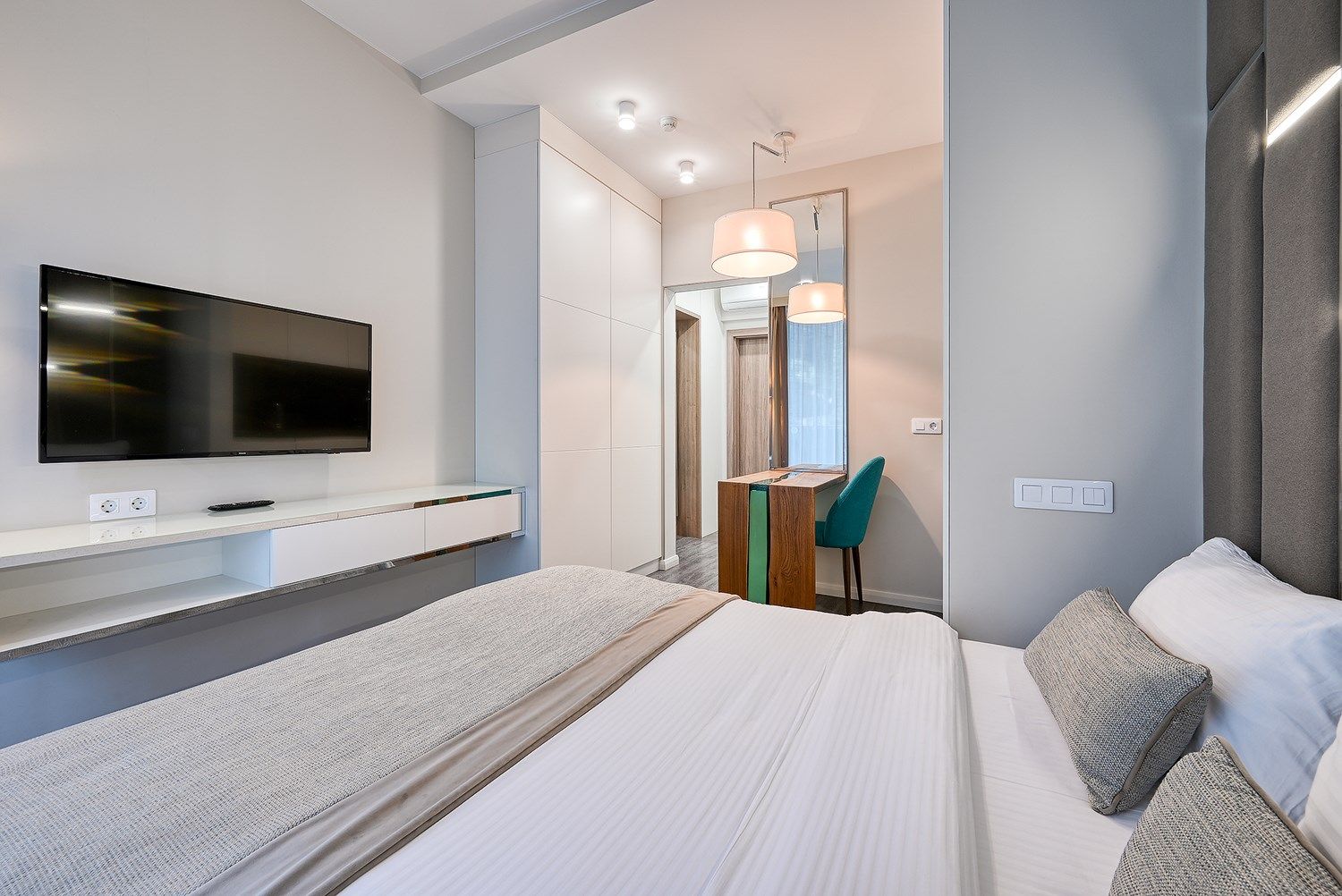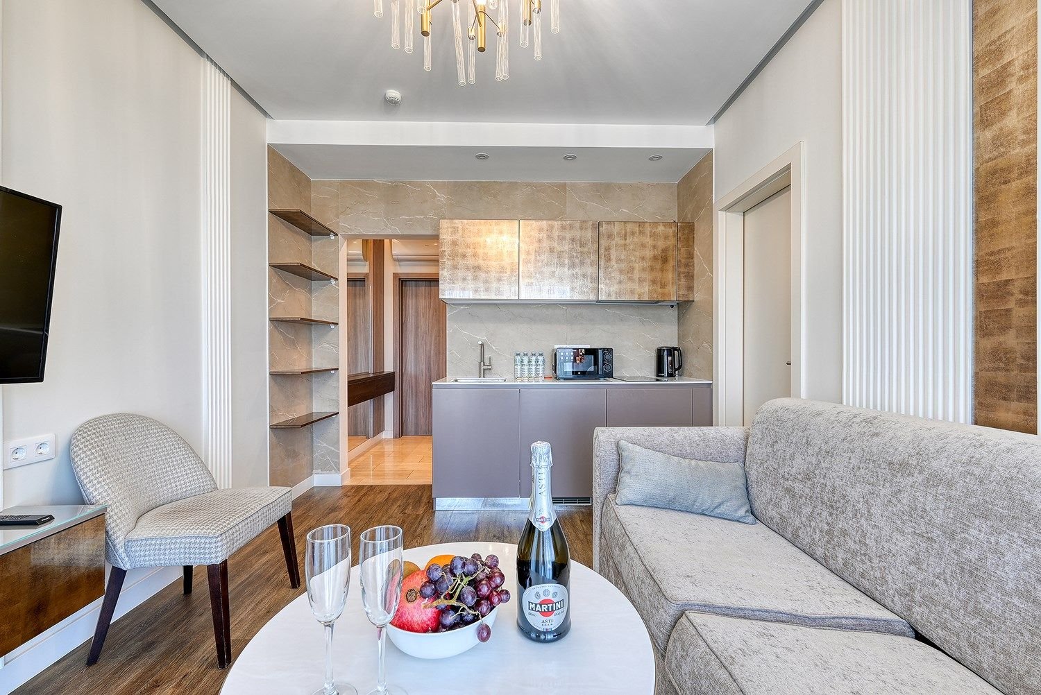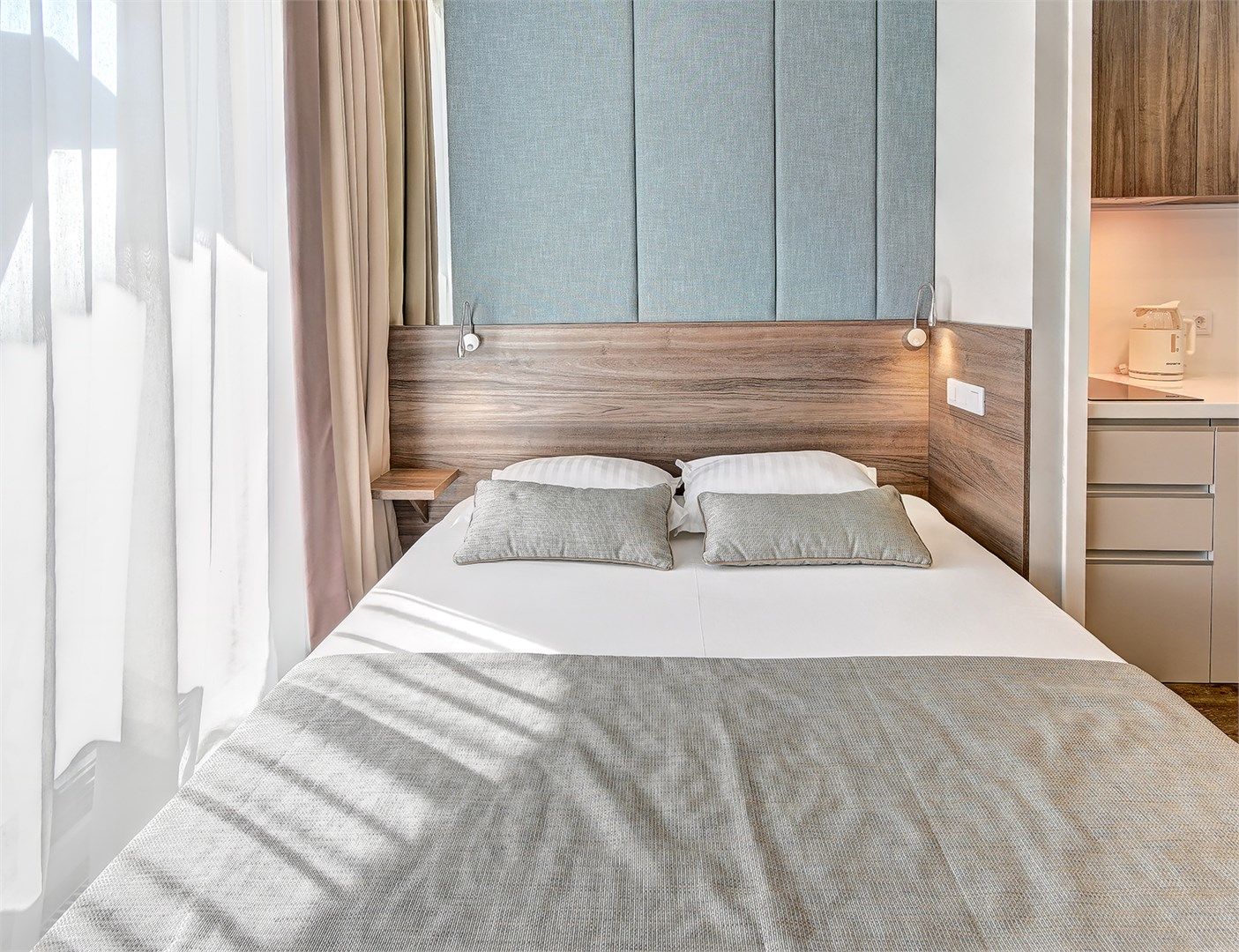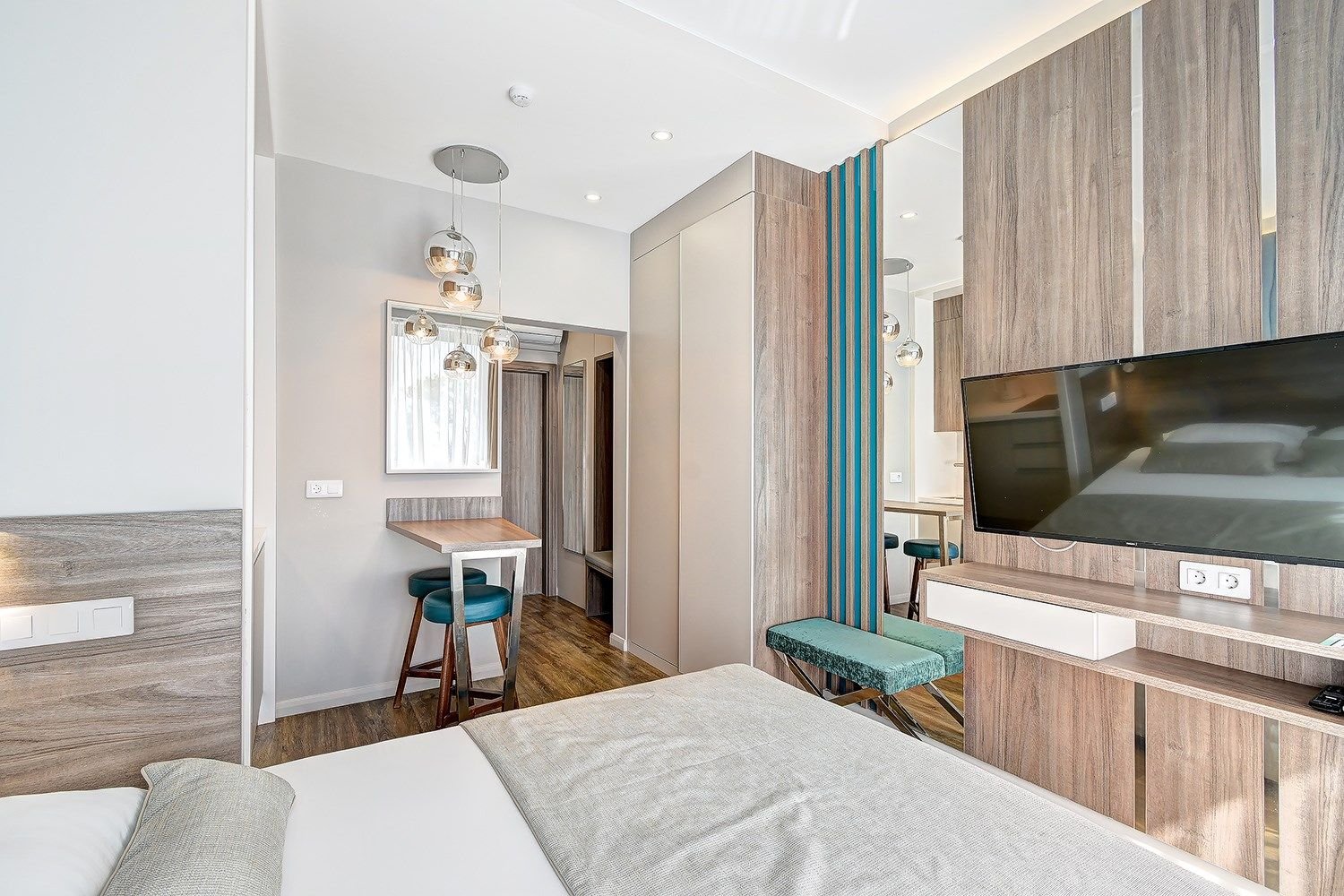 Стильные апартаменты в апарт - отеле, площадью 27 м2, с современным и эргономичным дизайном, прямым видом на море и бассейн.