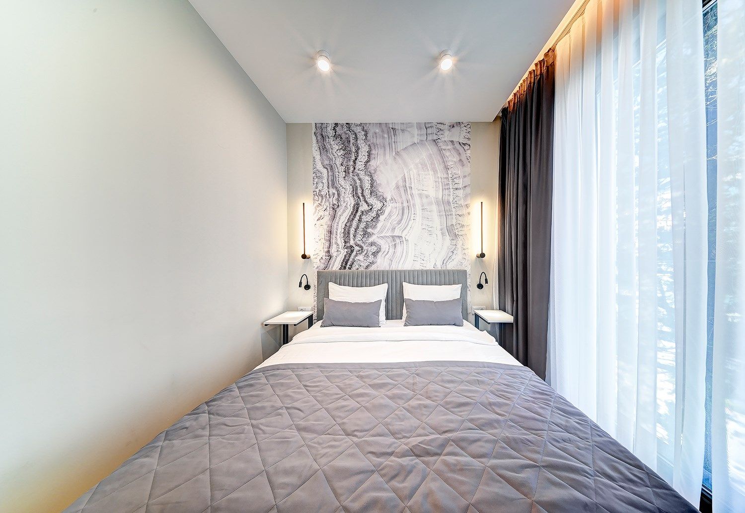 Стильные апартаменты в апарт - отеле, площадью 21.5 м2, с террасой 15 м2, и современным и эргономичным дизайном.