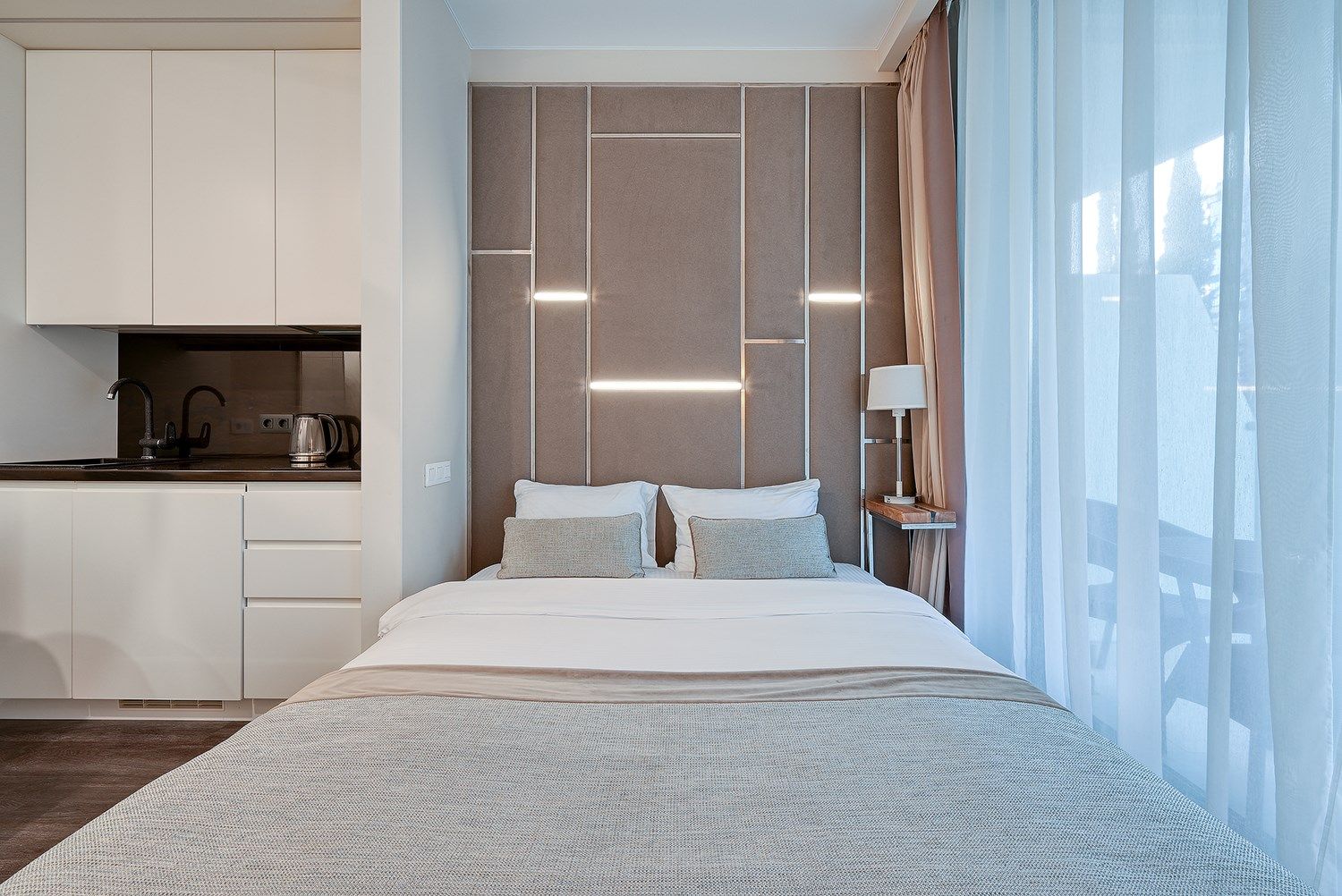 Стильные апартаменты в апарт - отеле, площадью 27 м2, с современным и эргономичным дизайном, с панорамным видом на море.