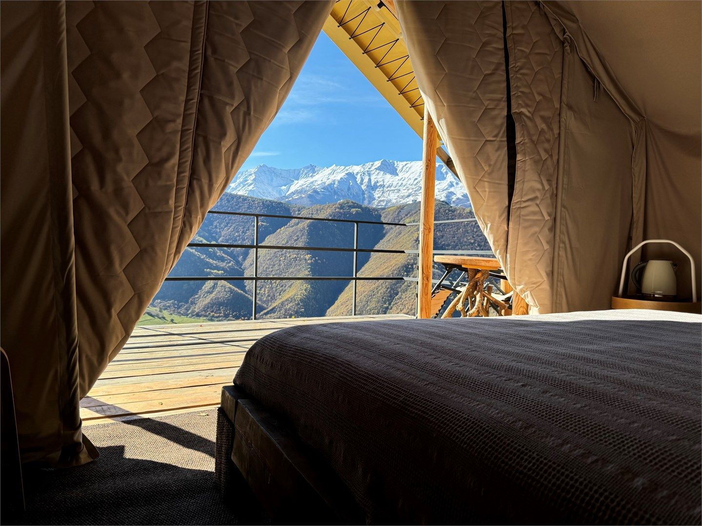 Если шатры «Берега неба» — это отдых ближе к природе, то «Тазбичи» — это тёплый горный мини-дом, где привычные удобства находятся внутри номера.