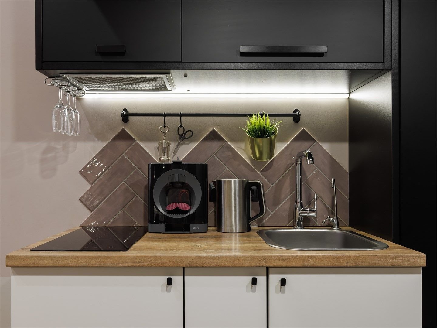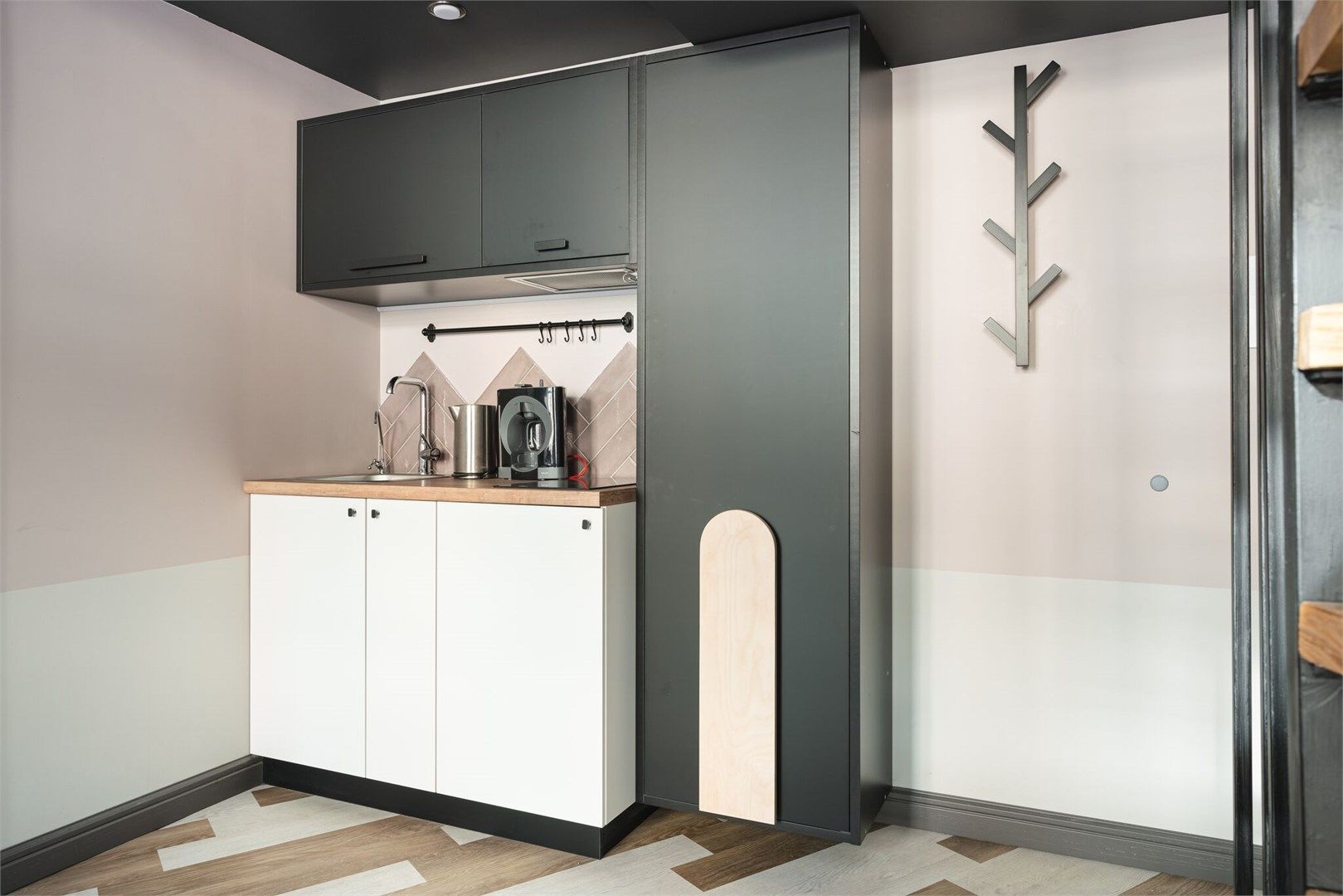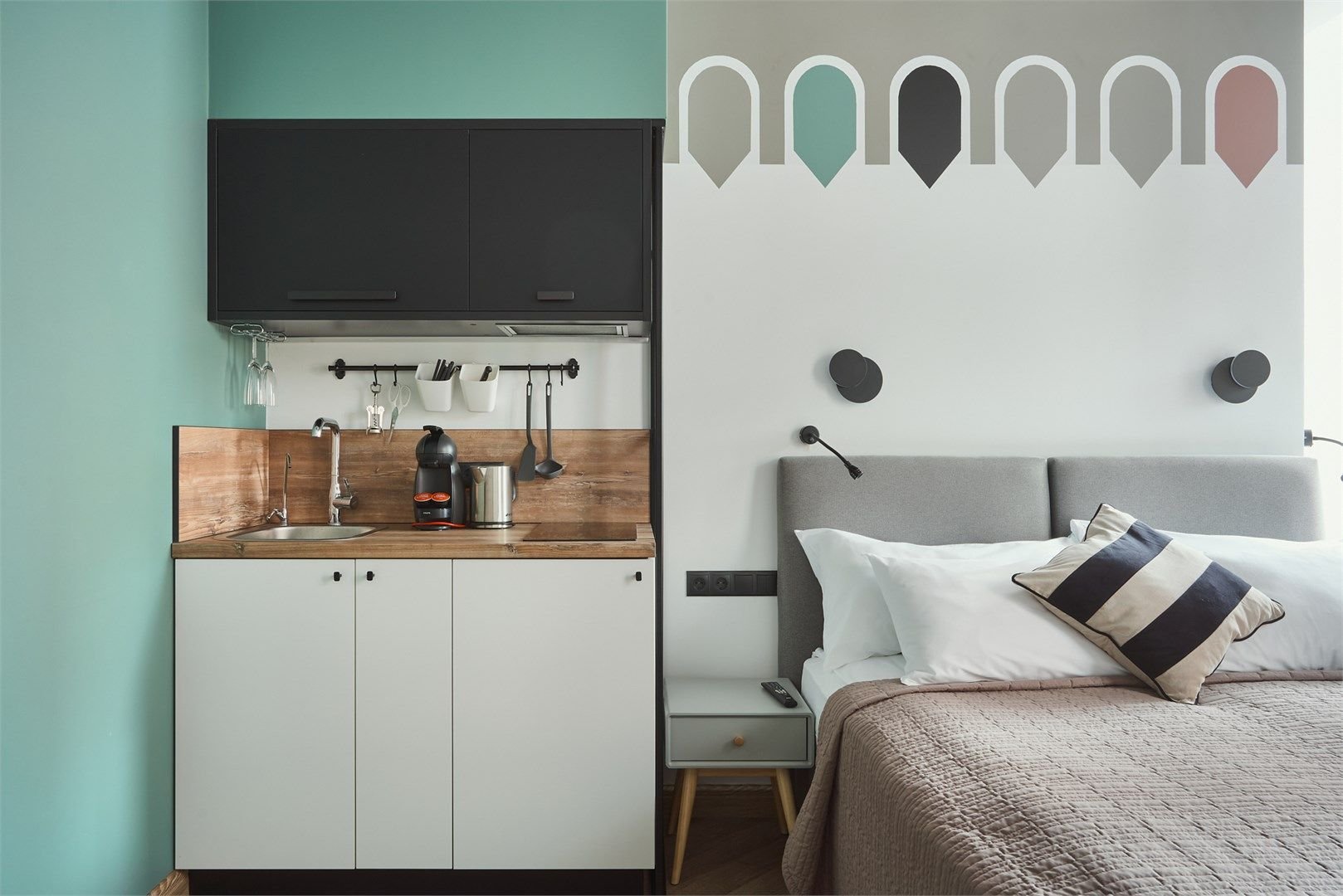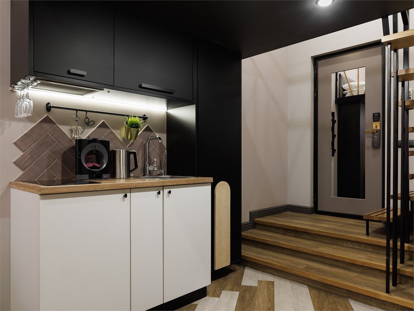 В номере: ✔ Двуспальная кровать ✔ Полностью оборудованная техникой и посудой мини-кухня ✔ Просторная ванная комната оснащена всем необходимым и даже больше!