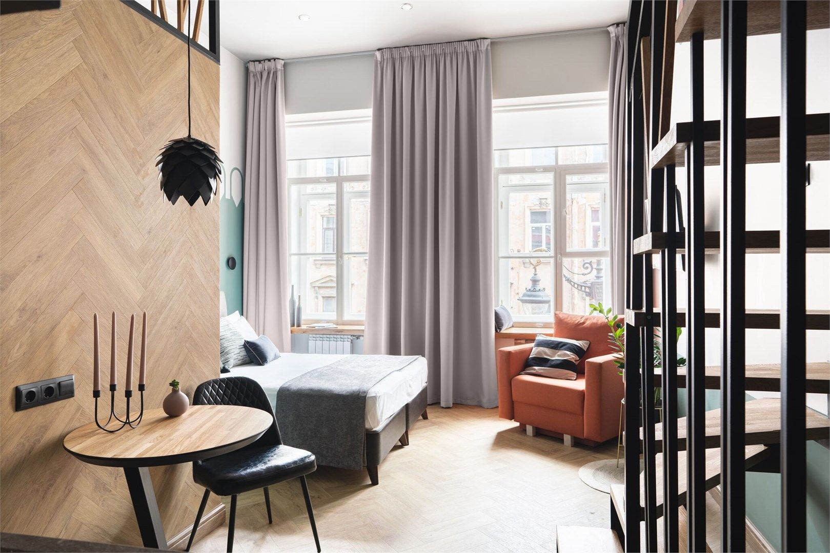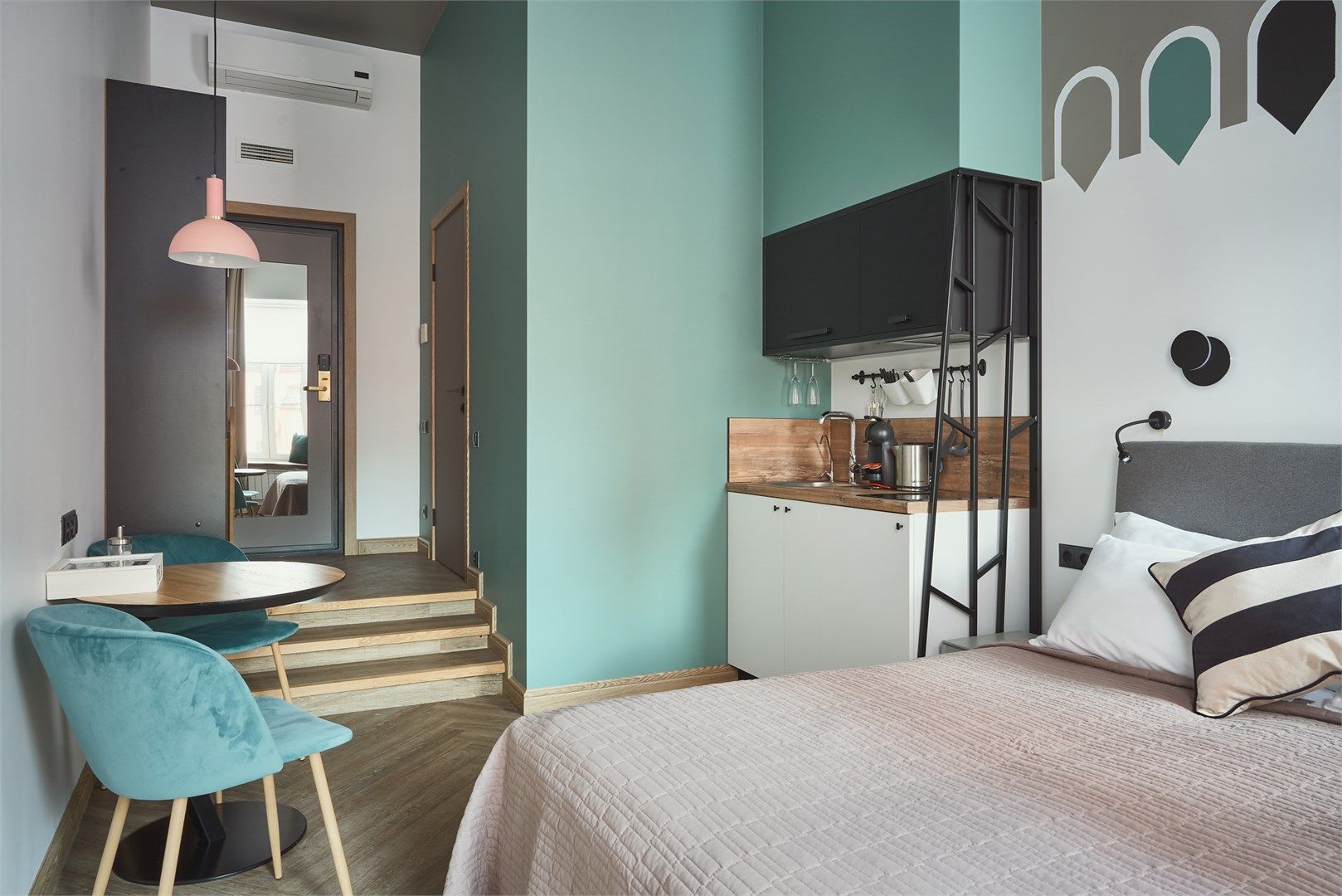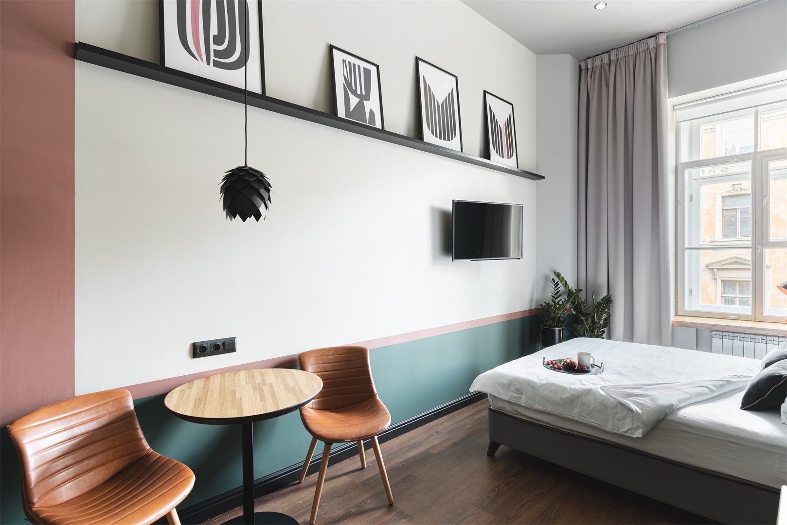 Стильный и уютный номер с видом на улицу Рубинштейна. В номере: ✔ Двуспальная кровать ✔ Односпальная кровать на втором уровне ✔ Полностью оборудованная техникой и посудой мини-кухня ✔ Просторная ванная комната оснащена всем необходимым и даже больше!...