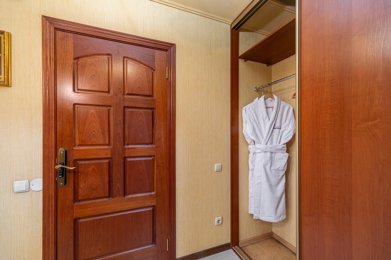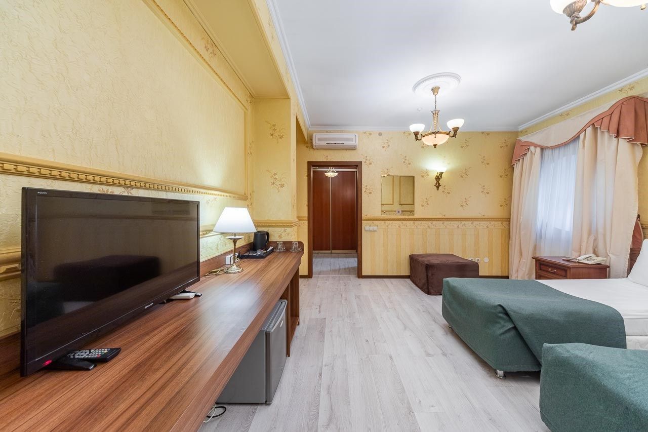 Полулюкс - это номер общей площадью до 35 кв.м. Внутреннее пространство номера разделено на зону гостинной и отдыха с двуспальной кроватью. Каждый номер оформлен в классическом стиле и оснащен всем необходимым для комфортного проживания: косметическими принадлежностями (шампунь, гель для душа, зубной набор) тапочками, халатами для гостей. Каждый номер оборудован холодильниками, фенами и систе...