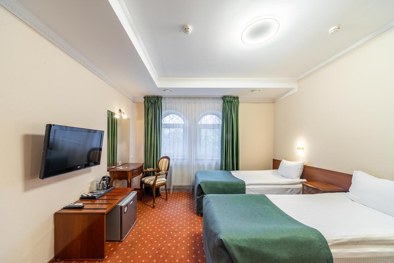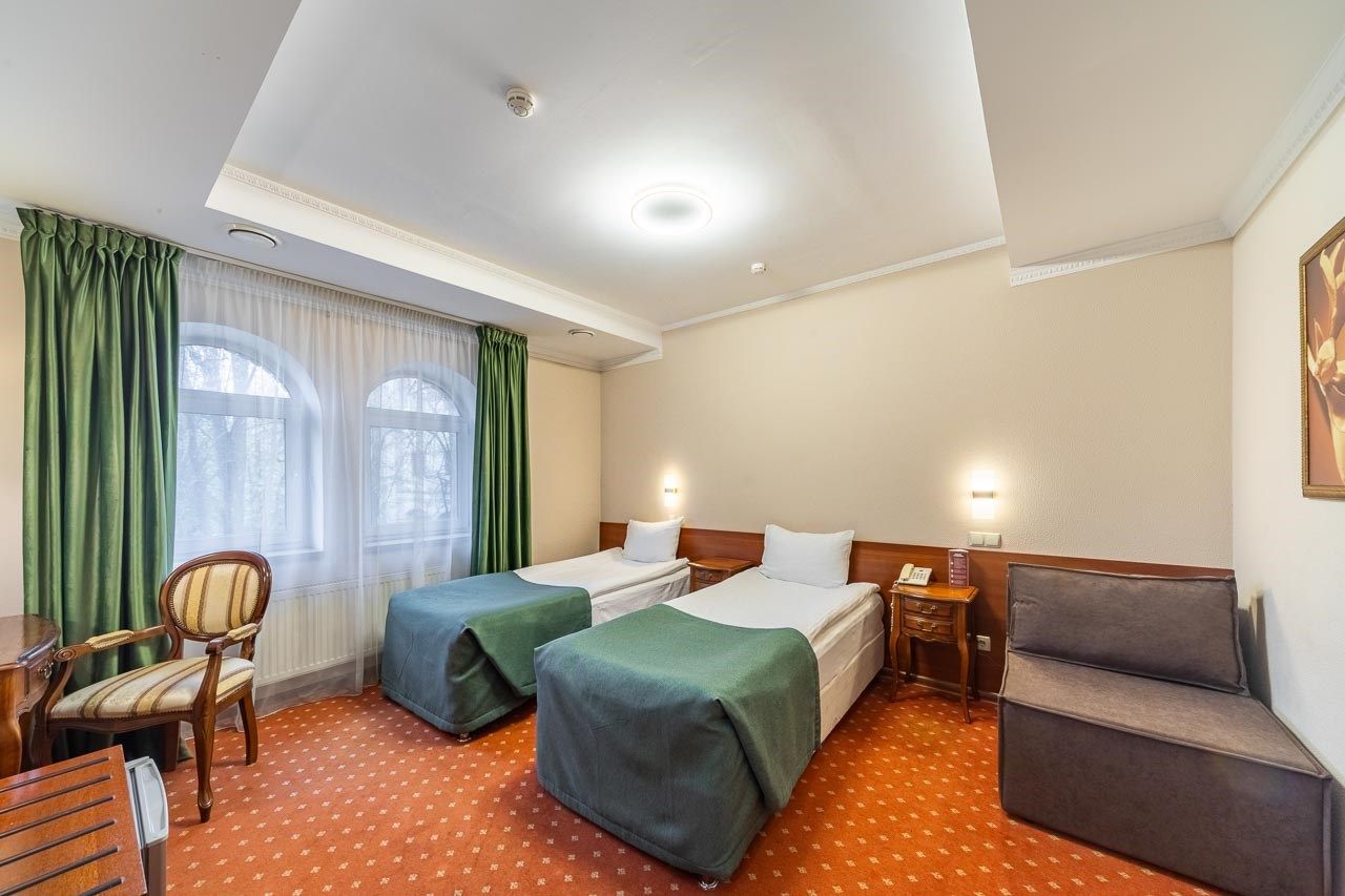 Улучшенный стандартный номер, вид из которого открывается на внутренний двор с садом или на тихую улицу. Для Вас: Wi-fi, система кондиционирования, ТВ, фен, мини-холодильник. Для комфортного отдыха номер оснащен двумя раздельными кроватями, с возможностью соединения в двухспальную кровать трансформер, с ортопедическим матрасом и гипоаллергенным бельем, просторной рабочей зоной с чайной станцие...