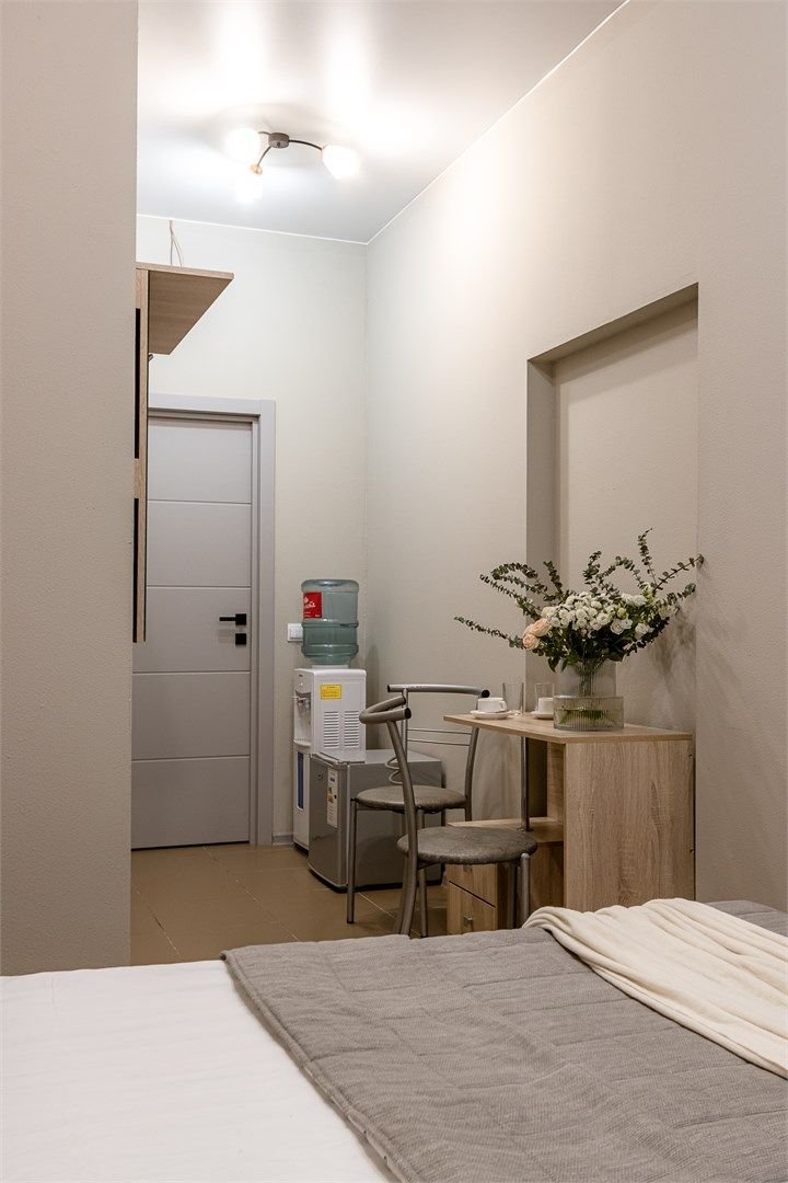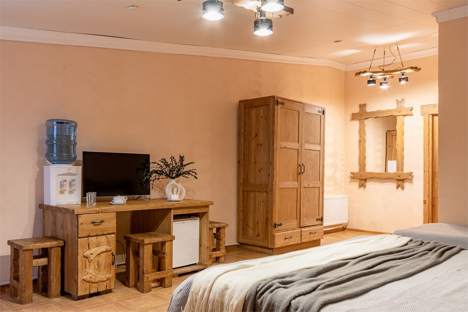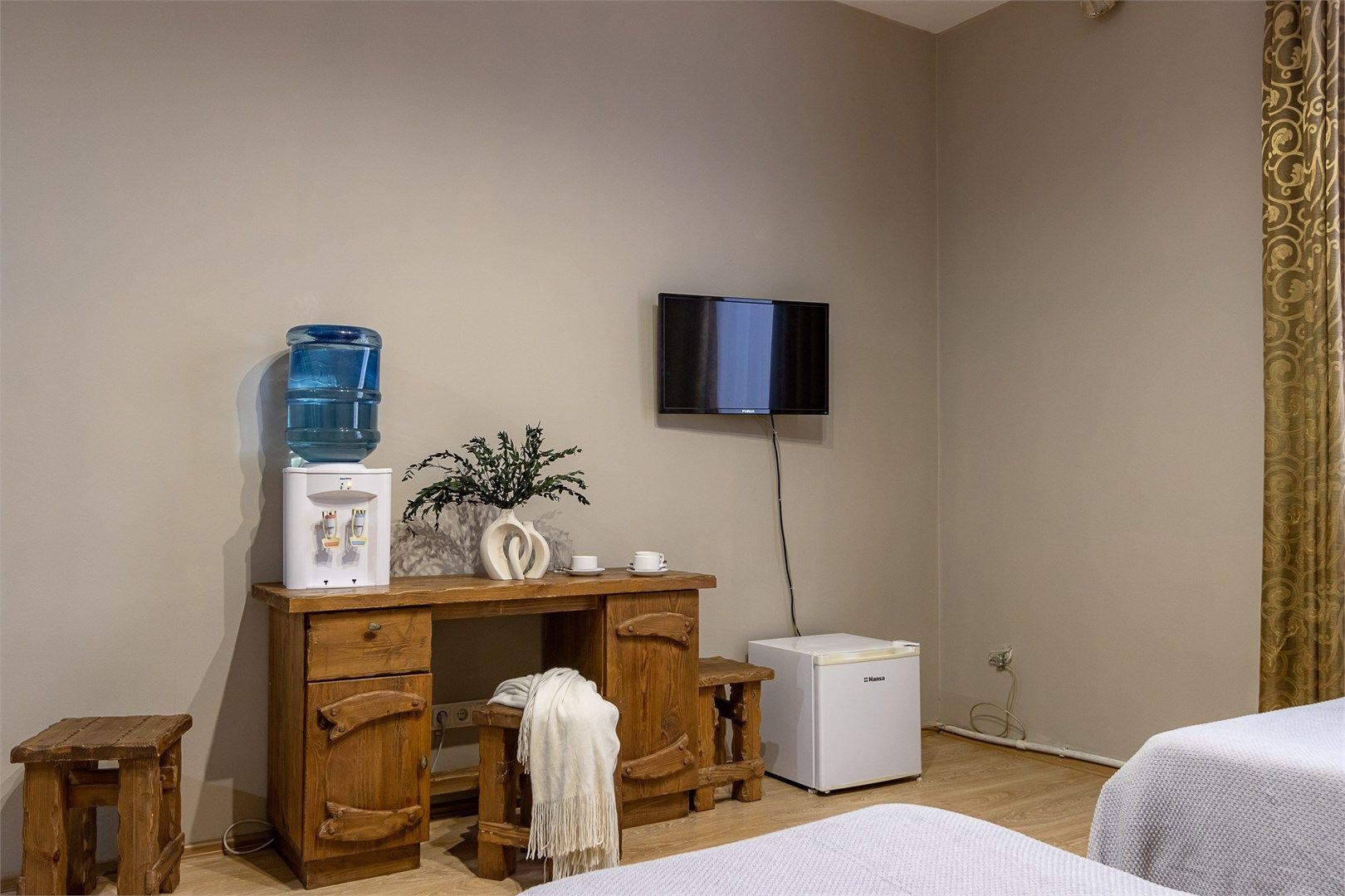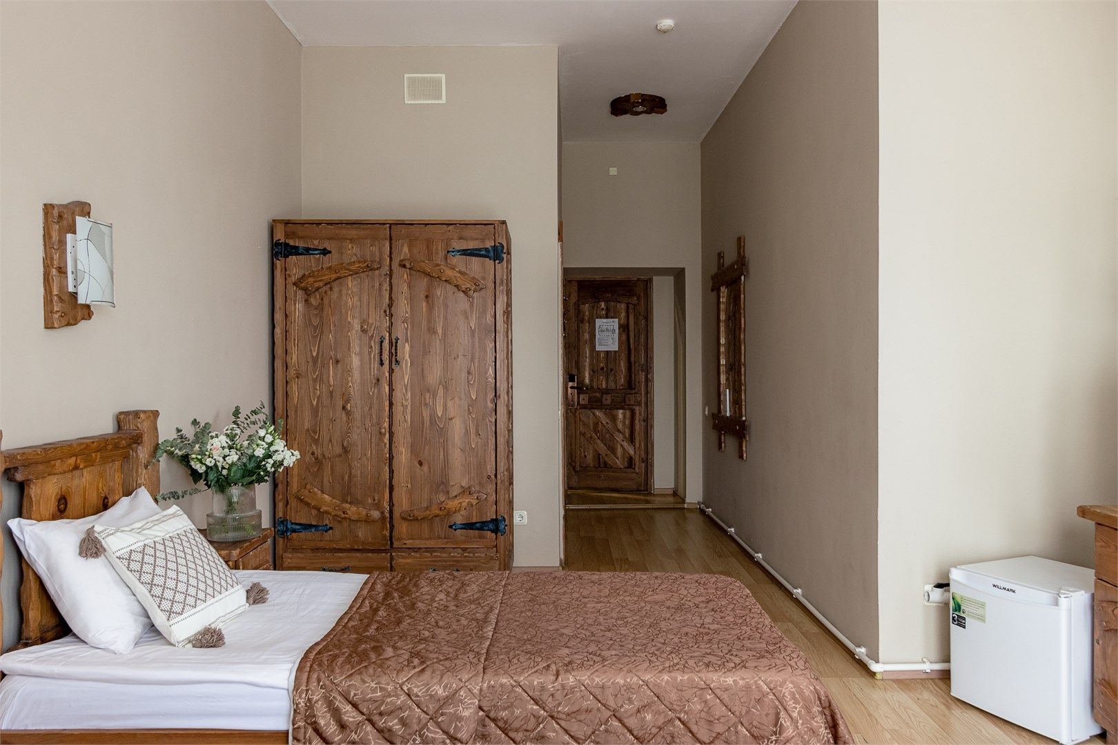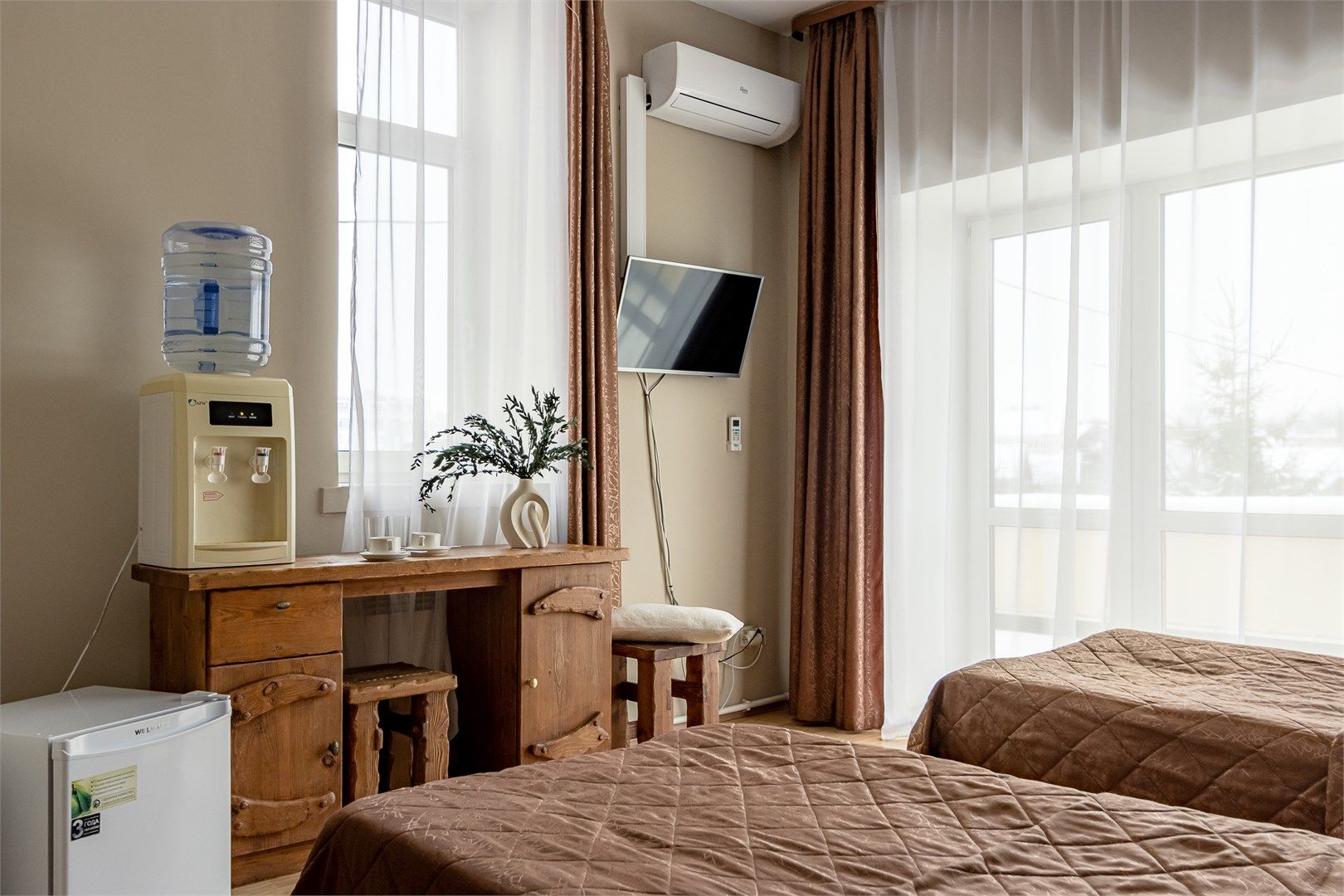Уютный однокомнатный номер располагает всем необходимым для комфортного отдыха. В номере установлены шкаф для одежды, сейф, телевизор, холодильник, кулер с питьевой водой, чайный набор, бесплатный Wi-fi. Ванная комната оснащена душевой кабиной, феном, комплектом полотенец и набором гигиенических принадлежностей....