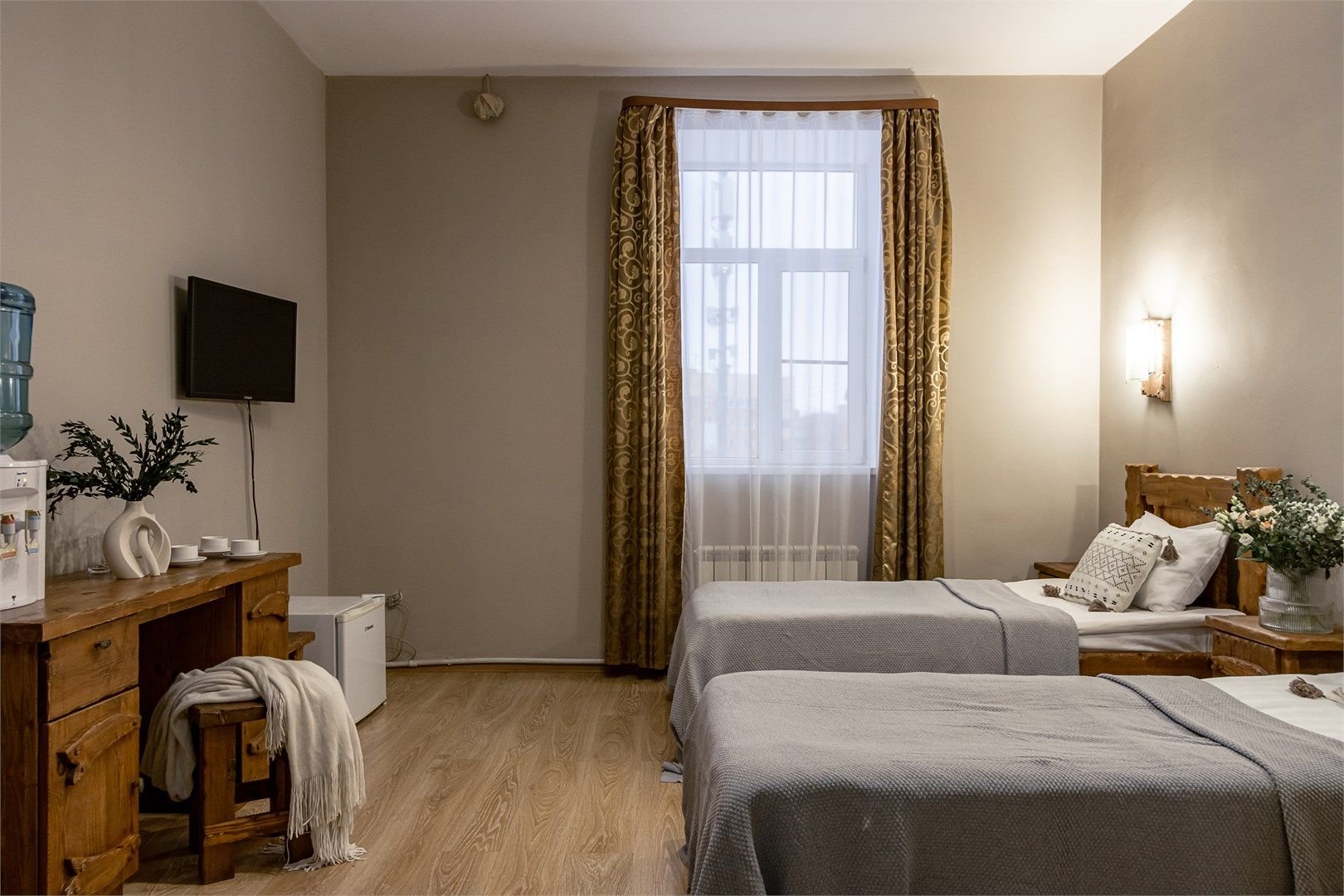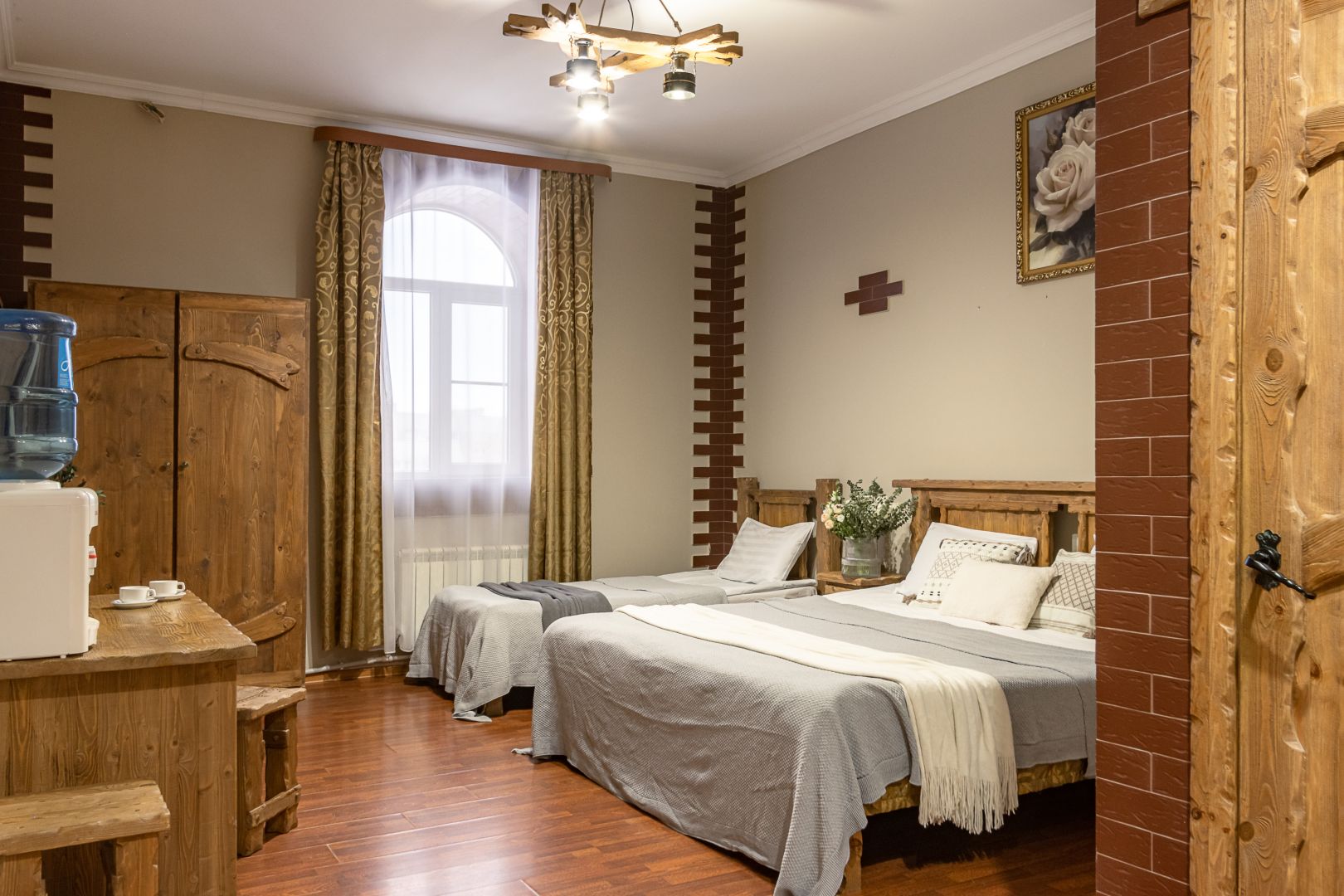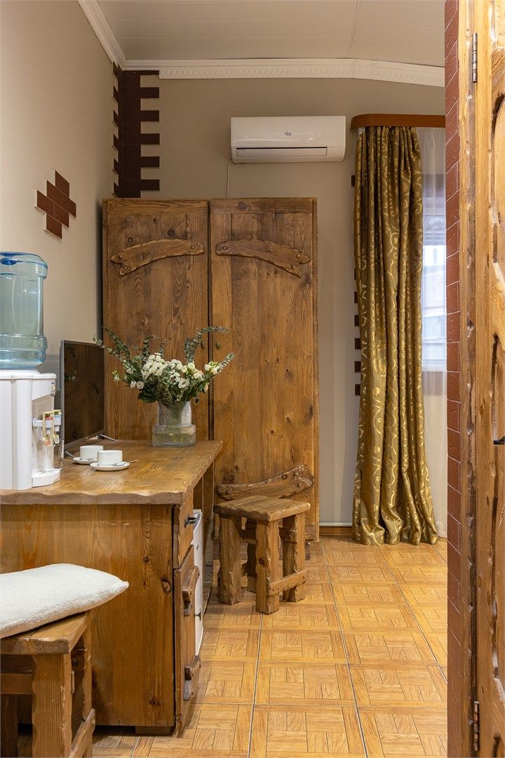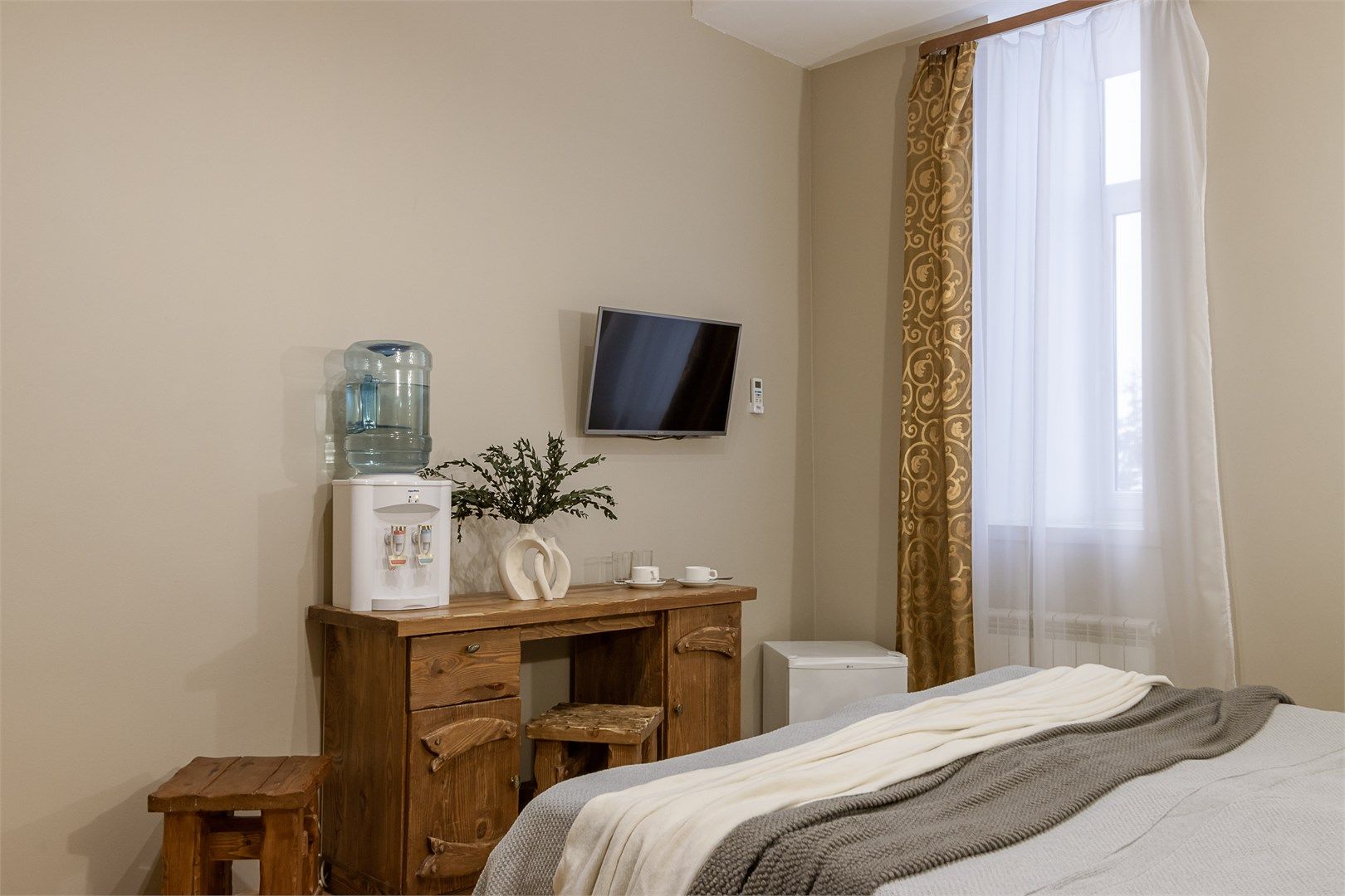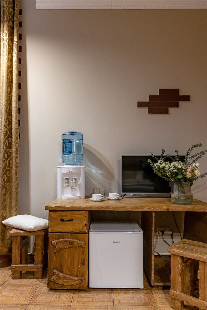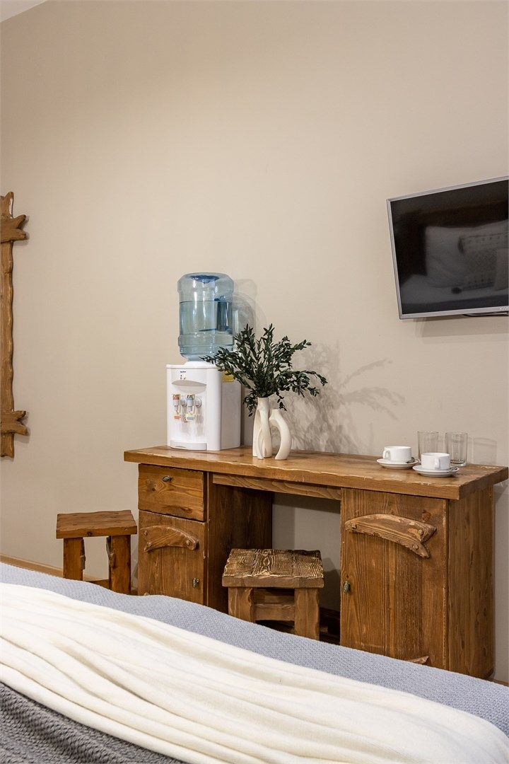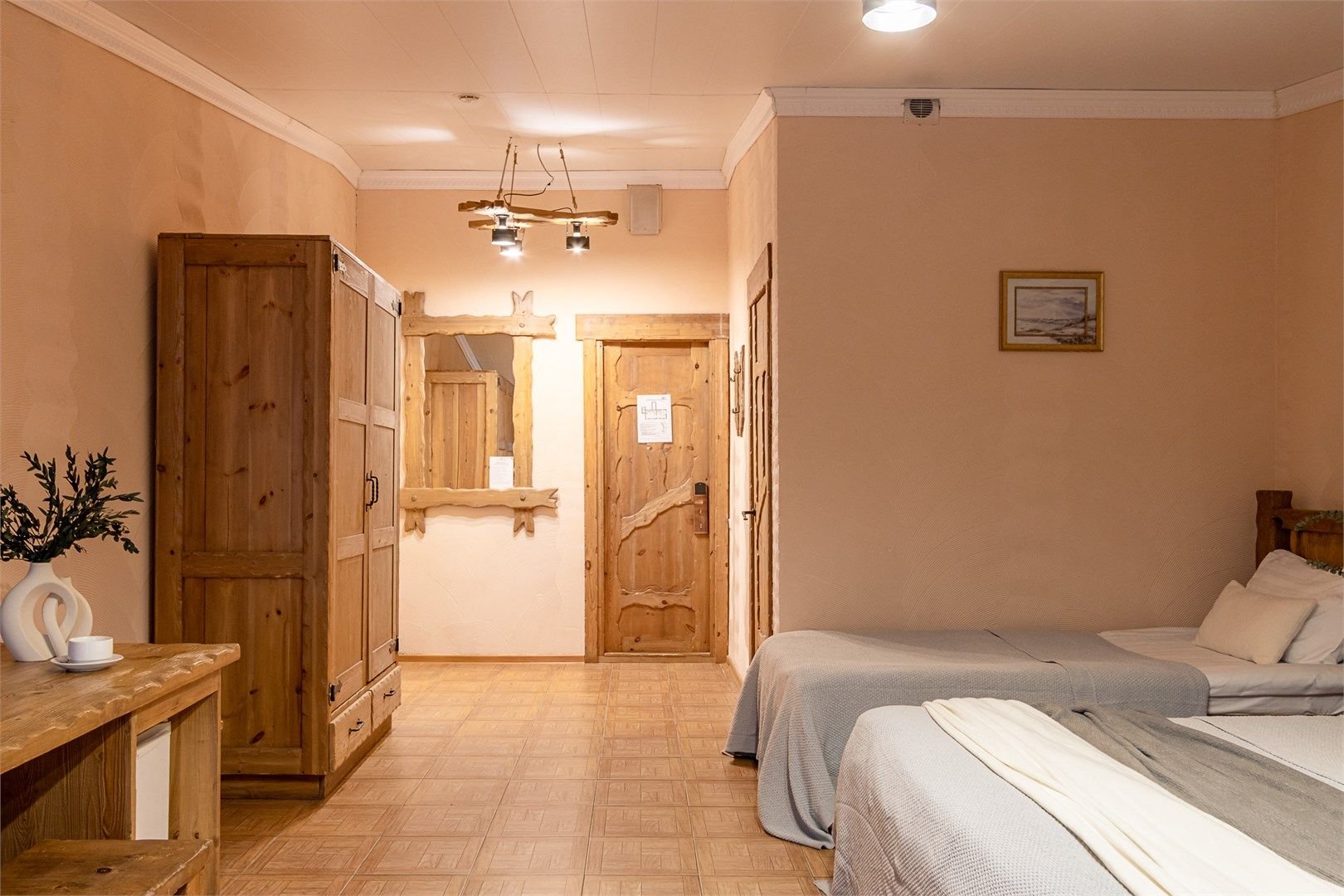 Уютный однокомнатный номер располагает всем необходимым для комфортного отдыха. В номере установлены шкаф для одежды, сейф, телевизор, холодильник, кулер с питьевой водой, чайный набор, бесплатный Wi-fi. Ванная комната оснащена душевой кабиной, феном, комплектом полотенец и набором гигиенических принадлежностей....