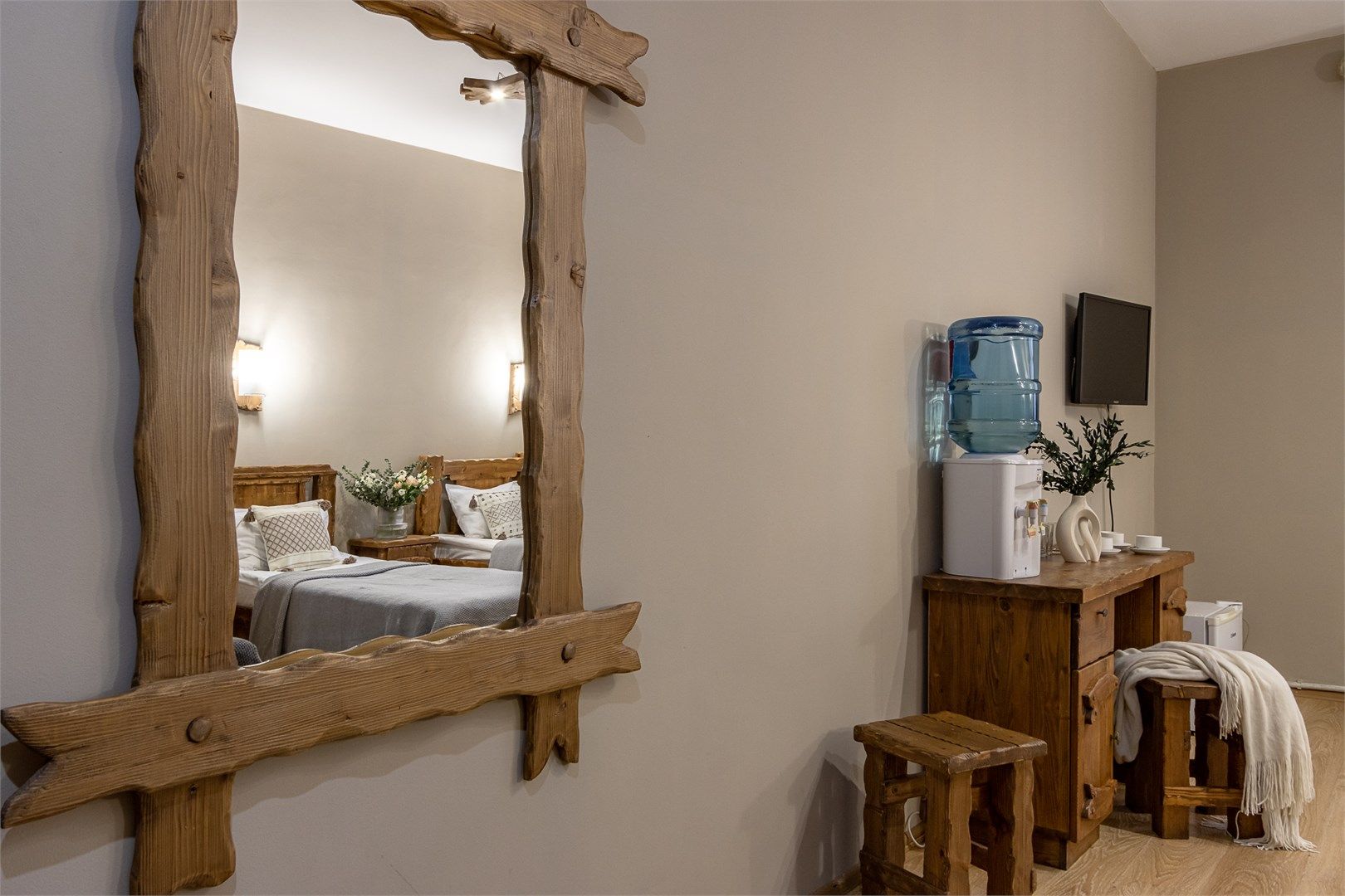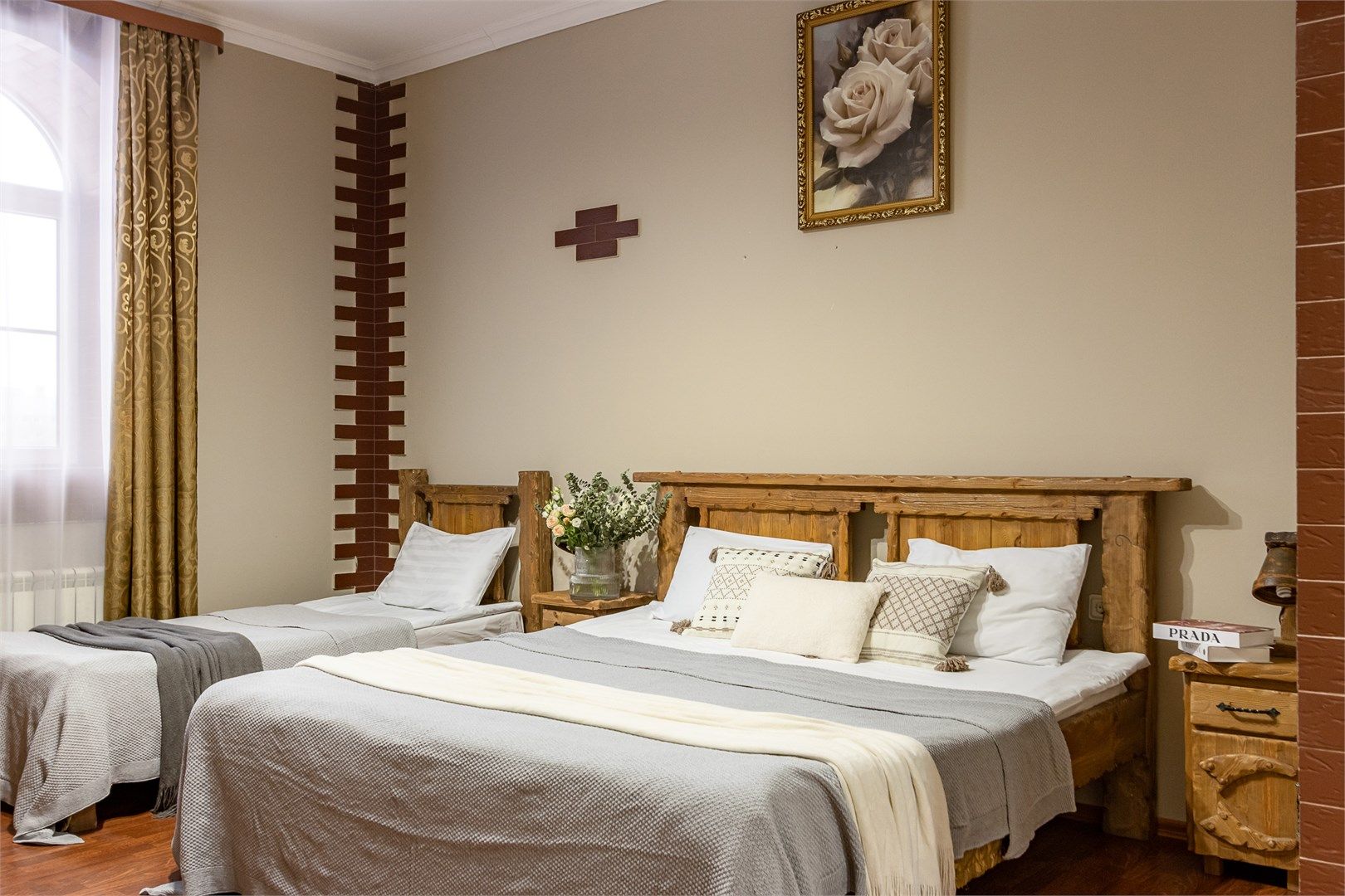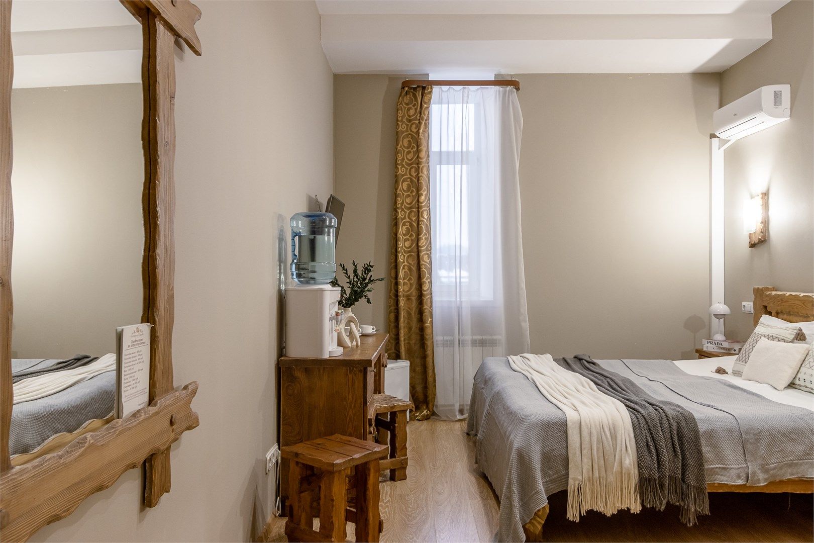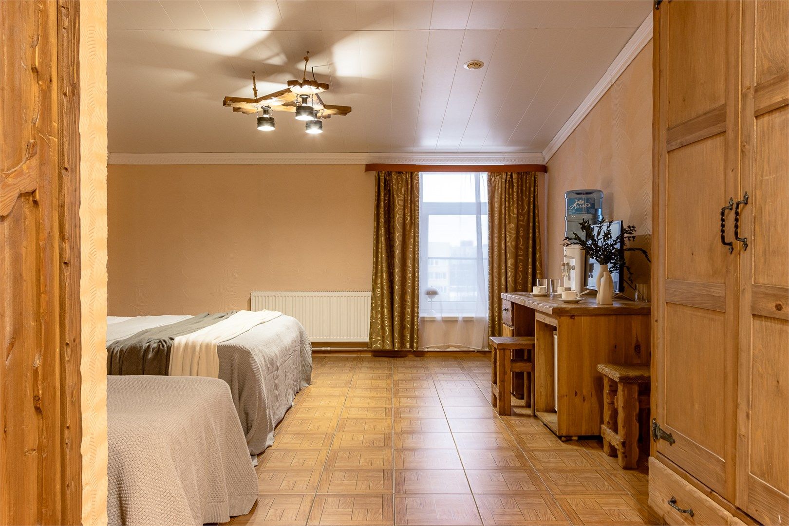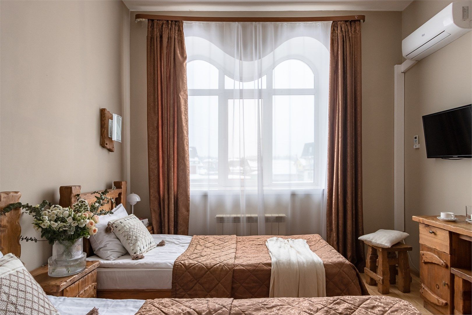 Уютный однокомнатный номер располагает всем необходимым для комфортного отдыха. В номере установлены шкаф для одежды, сейф, телевизор, холодильник, кулер с питьевой водой, чайный набор, бесплатный Wi-fi. Ванная комната оснащена душевой кабиной, феном, комплектом полотенец и набором гигиенических принадлежностей....