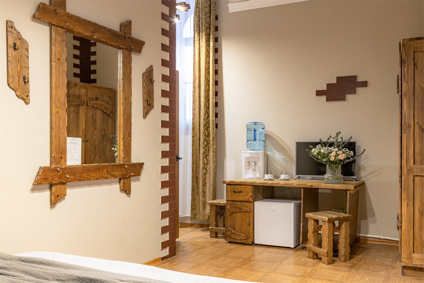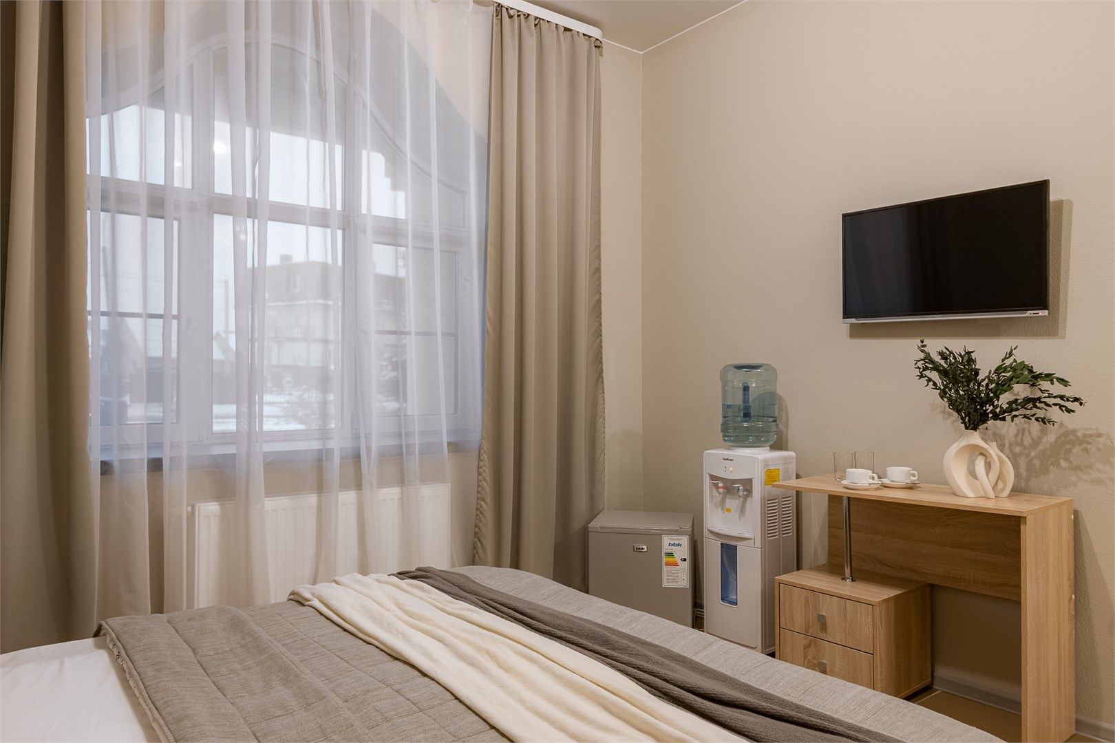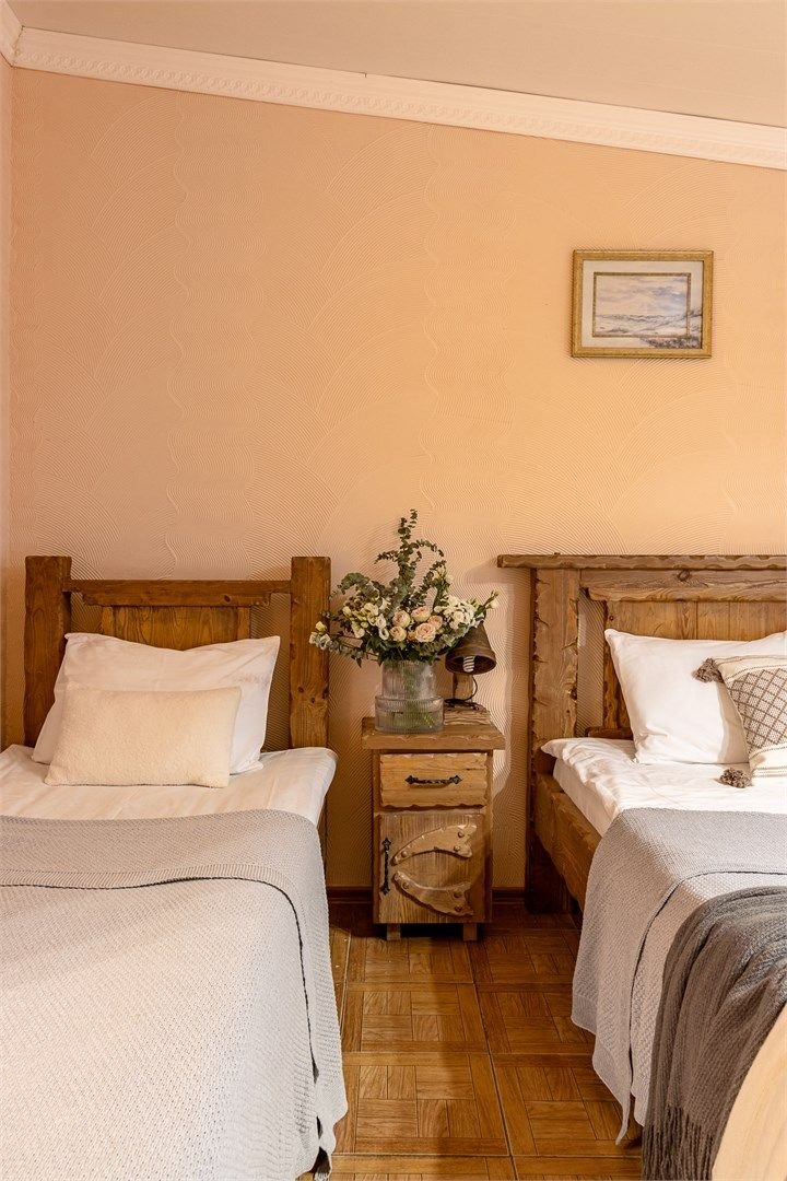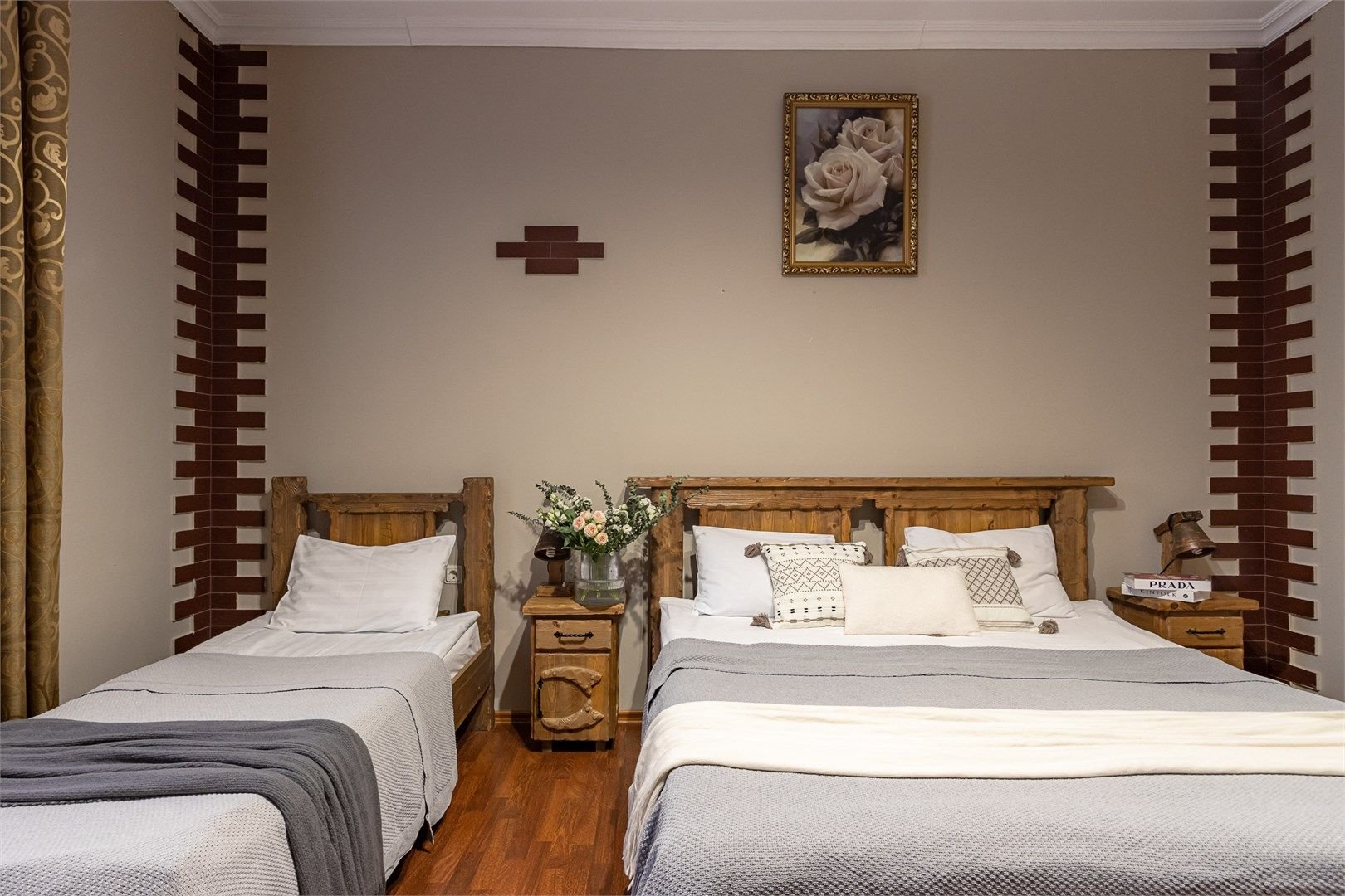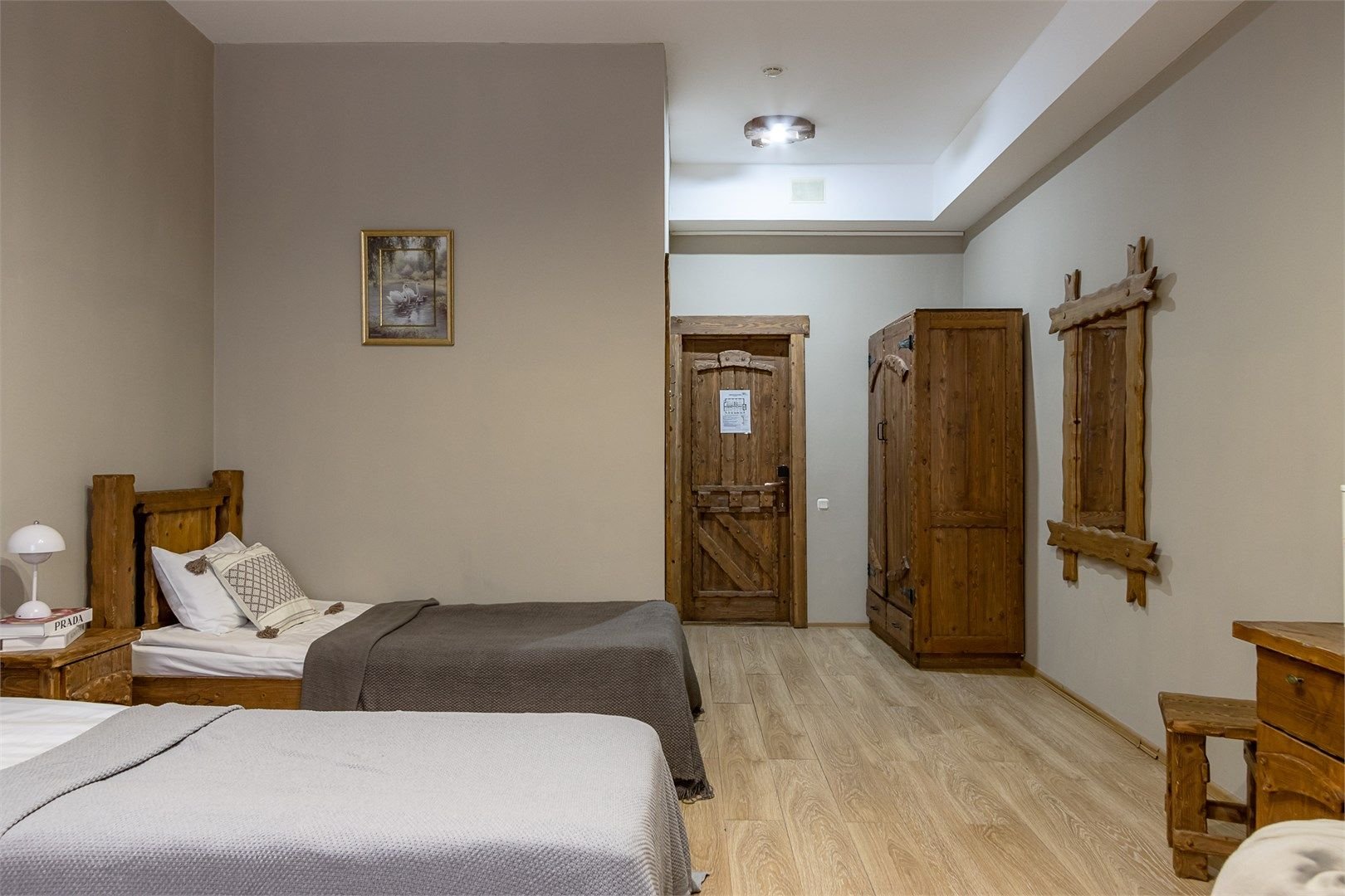 Уютный однокомнатный номер располагает всем необходимым для комфортного отдыха. В номере установлены шкаф для одежды, сейф, телевизор, холодильник, кулер с питьевой водой, чайный набор, бесплатный Wi-fi. Ванная комната оснащена душевой кабиной, феном, комплектом полотенец и набором гигиенических принадлежностей....