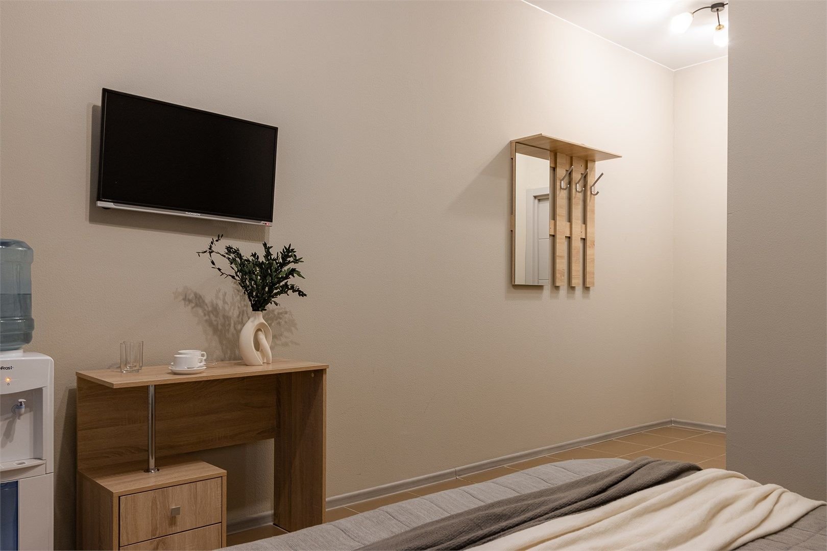 Уютный однокомнатный номер располагает всем необходимым для комфортного отдыха. В номере установлен шкаф для одежды, телевизор, холодильник, бутилированная вода. Ванная комната оснащена душевой кабиной, феном, комплектом полотенец и набором принадлежностей для душа....