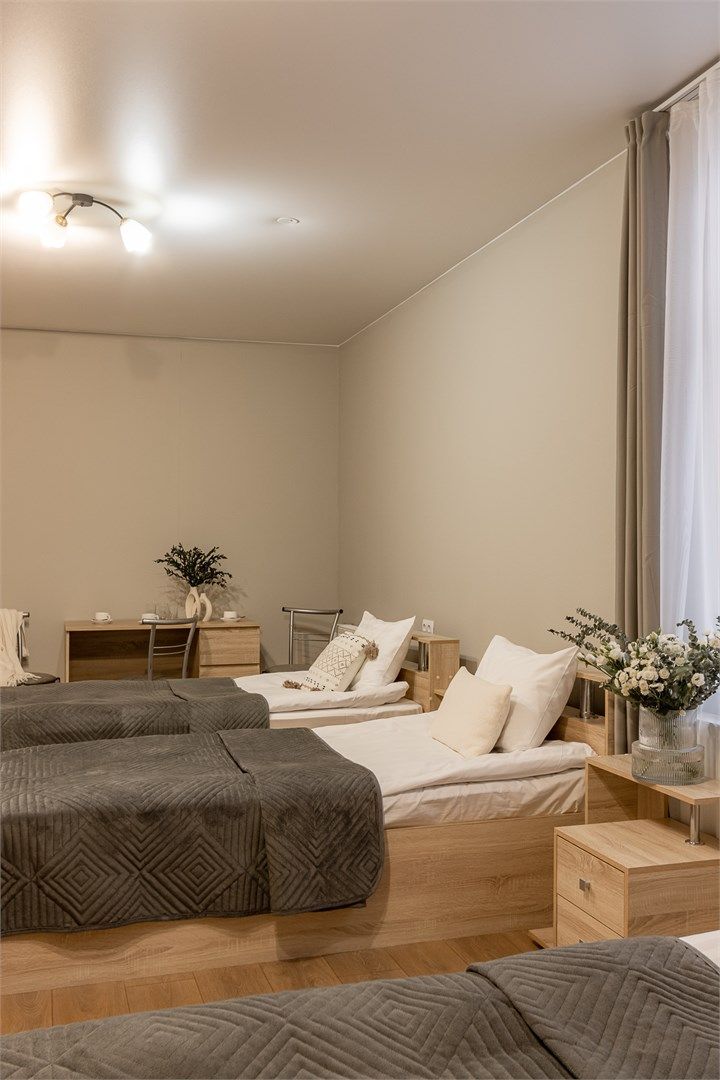 Уютный однокомнатный номер располагает всем необходимым для комфортного отдыха. В номере установлены шкаф для одежды, телевизор, тапочки, холодильник, кулер с питьевой водой, бесплатный Wi-fi. Ванная комната оснащена душевой кабиной, феном, комплектом полотенец и набором гигиенических принадлежностей....