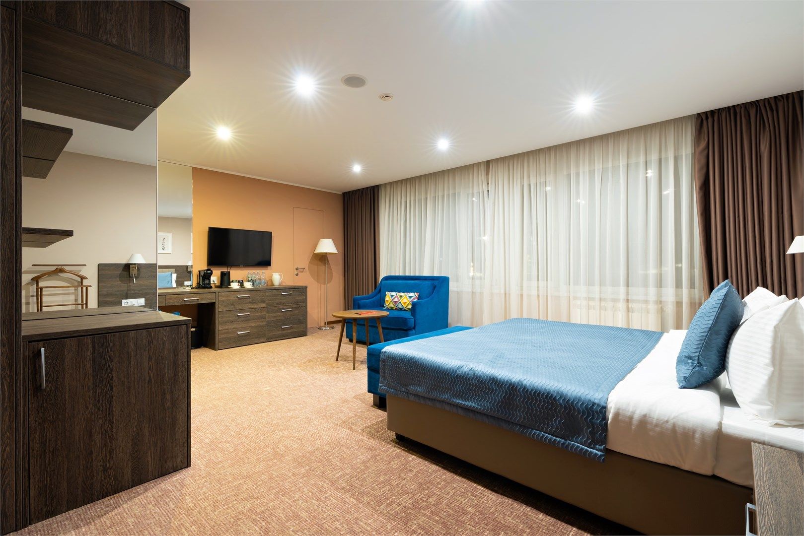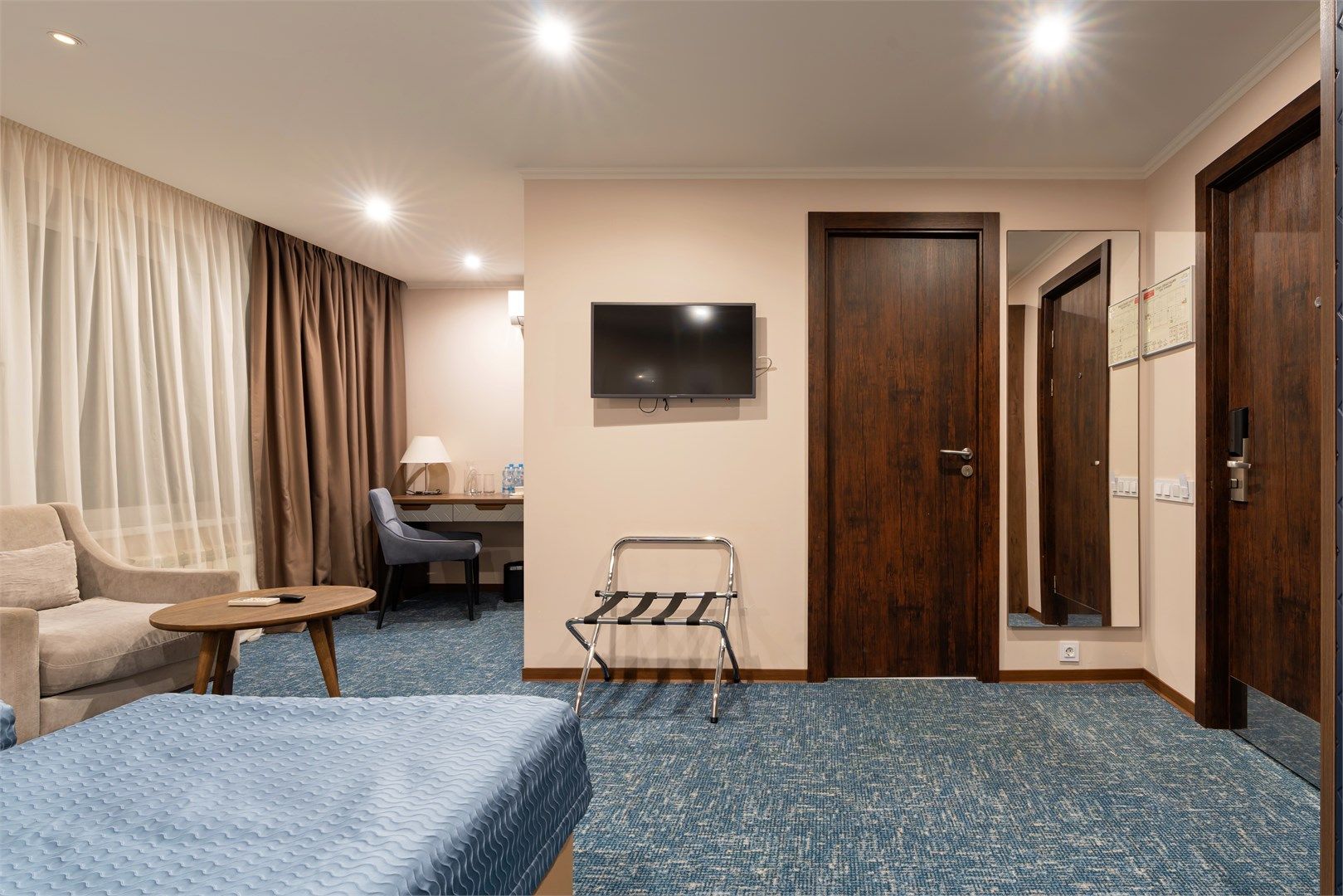 Уютный и функциональный номер, спроектированный с особым вниманием к комфорту и свободе передвижения.