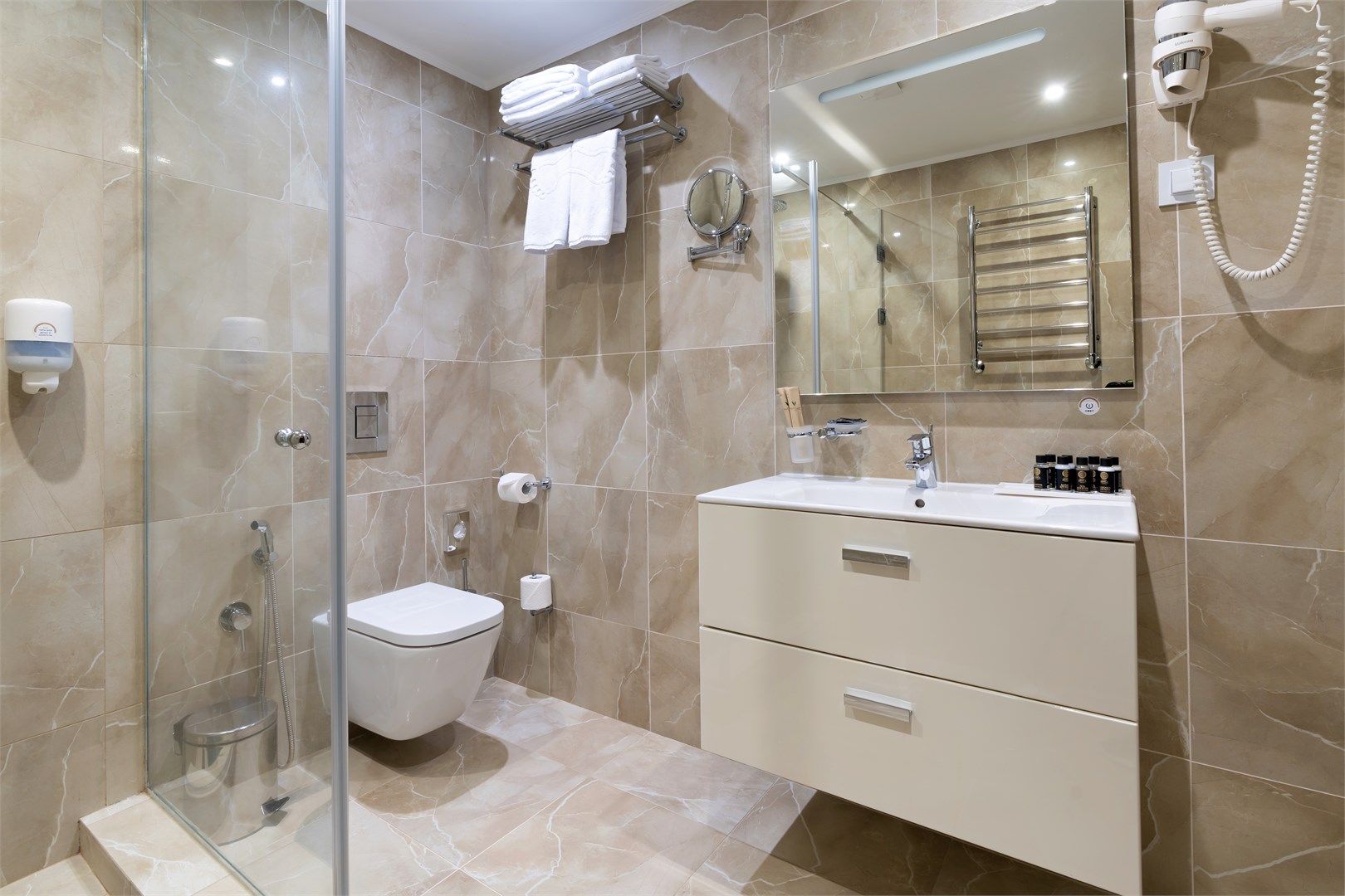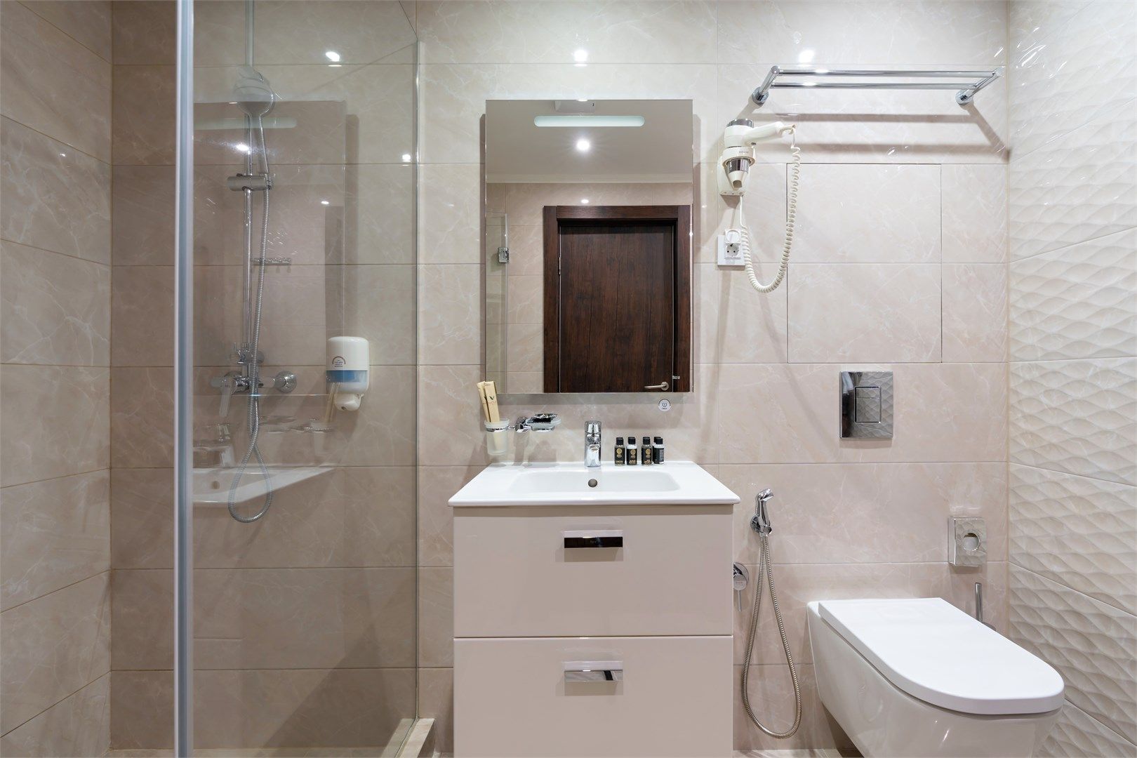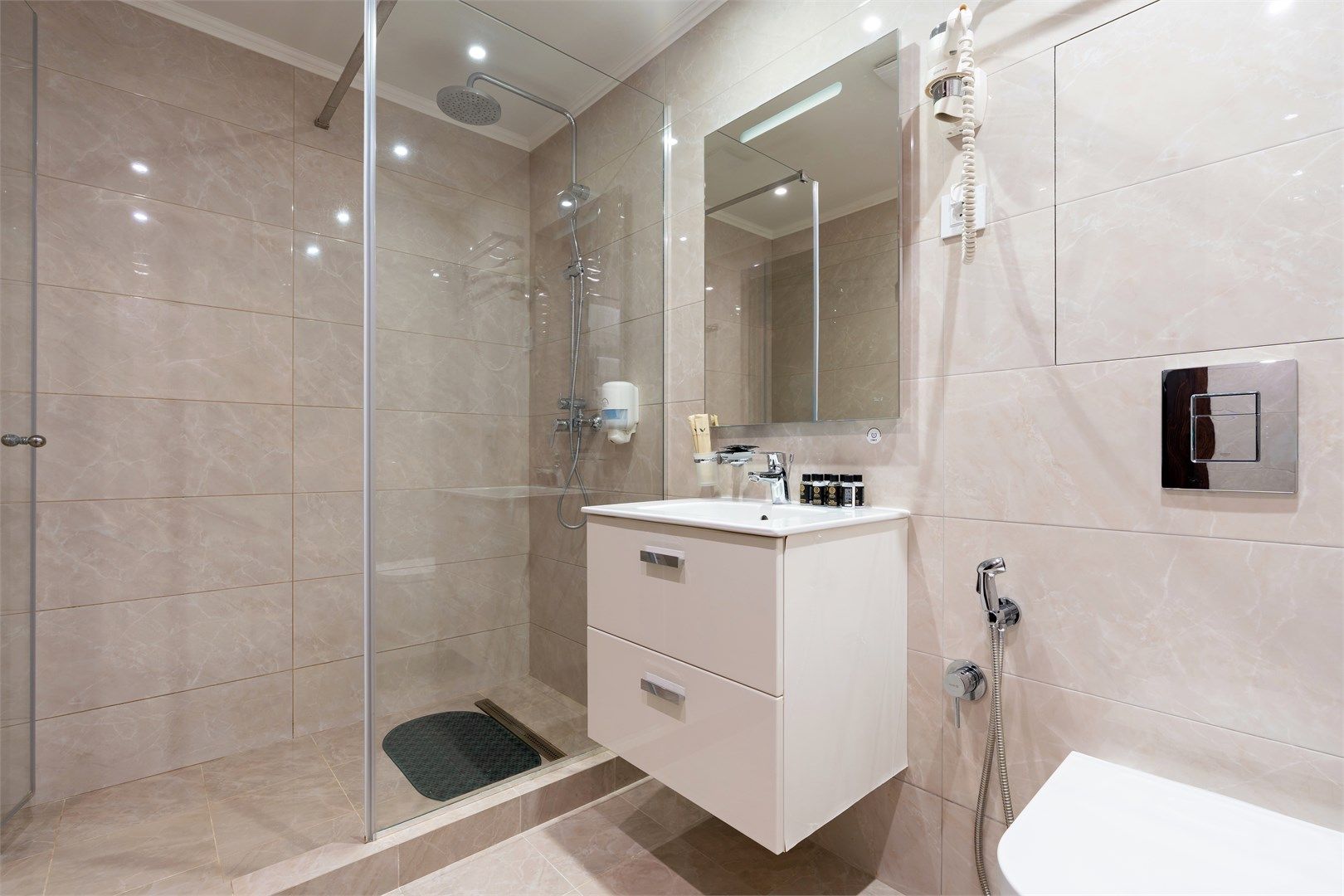 Пространство продумано до мелочей: широкие проходы обеспечивают легкость перемещения, а эргономичная мебель и современная сантехника учитывают потребности гостей с ограниченными возможностями. Каждая деталь интерьера направлена на то, чтобы сделать пребывание максимально удобным и безопасным....