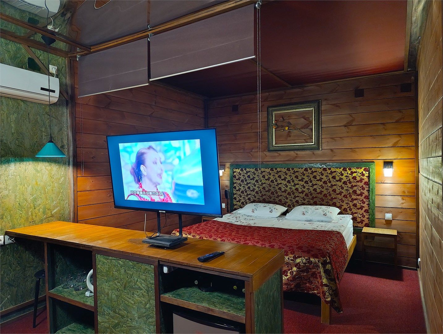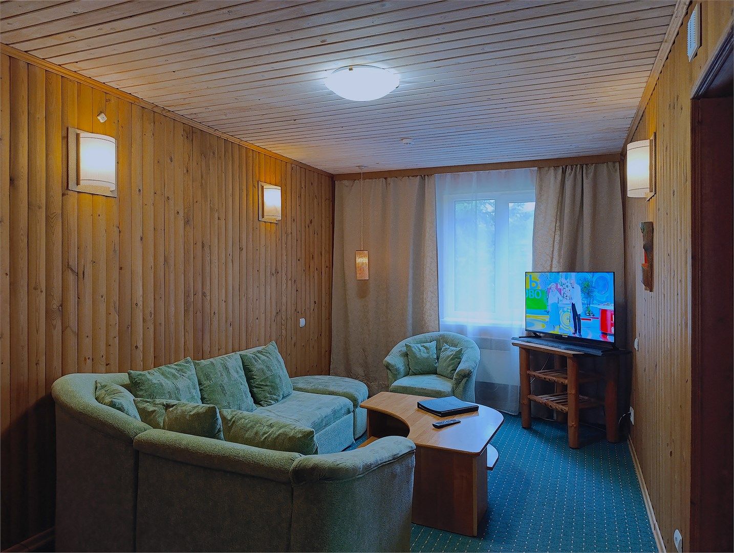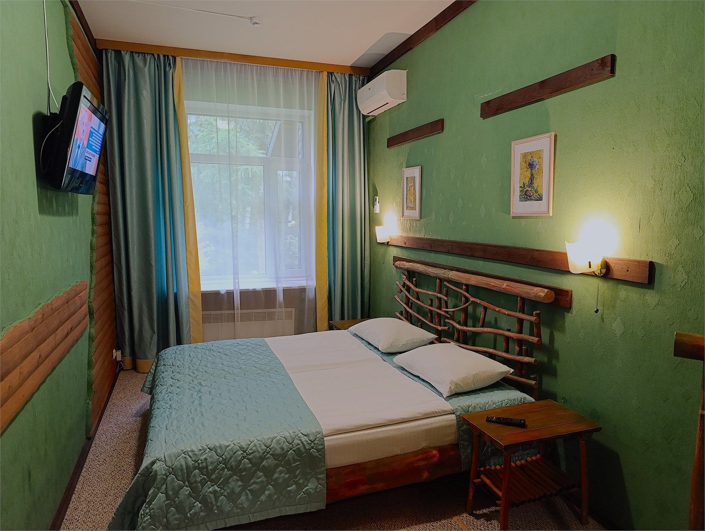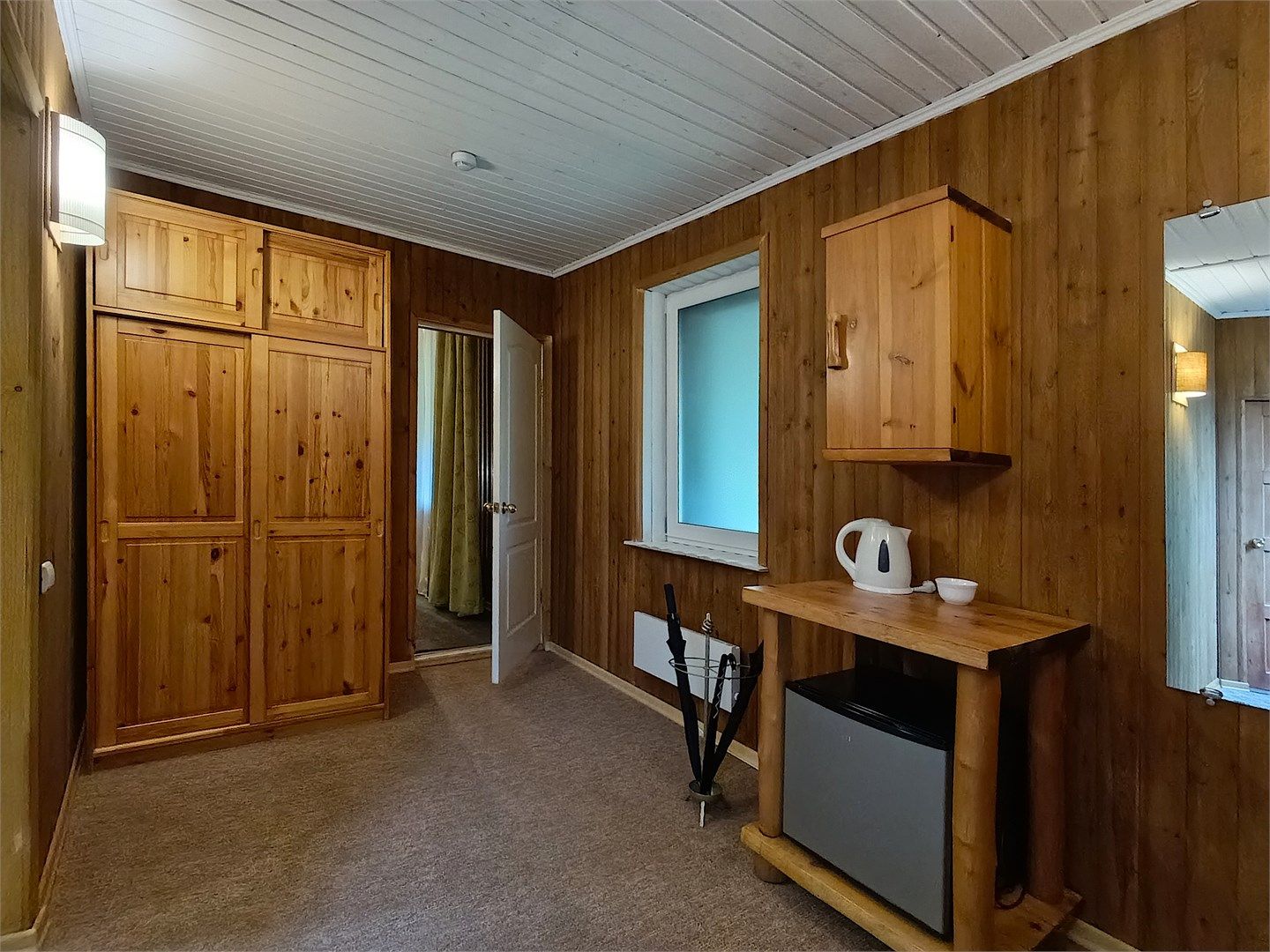 Однокомнатный отдельно стоящий коттедж площадью 45 кв.м. Внутреннее оформление коттеджа выполнено в деревенском стиле. В коттедже: прихожая, комната с двумя раздельными односпальными кроватями, журнальным столиком с креслами, санузел с душевой кабиной, кондиционер, большой ЖК телевизор, кондиционер, мини-бар, холодильник, фен, электрочайник, бесплатный WI-FI, телефон. Для каждого гос...