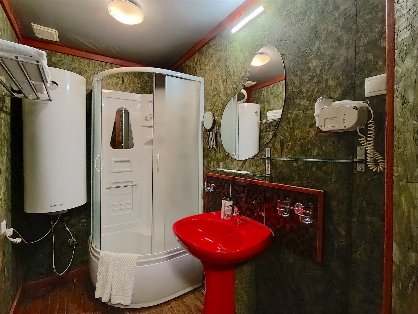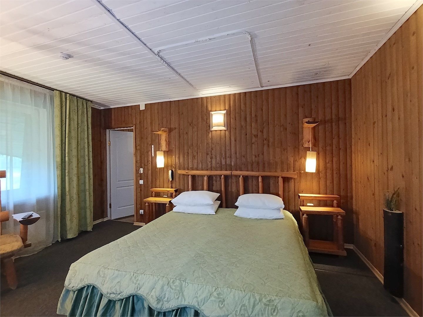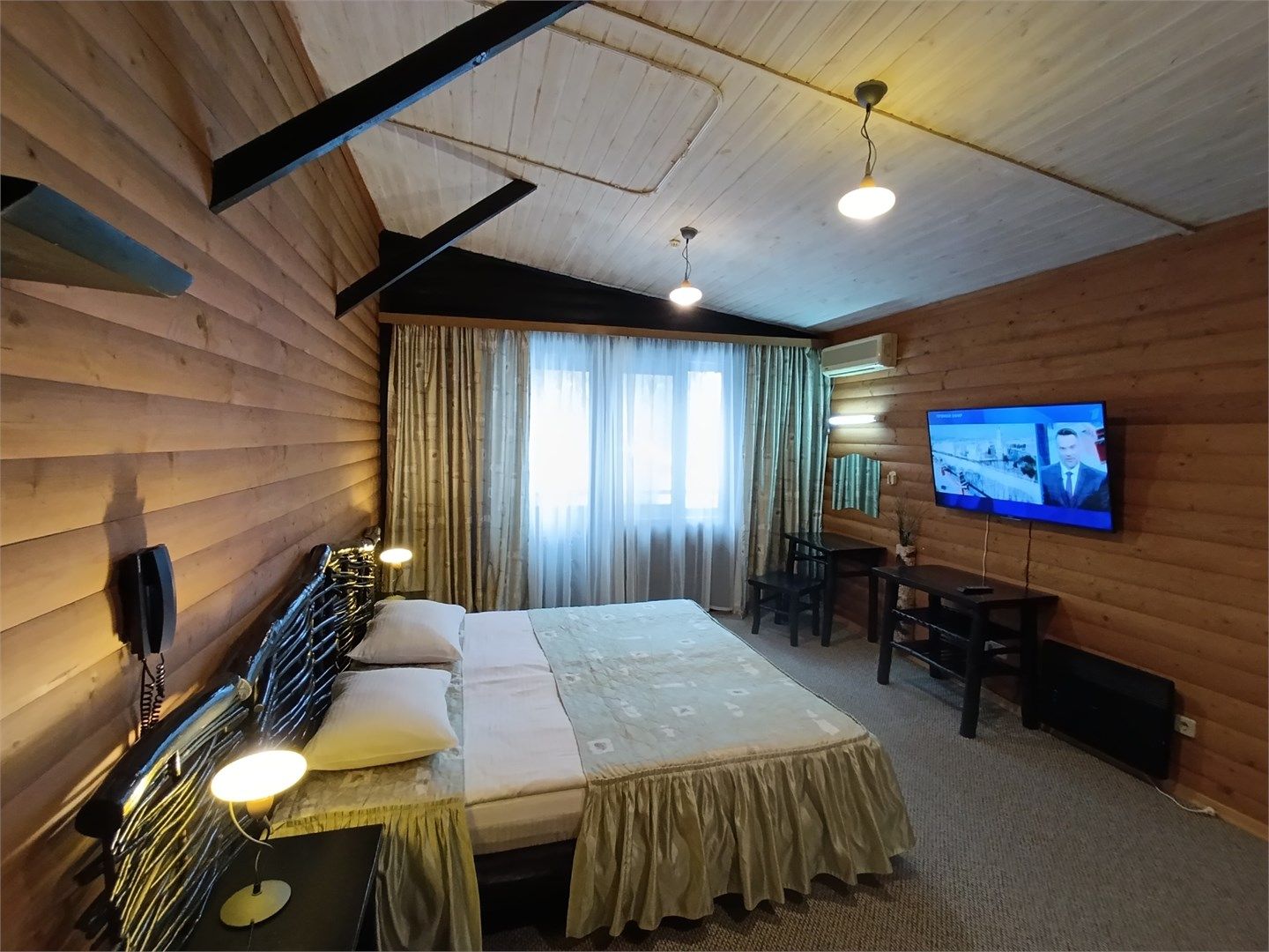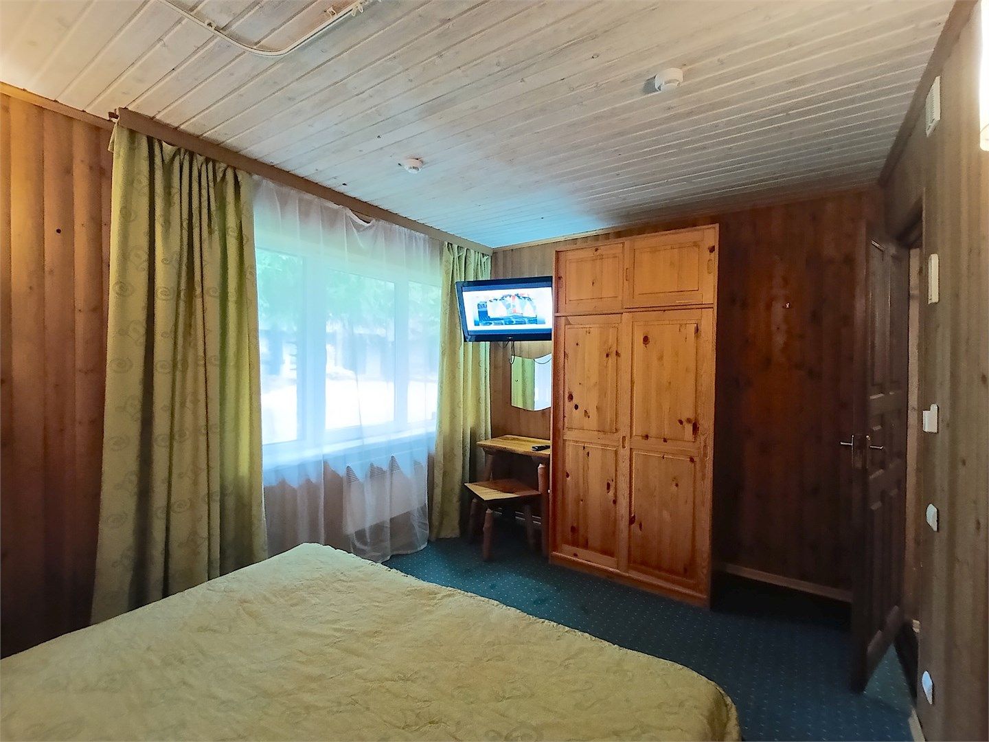 Однокомнатный отдельно стоящий коттедж площадью 45 кв.м. Внутреннее оформление коттеджа выполнено в деревенском стиле. В коттедже: прихожая, комната с двумя раздельными односпальными кроватями, журнальным столиком с креслами, санузел с душевой кабиной, кондиционер, большой ЖК телевизор, кондиционер, мини-бар, холодильник, фен, электрочайник, бесплатный WI-FI, телефон. Для каждого гос...