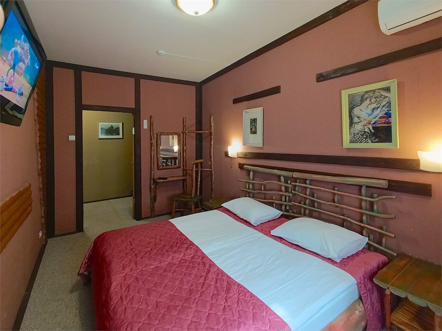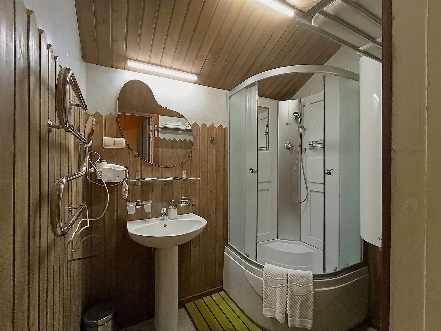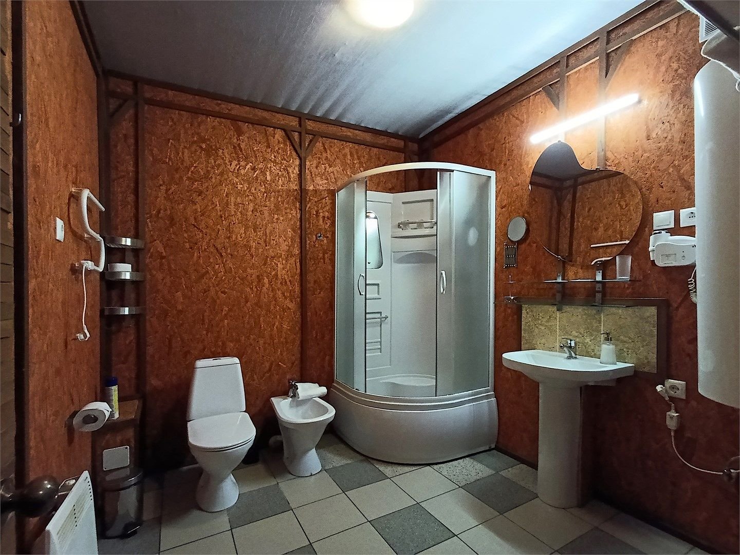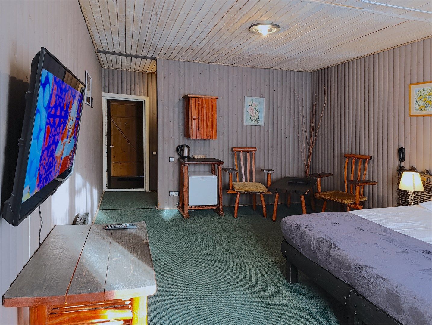 Однокомнатный отдельно стоящий коттедж площадью 45 кв.м. Внутреннее оформление коттеджа выполнено в деревенском стиле. В коттедже: прихожая, комната с двумя раздельными односпальными кроватями, журнальным столиком с креслами, санузел с душевой кабиной, кондиционер, большой ЖК телевизор, кондиционер, мини-бар, холодильник, фен, электрочайник, бесплатный WI-FI, телефон. Для каждого гос...