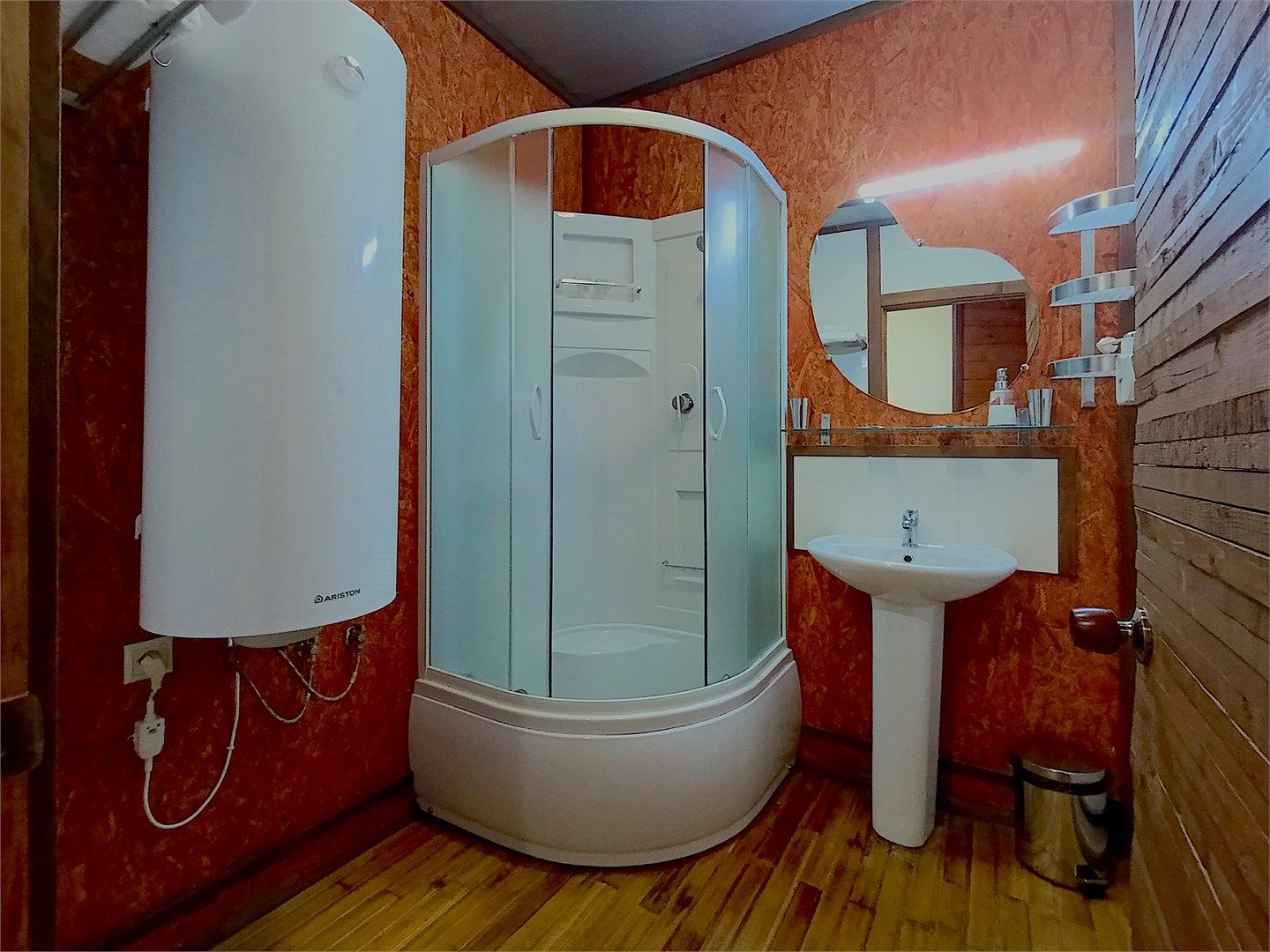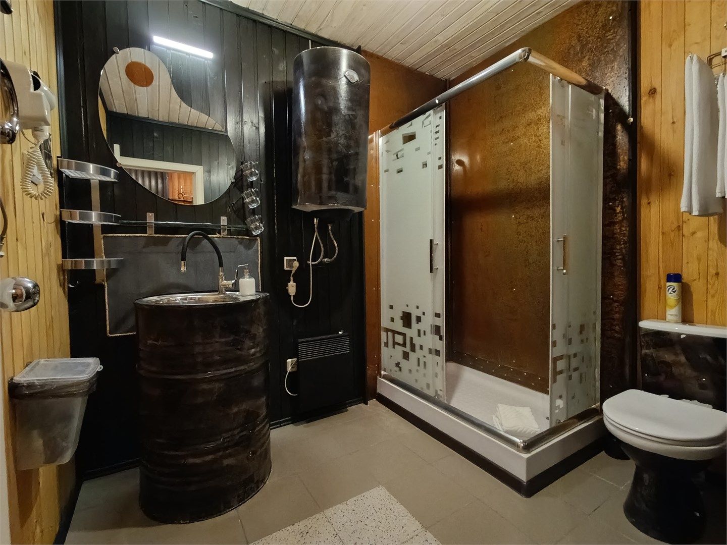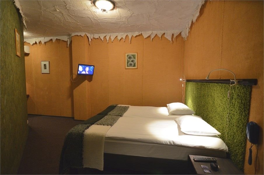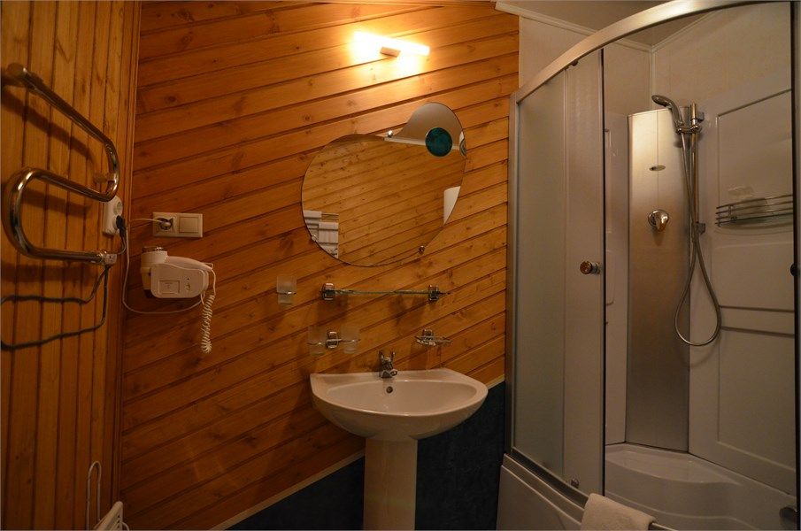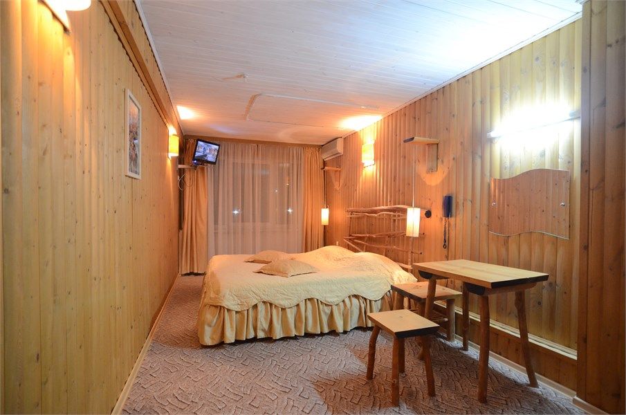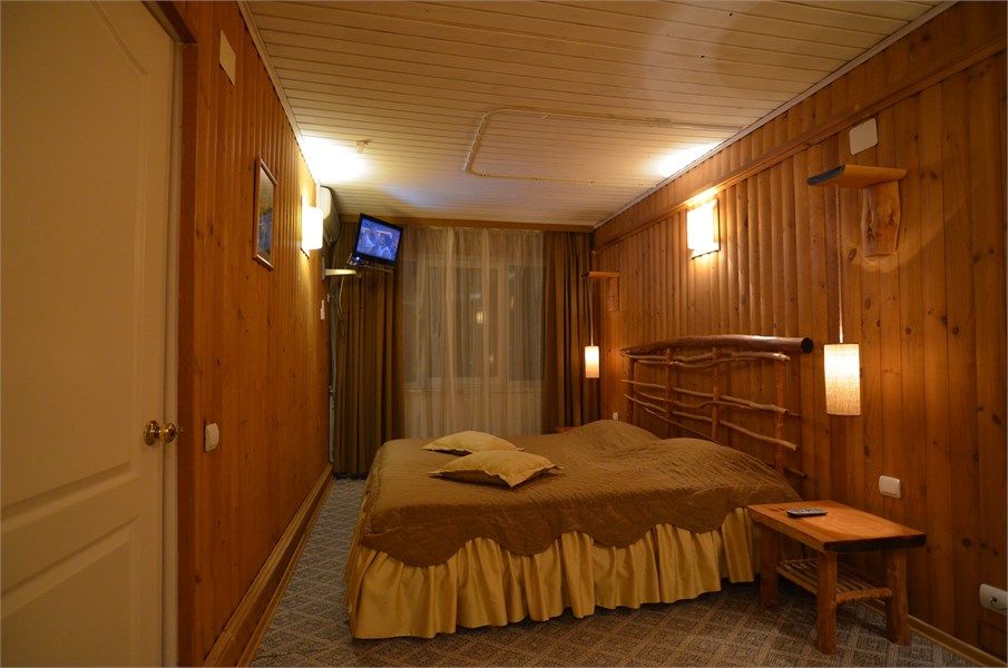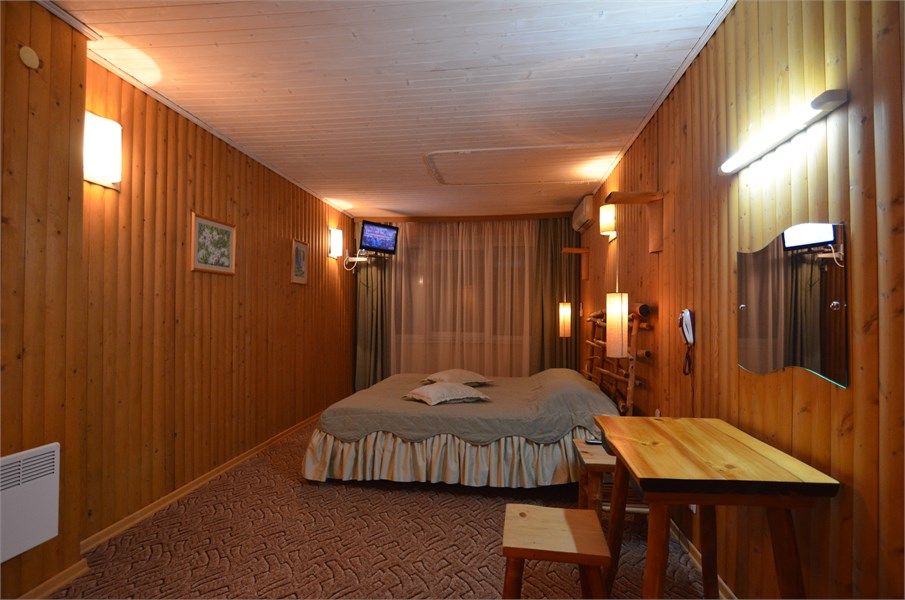 Однокомнатный отдельно стоящий коттедж площадью 40 кв.м. Внешне стилизован и напоминает форму бочки, внутреннее оформление коттеджа выполнено в деревенском стиле. В коттедже: прихожая, комната с кроватью "King size", журнальным столиком с креслами, санузел с душевой кабиной, большой ЖК телевизор, кондиционер, мини-бар, холодильник, фен, электрочайник, бесплатный WI-FI, телефон. Для каждог...