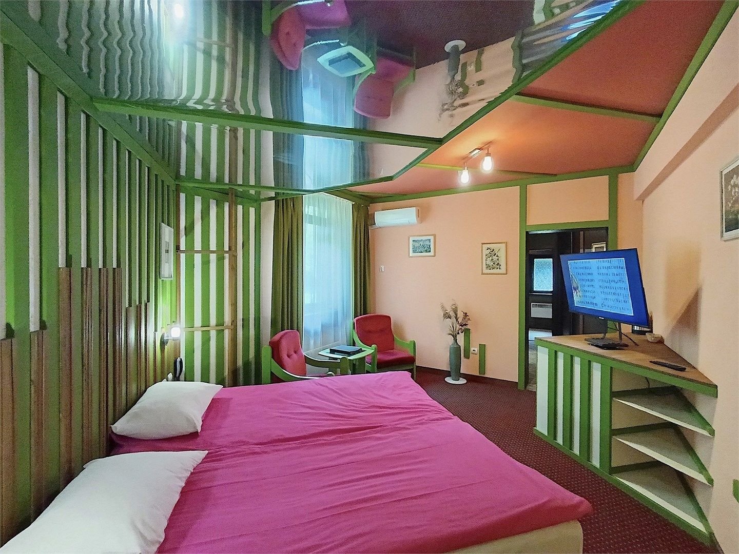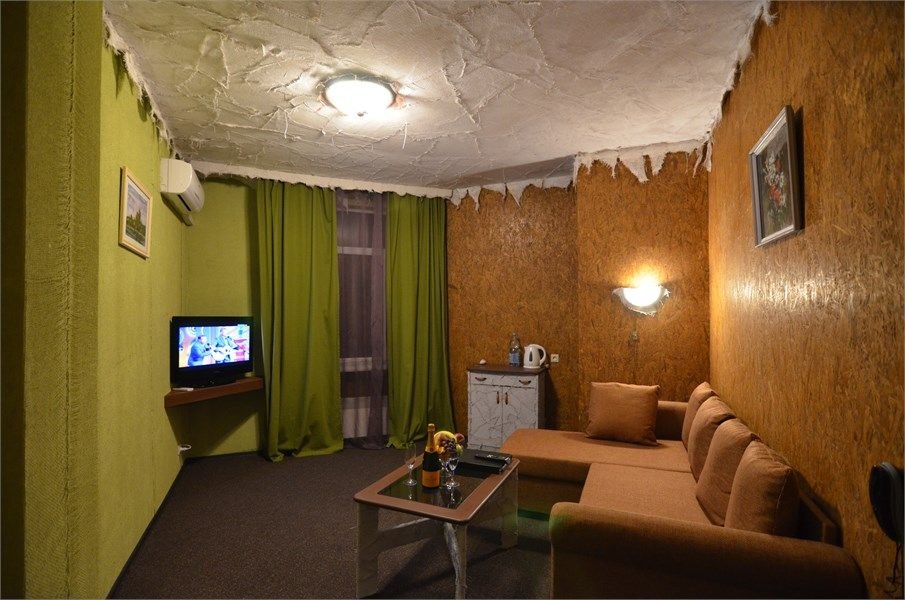 Сюит «Каприз» представляют из себя просторный однокомнатный жилой номер площадью около 40 кв. м. Номер имеет отдельный вход с улицы. Эксклюзивный ручной работы дизайн номеров. В номере: прихожая, спальная комната с двумя односпальными кроватями, санузел с душевой кабиной, кондиционер, большой ЖК-телевизор, мини-бар, электрочайник, фен, посуда, бесплатный WI-FI, телефон. Для каждого гостя...