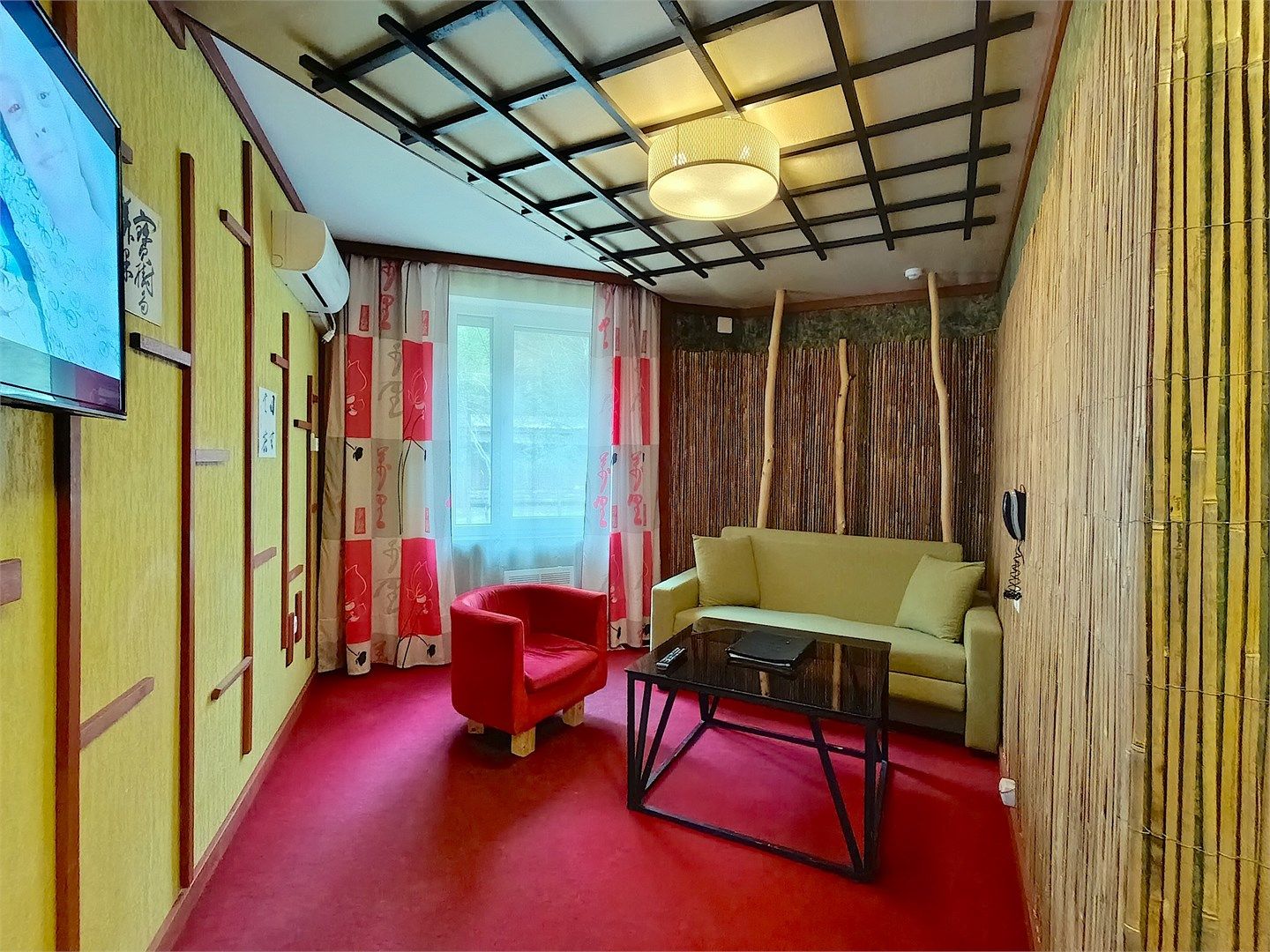 Двухкомнатный номер с эксклюзивным дизайном в японском стиле, площадью 40 кв. м. В номере: большая прихожая, гостиная (мягкий диван и кресла), спальня с двумя раздельными односпальными кроватями и выделенной зоной с письменным столом для работы, раздельный санузел с душевой кабиной, ЖК- телевизоры и кондиционеры в каждой комнате, мини-бар, холодильник, электрочайник, фен, бесплатный WI-FI, тел...
