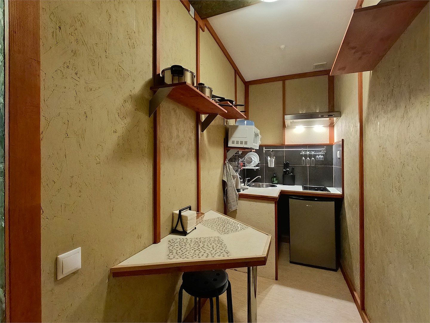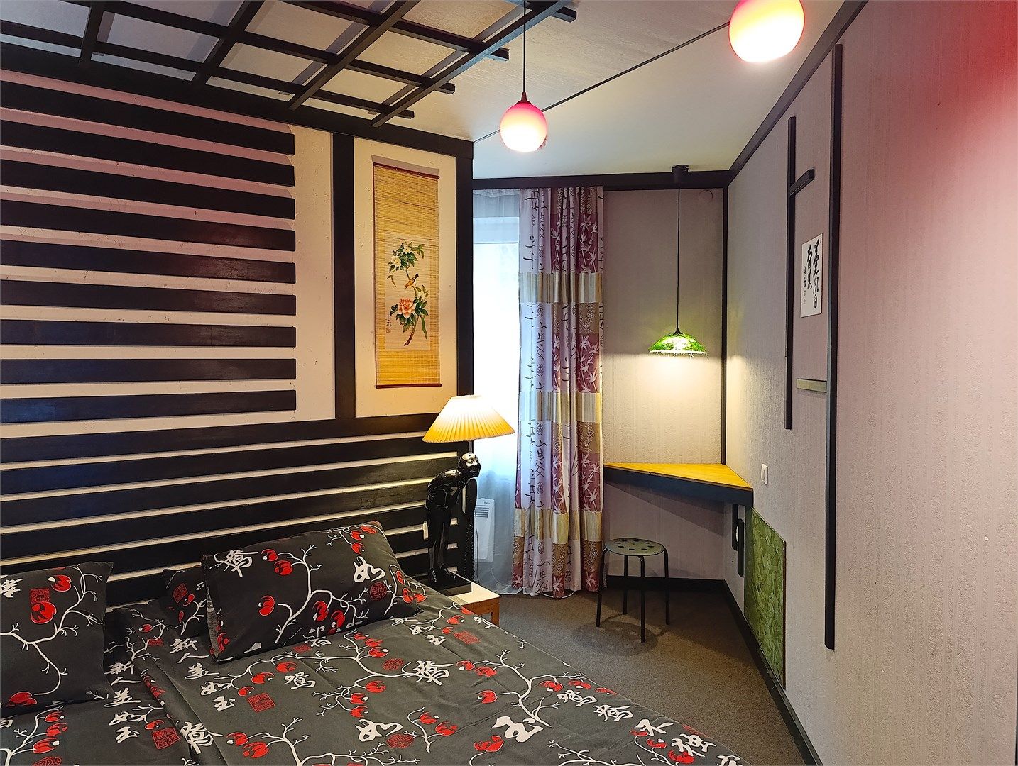 Двухкомнатный номер с кухней, площадью номера свыше 50 кв. м. Эксклюзивный дизайн ручной работы выполнен в японском стиле. В номере: прихожая, гостиная с выделенными зонами для отдыха (мягкий раскладывающийся двуспальный диван, журнальный столик и кресла), спальня с двумя раздельными односпальными кроватями, оборудованная кухня с обеденной зоной, раздельный санузел с душевой кабиной, мини-бар...