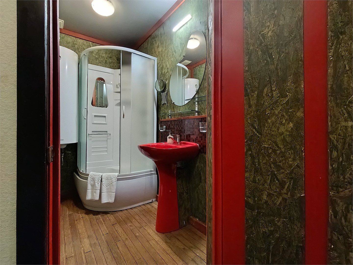 Двухкомнатный номер с кухней, площадью 60 кв. м. повышенной комфортности с эксклюзивным дизайном ручной работы. Номер имеет отдельный вход с улицы. В номере: прихожая, гостиная с мягким раскладывающийся двуспальный диваном, журнальным столиком и креслами, спальня с двумя односпальными кроватями и выделенной зоной для работы, оборудованная кухня, раздельный санузел с душевой кабиной, фен, ...