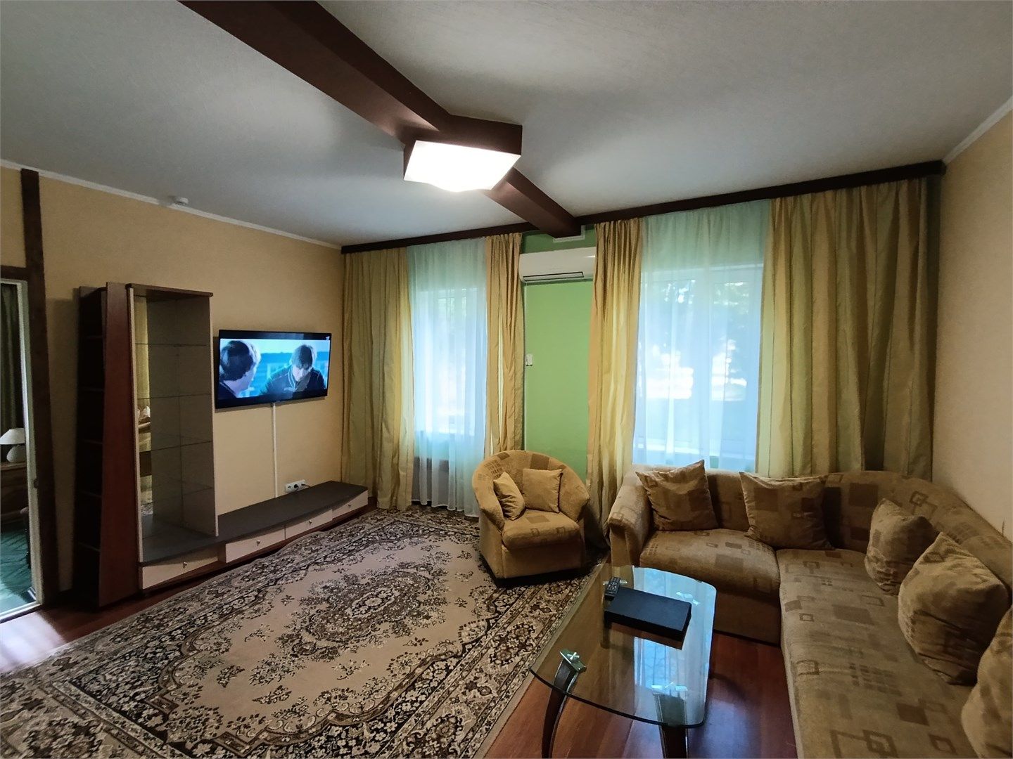 Трехкомнатный отдельно стоящий коттедж с кухней, площадь 71 кв.м. Интерьер коттеджа выполнен в деревенском стиле. В коттедже: прихожая, гостиная с зоной отдыха (угловой мягкий диван, журнальный столик с креслами), две спальни с раздельными односпальными кроватями, в каждой комнате кондиционер и ЖК телевизор, оборудованная кухня, раздельный санузел с душевой кабиной, мини-бар, электрочайник, фе...