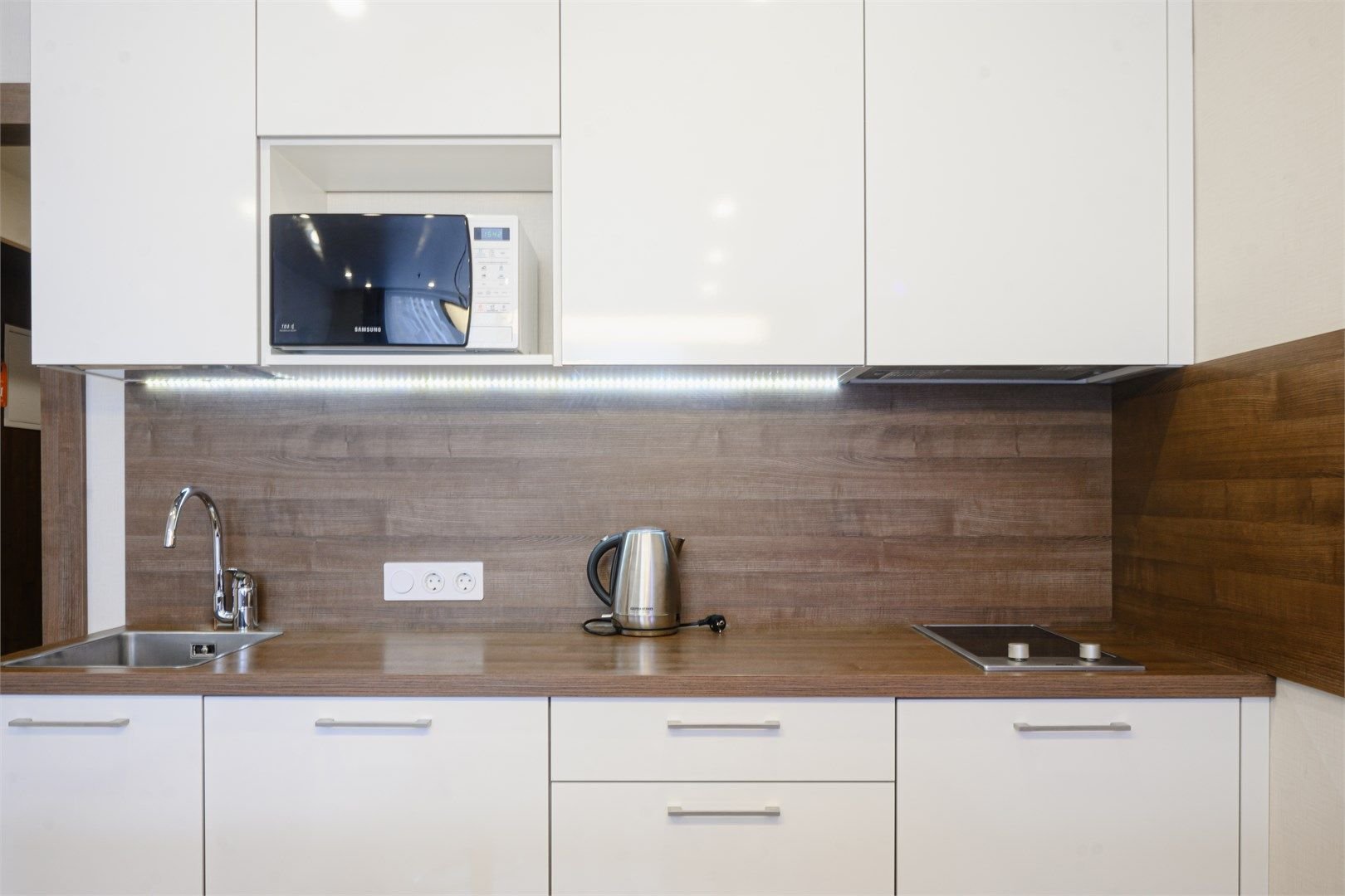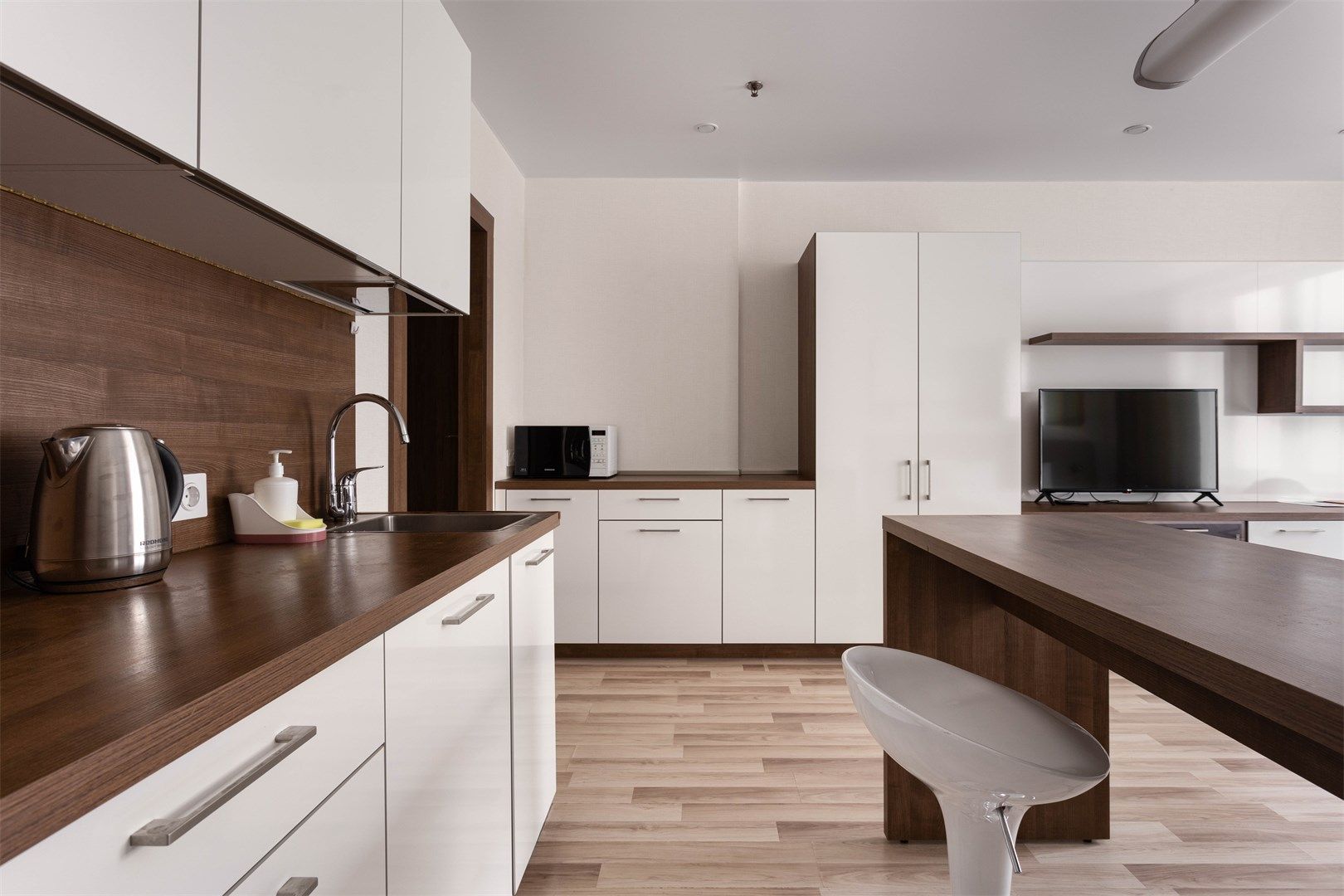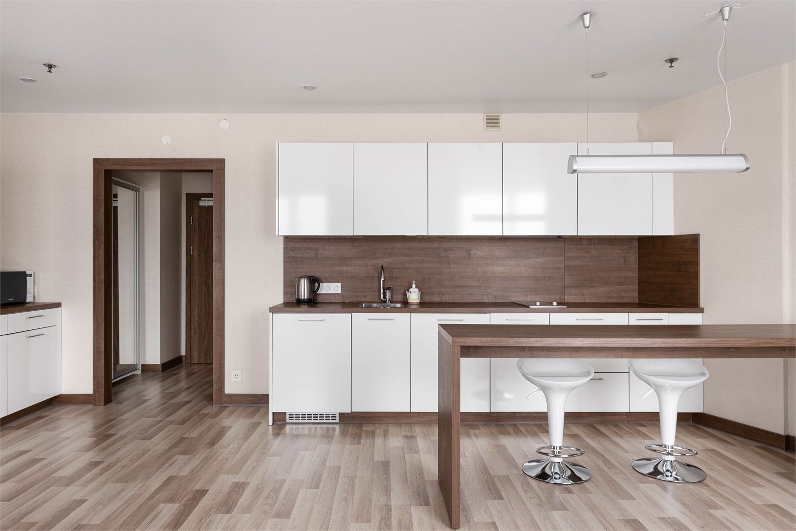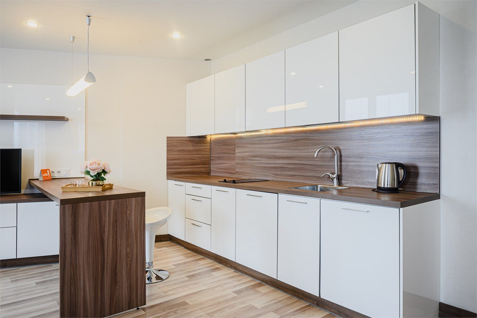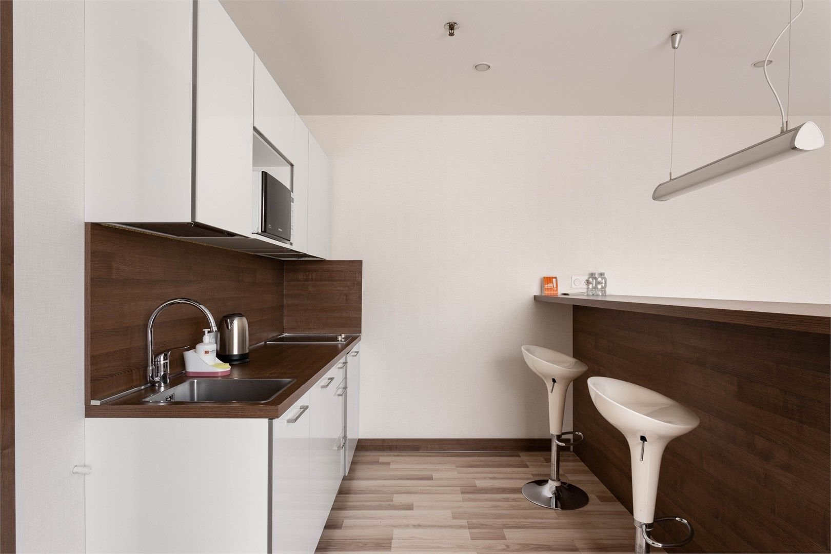 Светлые, уютные апартаменты с современной мебелью и техникой. В каждом апартаменте большая двуспальная кровать и кухонная зона, полностью оснащённая для комфортного проживания.