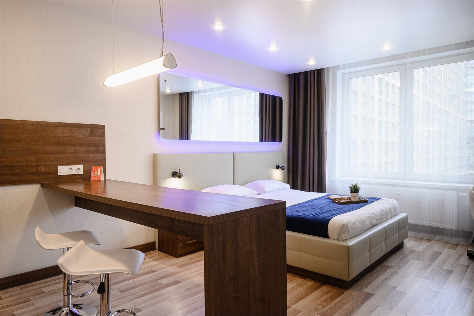 Также данная категория апартаментов подойдёт для комфортного размещения семьи из 3-4 человек, апартамент можно укомплектовать дополнительными спальными местами. При размещении с детьми до 4 лет в апартаменте можно установить детскую кроватку (бесплатно) или еврораскладушку (платная услуга).