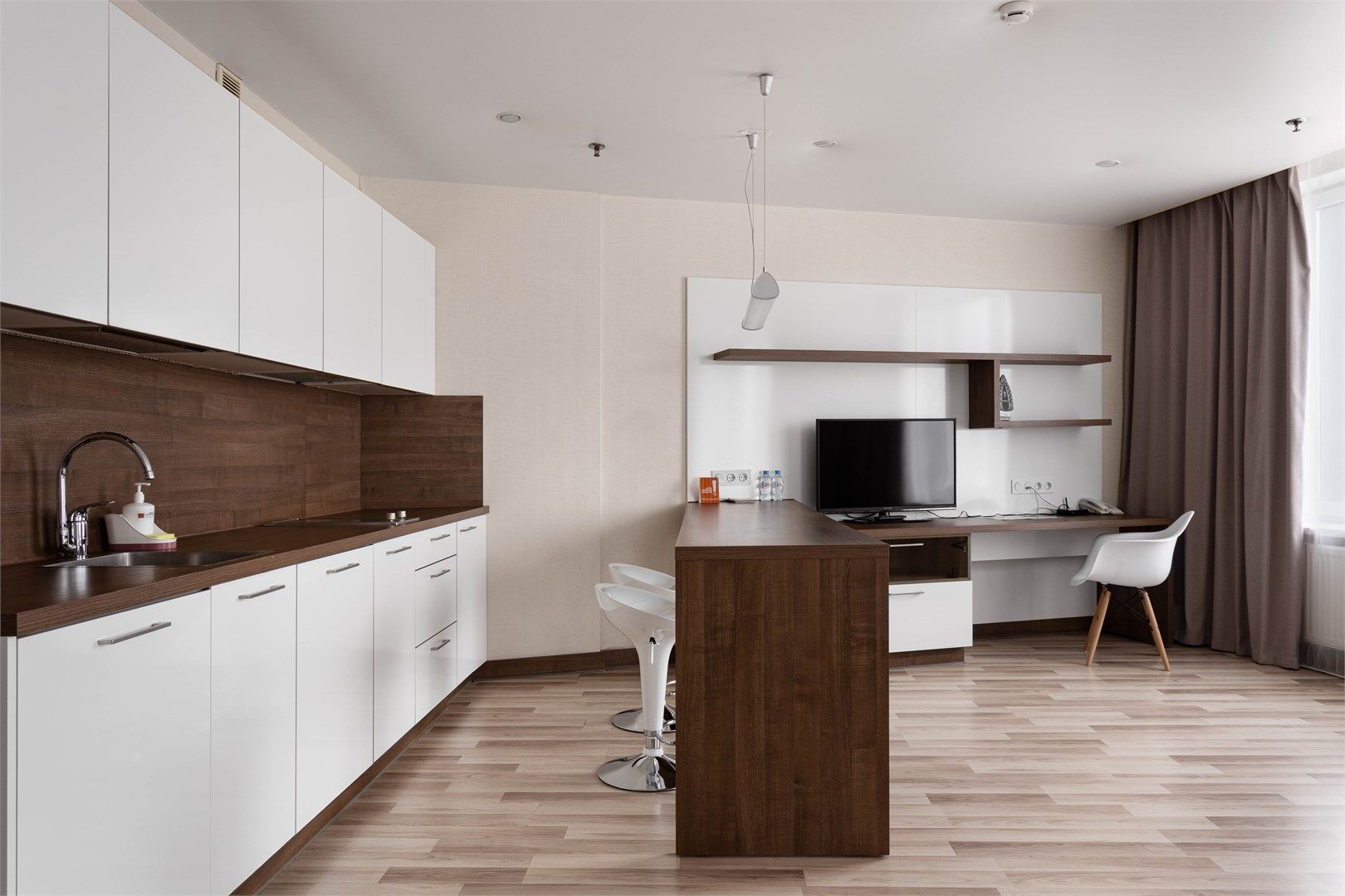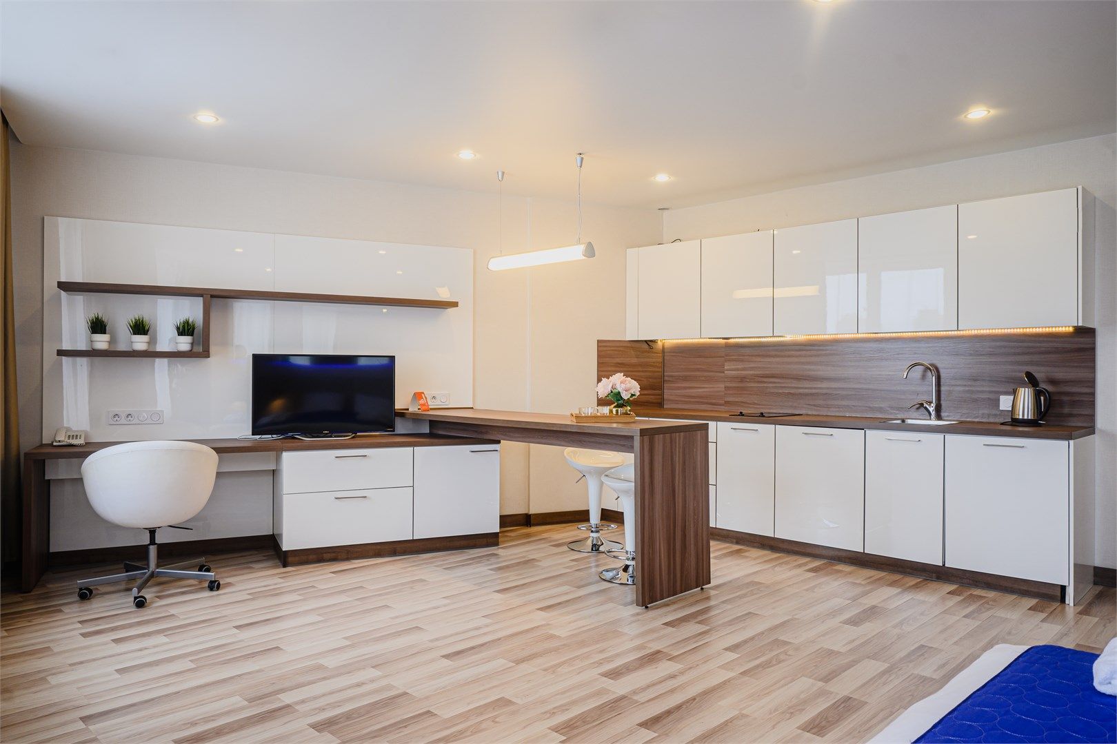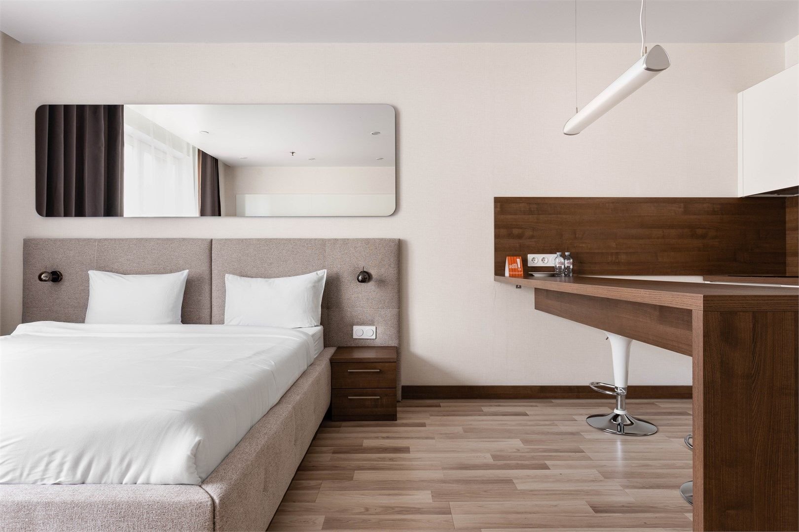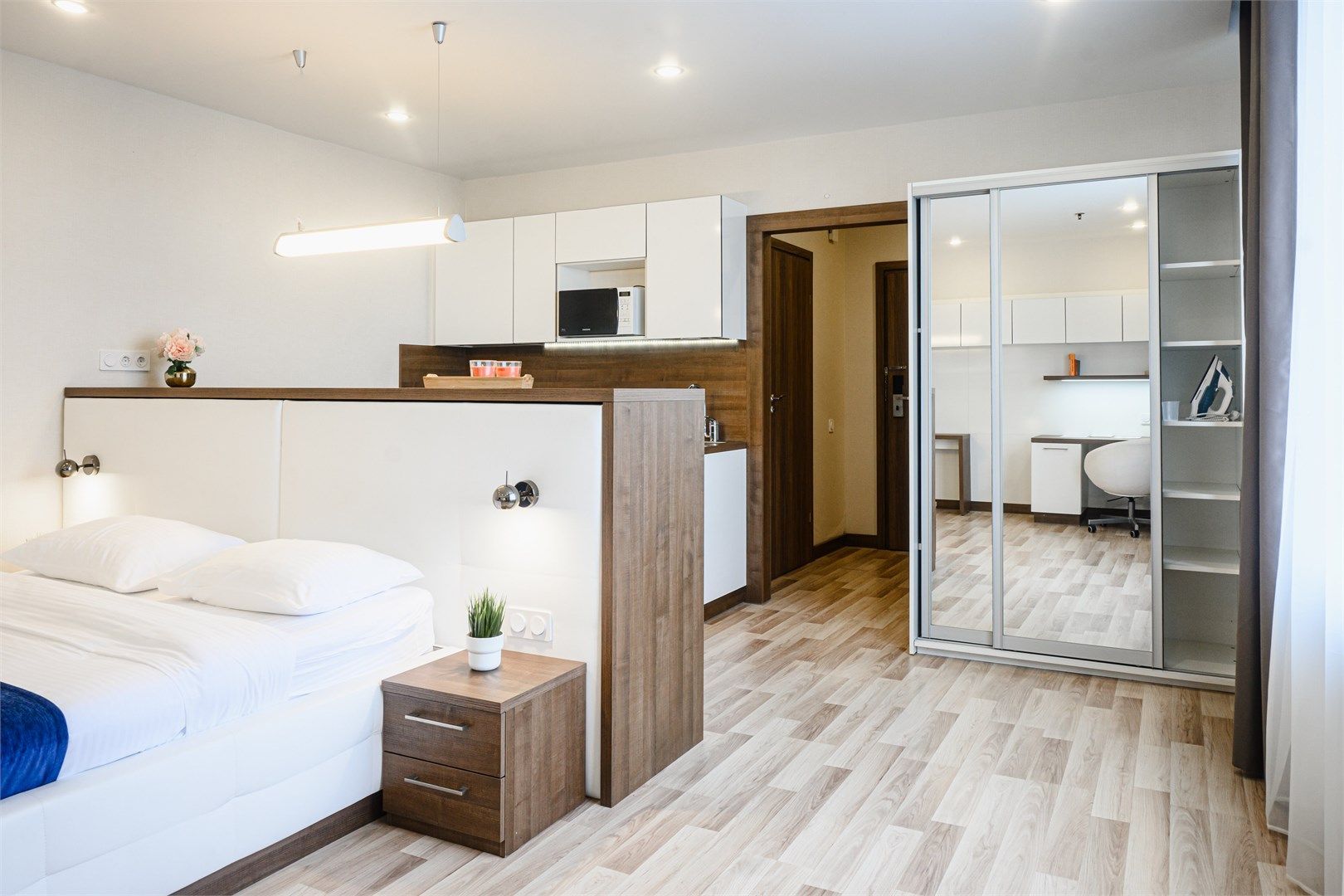 Апартаменты категории Superior - однокомнатные апартаменты с кухней. Пространство номера зонировано и четко разделено на спальную и гостиную зону.