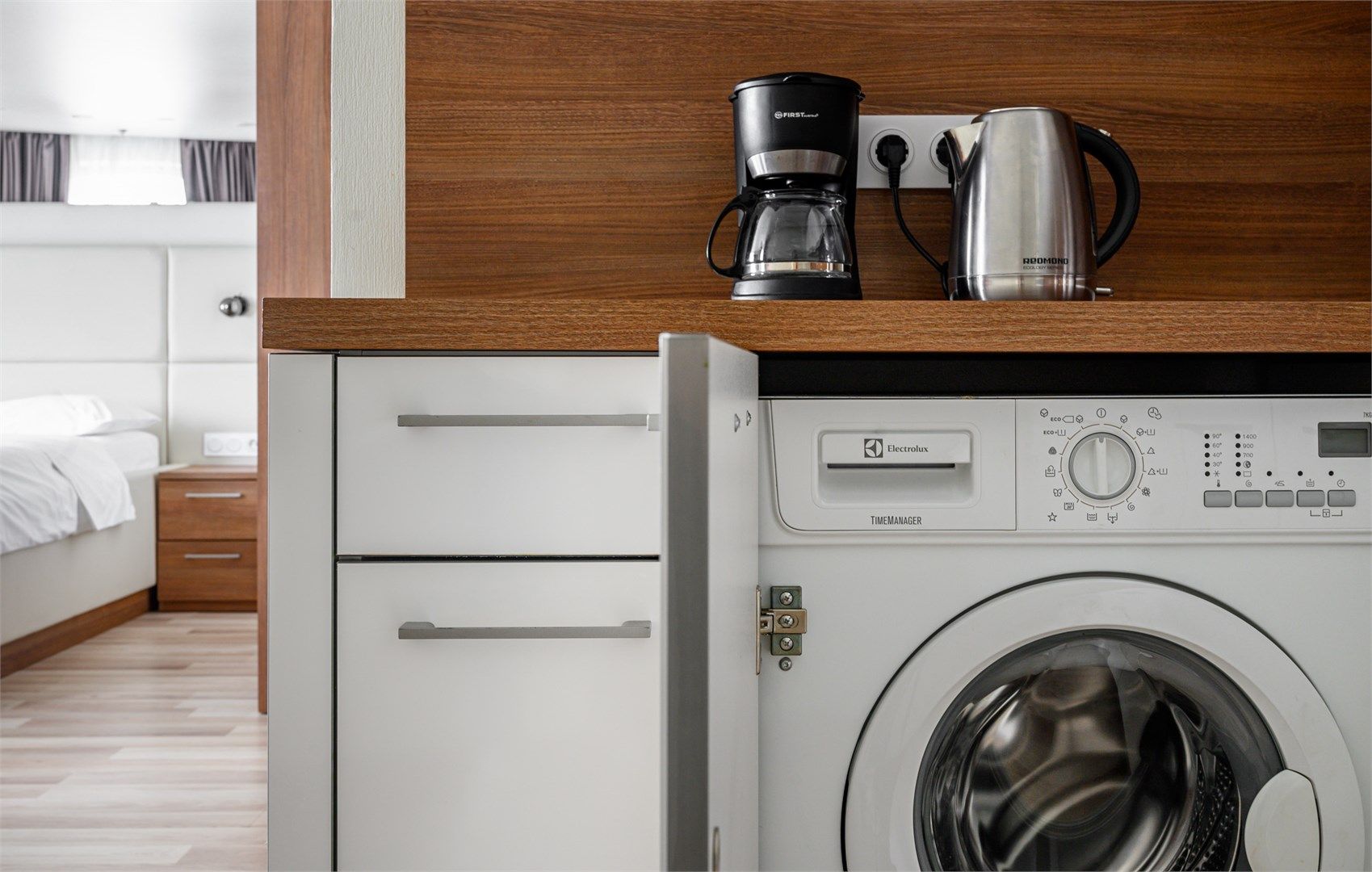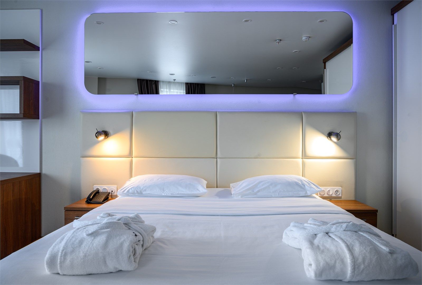 Апартаменты категории Deluxe идеально подойдут для тех, кто любит большие окна. В апартаментах комфортно разместится семья из 3 человек (2 взрослых и ребенок до 7 лет). Интерьеры апартаментов выполнены в спокойных бежево-коричневых тонах. Кухня оснащена встроенной бытовой техникой от ведущих европейских производителей: микроволновая печь, холодильник, керамическая варочная панель, стиральная ма...
