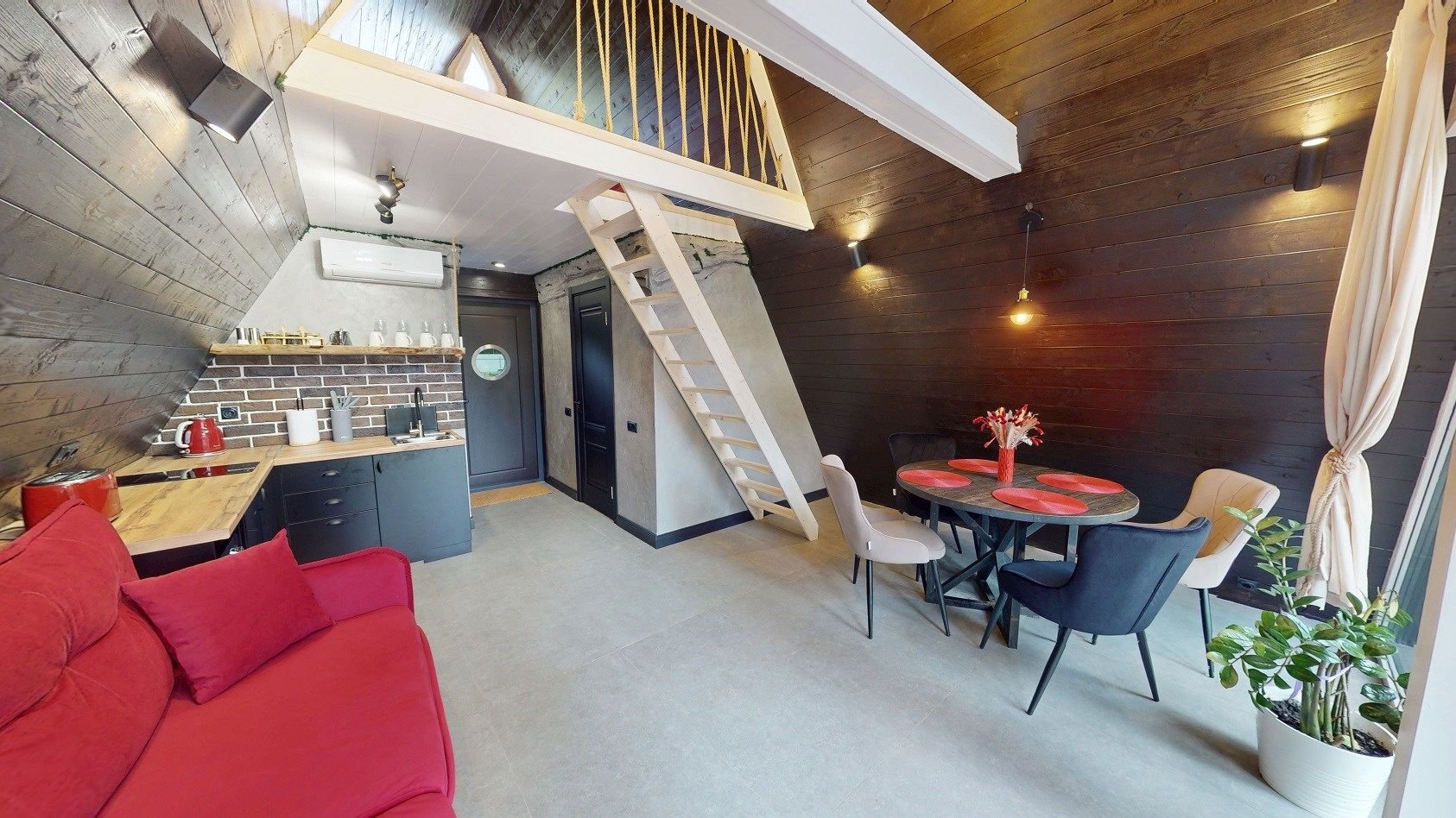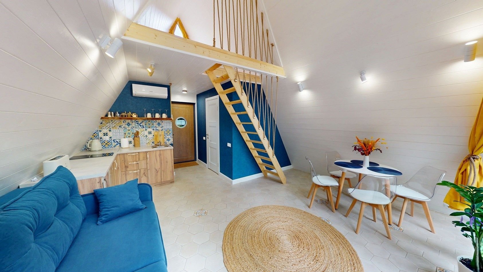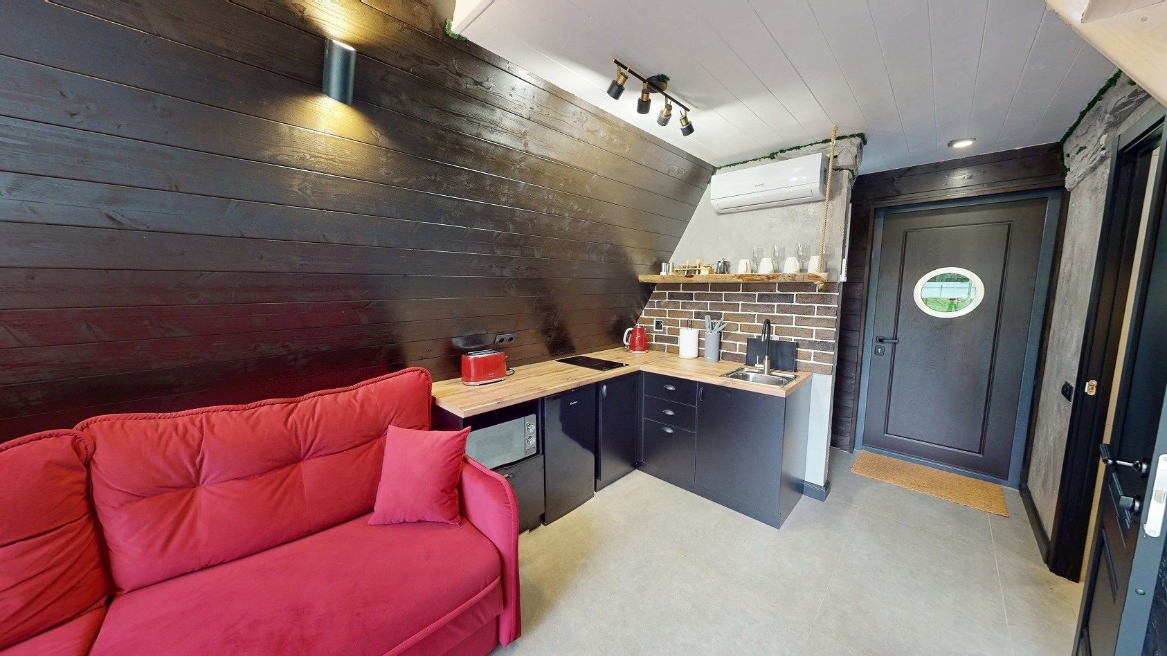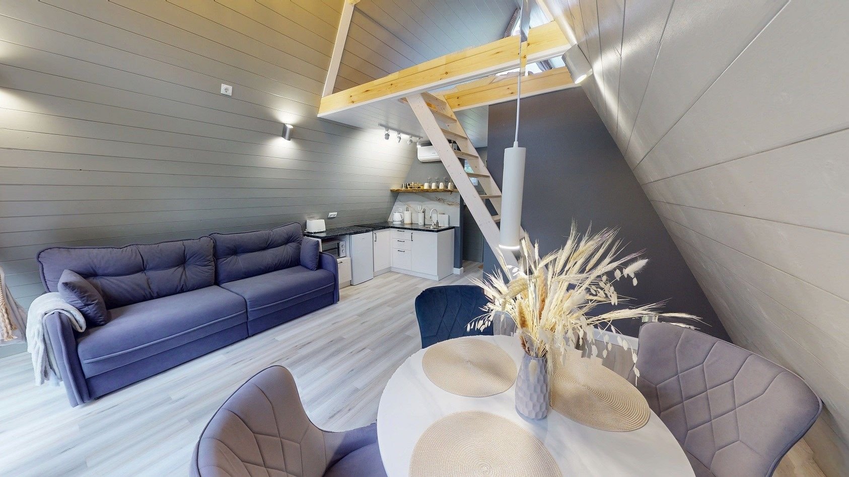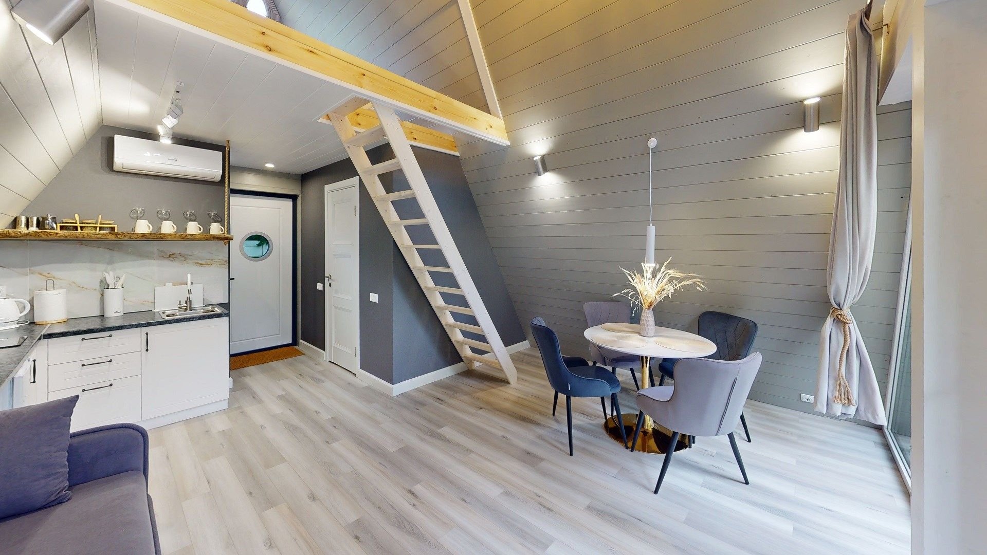 Идеальное пространство для двоих. Погрузитесь в атмосферу уюта и элегантности в нашем двухэтажном коттедже «Люкс», созданном для тех, кто ценит комфорт и красоту. На первом этаже расположена уютная гостиная с мини-кухней, обеденной зоной и раскладным диваном, который может стать дополнительным спальным местом для двух гостей. Кухня оборудована всей необходимой посудой, приборами и современной бы...