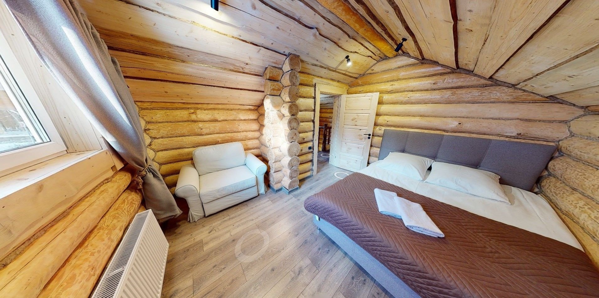 Погрузитесь в атмосферу русского уюта в аутентичном доме из бревна с собственной баней на дровах. Этот дом только для двоих и создан для настоящих любителей бани — парная находится в вашем полном распоряжении и доступна в неограниченном пользовании. Наши сотрудники заранее растопят баню к вашему приезду, чтобы вы могли сразу насладиться теплом и ароматом пара. В доме небольшая, но уютная гостиная...