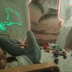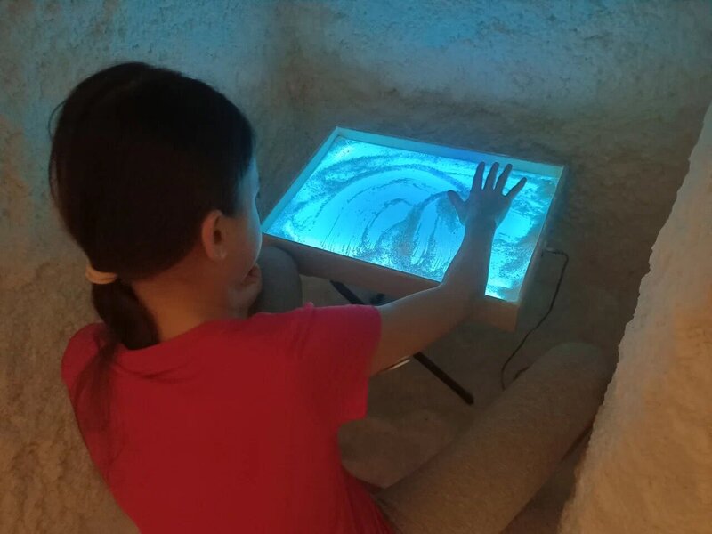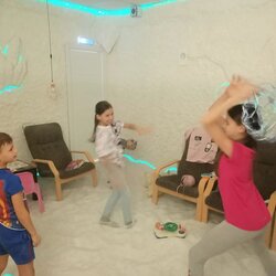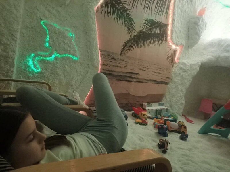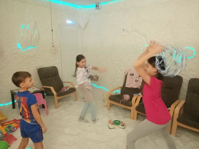 На самом деле как на песчаном (соленном) побережье. Порелаксировать в удобном кресле с пользой для здоровья. Детям спокойно поиграть/или не спокойно. Хорошо помогает выйти из затяжных болезней верхних дых.путей или просто укрепить иммунитет.