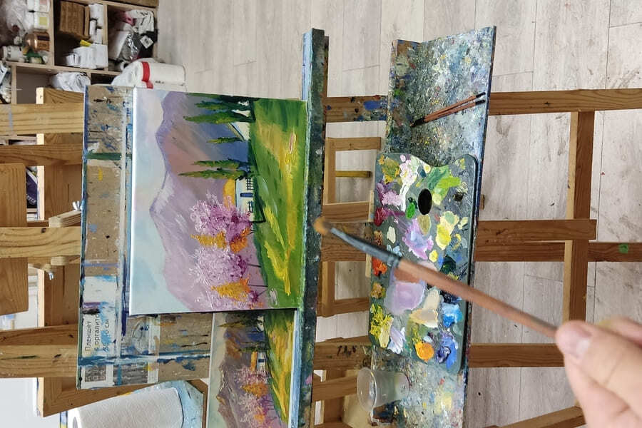 В первый раз в жизни рисовал/писал масляными красками. Очень интересное занятие: позволяет собраться с мыслями, отвлечься от суеты, медитативная такая история, короче. Мне очень понравилось. Рисовать я не умею совсем, но под чутким руководством девушки из арт-студии получилось нарисовать весьма недурной для моего уровня мастерства пейзажик. Однозначно рекомендую, постараюсь еще сходить по возможности порисовать!