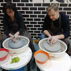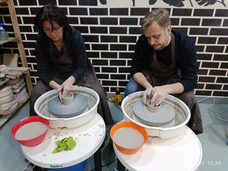 Мой первый опыт работы с глиной и за гончарным кругом. Преподаватель демонстрировал, а мы повторяли. Нам помогали, когда что-то шло не так. Все было очень здорово. Теперь придем покрывать изделия глазурью.