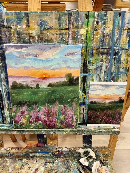 Очень понравился мастер-класс по рисованию на холсте. Сертификат мне подарили на день рождения. Считаю, что я человек-не склонным к рисованию от слова СОВСЕМ. И как-то настороженно отнеслась к этой затее... В итоге сертификат ждал своего часа почти год. И вот наконец в унылый осенний день решила, что пора раскрасить серый в цвета поярче... В студии очень доброжелательная атмосфера. Дают на выбор сюжет для рисования, а далее начинается процесс творчества. Девочки направят, подскажут, исправят ошибку, если вдруг такое случится в очень тактичной форме. Очень хочется поблагодарить девушку Аня за помощь и терпение. В итоге- в дождливый и серый осенний день на холсте родился летний вечер с закатом...