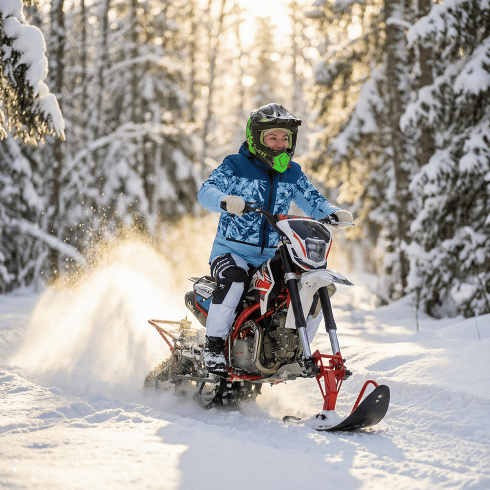Сноубайк - снежный мотоцикл, легко преодолевающий любые сугробы, подъемы и спуски, очень маневренный и проходимый. Мотоцикл, у которого вместо переднего колеса установлена лыжа, а вместо заднего — гусеничный привод. Сноубайк - лучшее средство против зимней спячки!