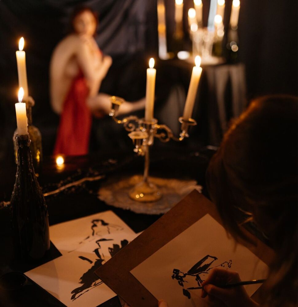 Откройте для себя искусство с новой стороны — в компании обнаженной натуры под мерцание свечей. С бокалом вина и легкими закусками вы сделаете серию чувственных набросков углем, сепией или карандашом. Вас ждут раскрепощенная атмосфера, работа с профессиональной моделью и яркие воспоминания, которые точно не сотрутся.