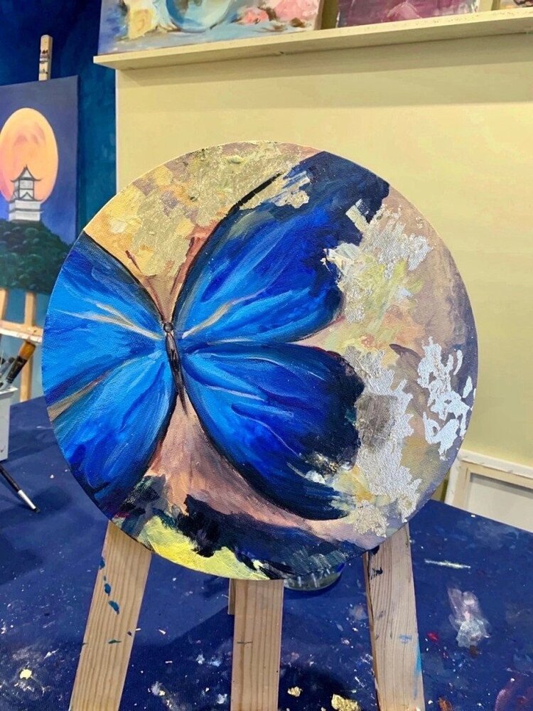 - Все материалы и реквизиты: акриловые краски, кисти, холсты, поталь, текстурная паста, фартуки и т.д.