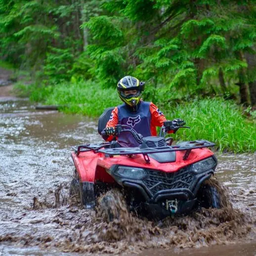 Наш тур совмещает обычную и грязевую трассы, добавляя остроты вашему путешествию. Лесная часть маршрута предлагает разнообразные участки, где требуется хорошая маневренность и уверенное управление техникой. После лесных троп маршрут выходит на более сложный участок с разбитой дорогой. Здесь вам предстоит преодолевать глубокие колеи, выбоины и неровности, которые требуют внимательности и уверенного управления квадроциклом. Дорога становится более экстремальной: грязевые участки с мягкой, скользкой почвой добавляют ещё больше адреналина в поездку.