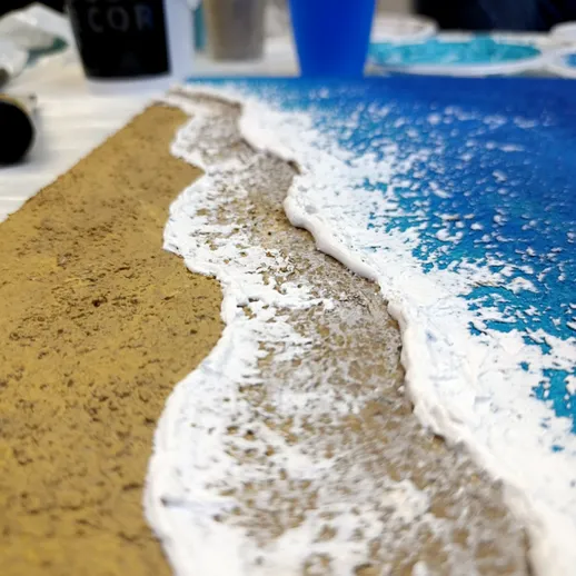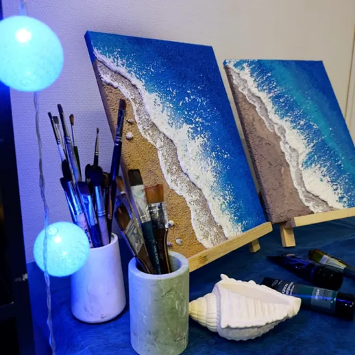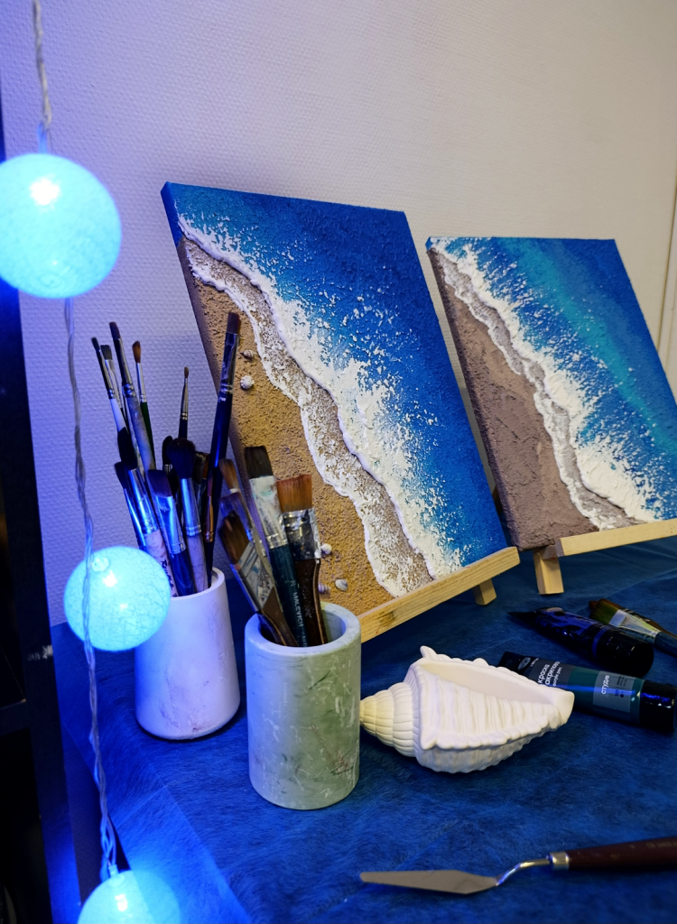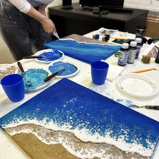 Это творчество под чутким руководством художника, где вы -даже если никогда не держали кисть - создадите уникальную объёмную композицию, передающую дыхание океана, брызги прибоя и мерцание заката на воде.