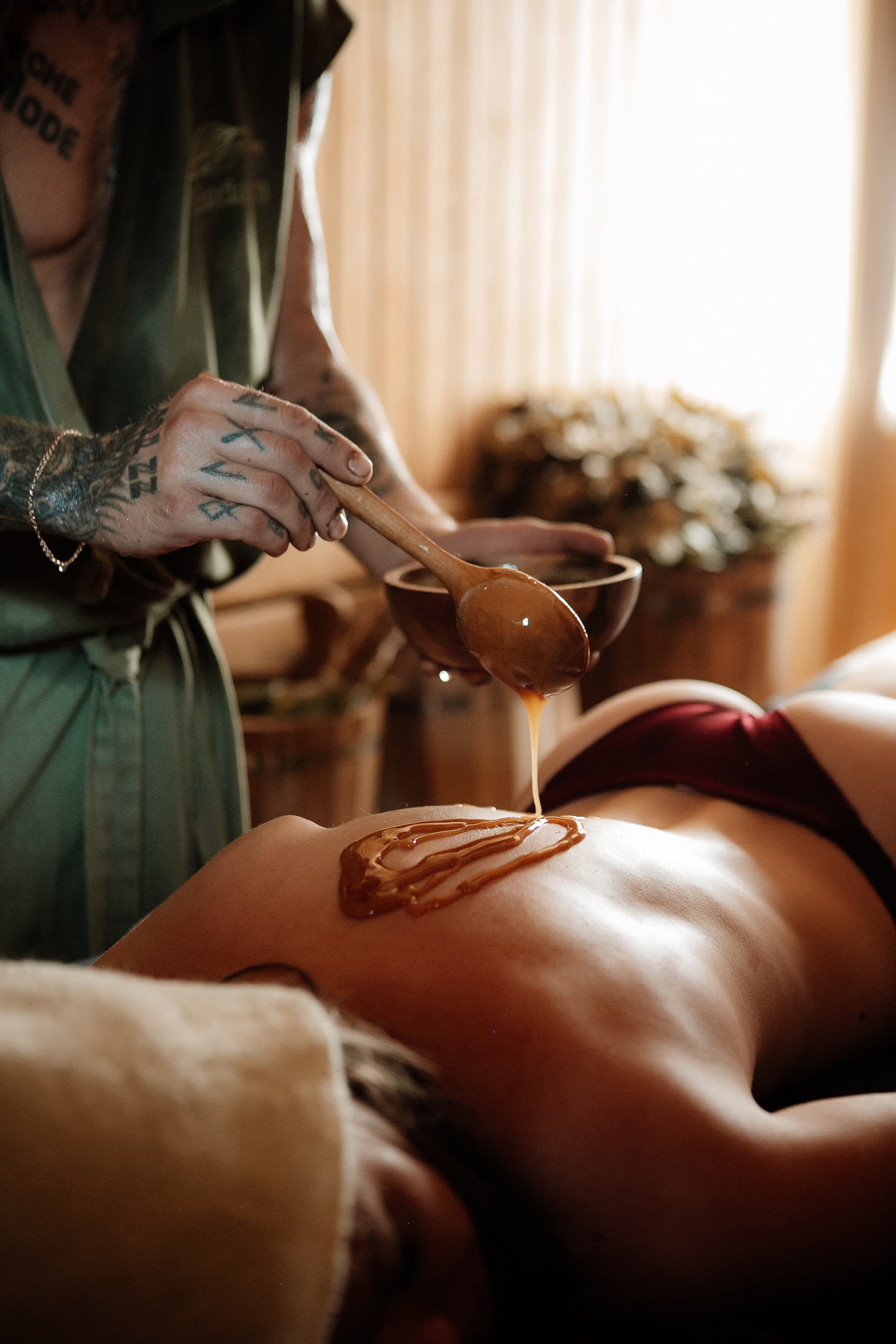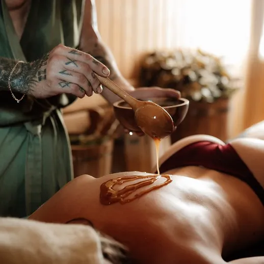 Очищающий медово-солевой скраб, приготовленный вручную, бережно очистит кожу, улучшит приток крови и снимет напряжение.