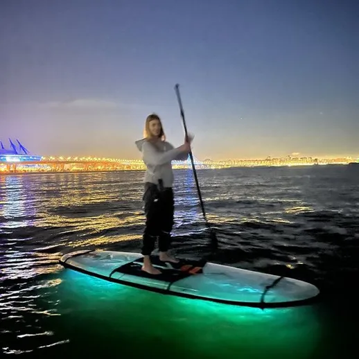Ночная прогулка на сапборде с подсветкой - это волшебное погружение в мир тишины и мерцающего света, скольжение по глади воды под покровом звездного неба. Представьте себя на светящейся платформе, парящей над водной гладью, где каждый взмах весла - это шаг в неизведанное, а отражение городских огней создает завораживающую картину. Это не просто прогулка, это приключение, которое пробуждает чувства и наполняет душу незабываемыми впечатлениями.
