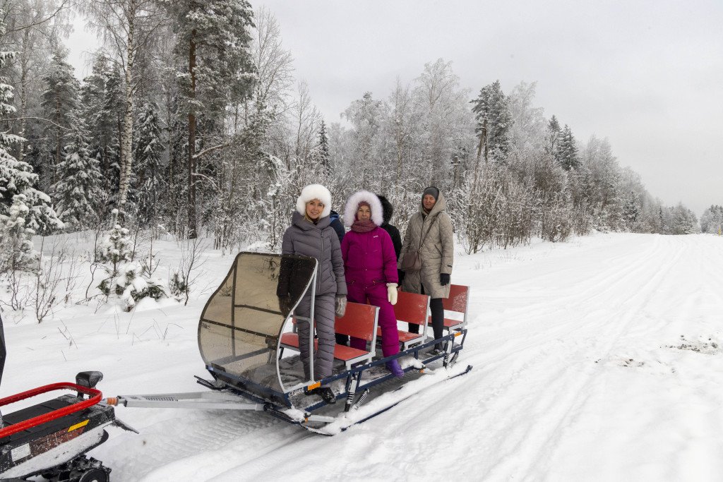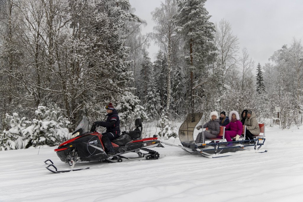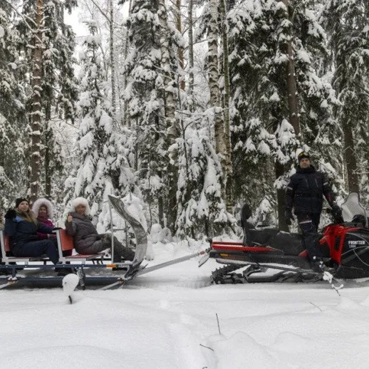 Если вы оказались в Карелии, то у вас есть возможность прогуляться по Карельскому лесу, да не пешком, а на комфортабельных современных санях, движимых снегоходом. Вы будете отдыхать и наслаждаться белоснежными видами, дышать свежим-пресвежим морозным воздухом и вам не нужно напрягаться, вы просто держитесь за ручки, которые есть в каждом ряду пассажиров. Стекло защитит от встречного ветра, а профессиональный инструктор бережно прокатит вас по белым пушистым карельским снегам.