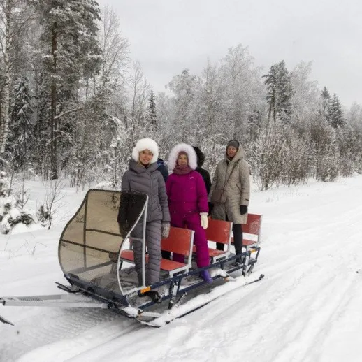 Путешествие по зимней Карелии на современных санях, запряжённых за мощным снегоходом, - это настоящее погружение в атмосферу северной сказки. Ветер в волосах, свежий морозный воздух и шум мотора создают ощущение свободы и приключения. Величественные леса, покрытые снегом, и замёрзшие озёра мелькают мимо, наполняя сердце трепетом и восторгом. Каждое мгновение этого катания дарит незабываемые эмоции - ощущение силы, гармонии с природой и непередаваемую красоту зимней Карелии.