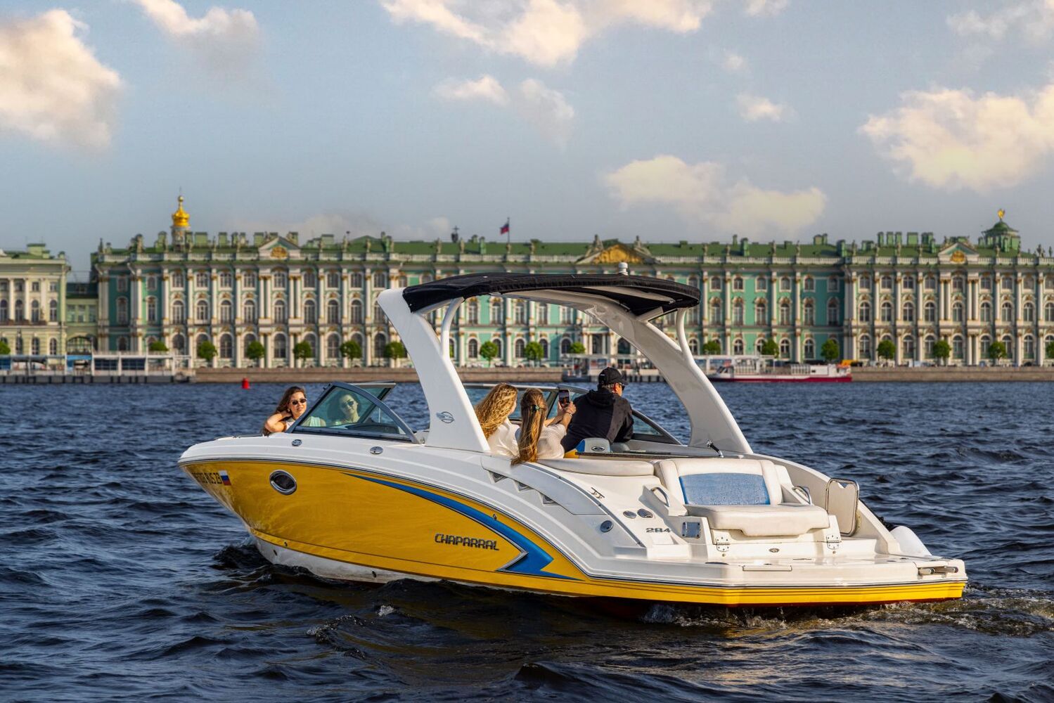 Прогулка начинается с выбора маршрута. Вы заранее обсуждаете с капитаном, куда хотите отправиться: увидеть ли знаменитые достопримечательности исторического центра с воды, выйти в открытую воду к современным объектам или совместить и то, и другое. Важно учесть, что «Мажор» не ходит по узким каналам из-за высоты, зато он идеально подходит для путешествий по открытой воде и Финскому заливу благодаря морскому классу. В назначенное время вы встречаетесь на берегу, капитан приветствует вас и помогает разместиться на борту. Компания может расположиться с комфортом: просторные мягкие диваны в закрытой части катера и открытая носовая зона с диванами — выбирайте, где вам удобнее. На борту есть стол и подстаканники для напитков, так что можно взять с собой угощения. Капитан рассказывает простые правила безопасности, после чего вы отправляетесь в путь. Вас ждут любимая музыка через мощную аудиосистему, яркая подсветка салона и тёплые пледы, если станет свежо. По желанию вы включаете аудиогид, который расскажет о главных достопримечательностях. Если погода испортится, вас защитит тент. А если захочется искупаться, капитан найдёт подходящее место, и вы сможете использовать платформу для купания. Наличие туалета на борту делает прогулку комфортной. Благодаря морскому классу катера ход остаётся плавным и ровным даже при волнении, поэтому никто не почувствует дискомфорта. Завершается всё возвращением на берег — с улыбкой, яркими фотографиями и желанием повторить.